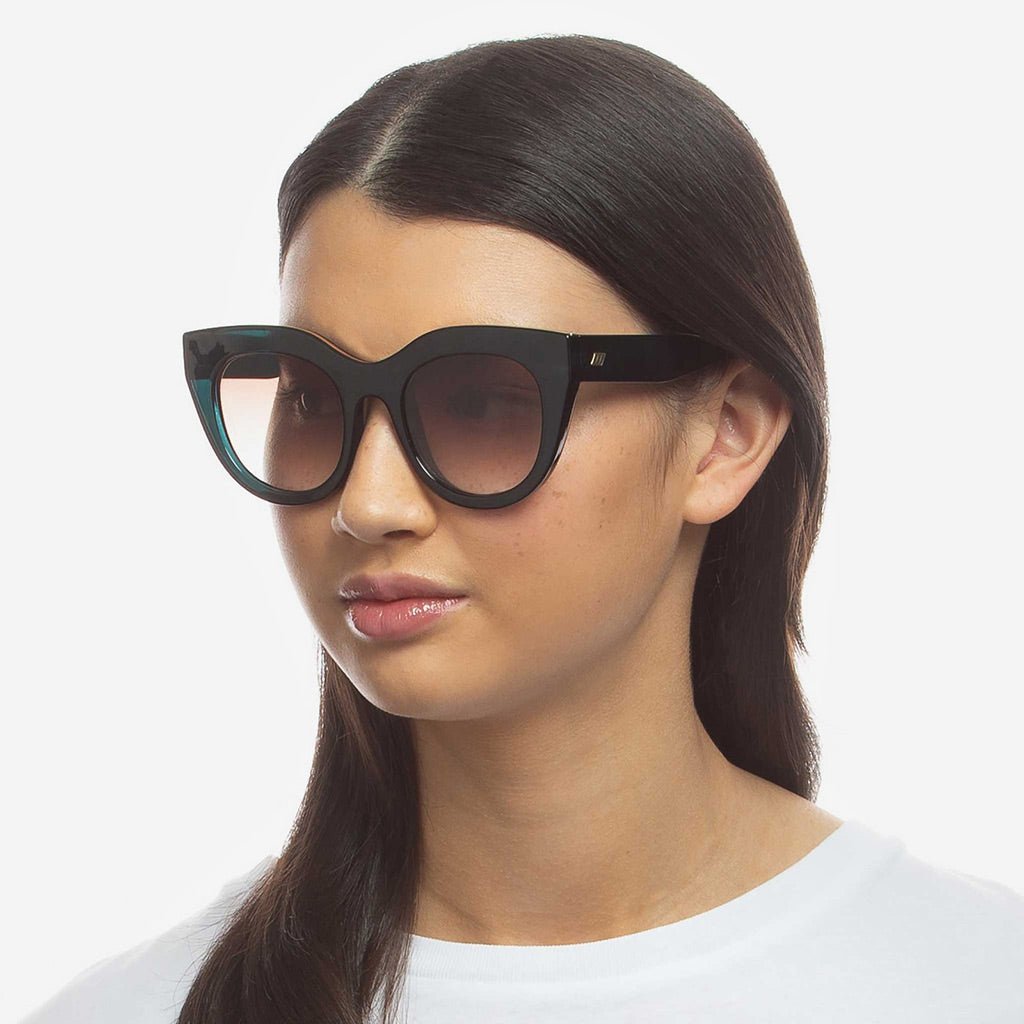 A favourite style of Meghan Markle and Olivia Palermo, the Le Specs Air Heart Emerald Sunglasses is an iconic sunglass style. With oversized and dramatic proportions reminiscent of a cat eye, the style is designed with a thick frame and luxurious metal top bar inlay, then fitted with premium zero base smoke flat lenses. The perfect statement sunglass to suit all face shapes.