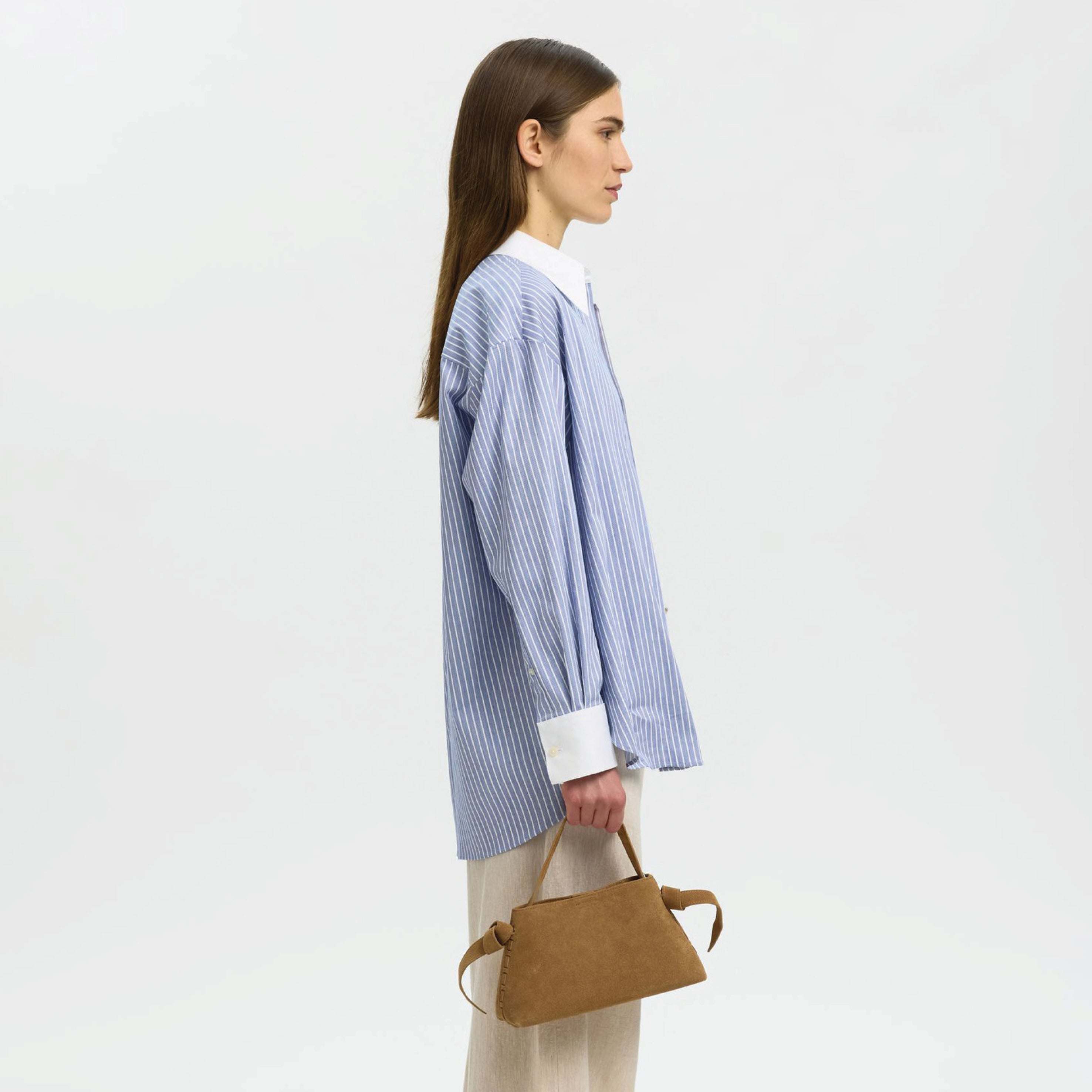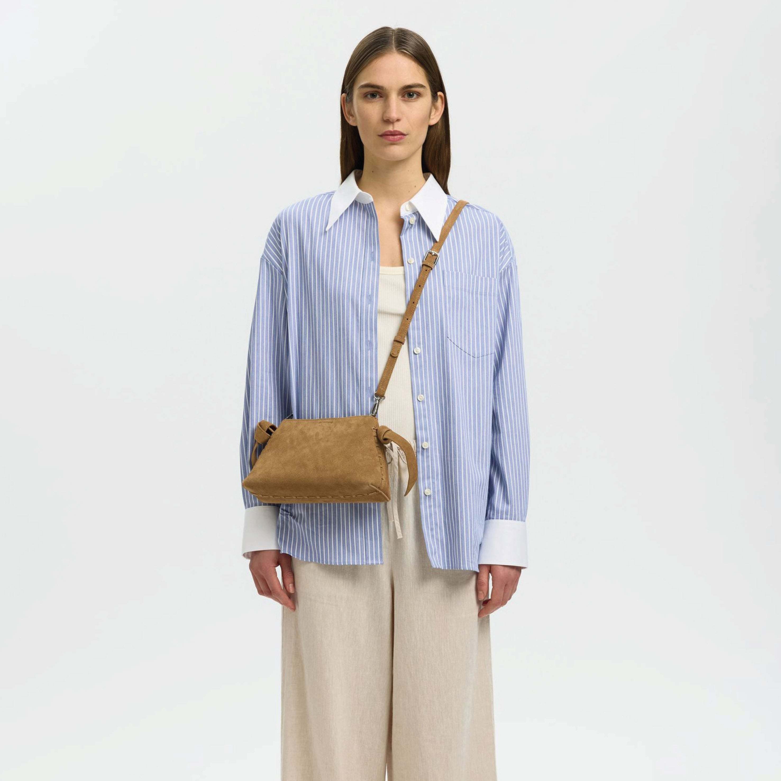 The Selected Femme Stella Mini Tan Suede Bag combines functionality and a timeless appeal. This small suede bag is the perfect go-to choice for everyday wear, after-hours outings, or busy workdays.