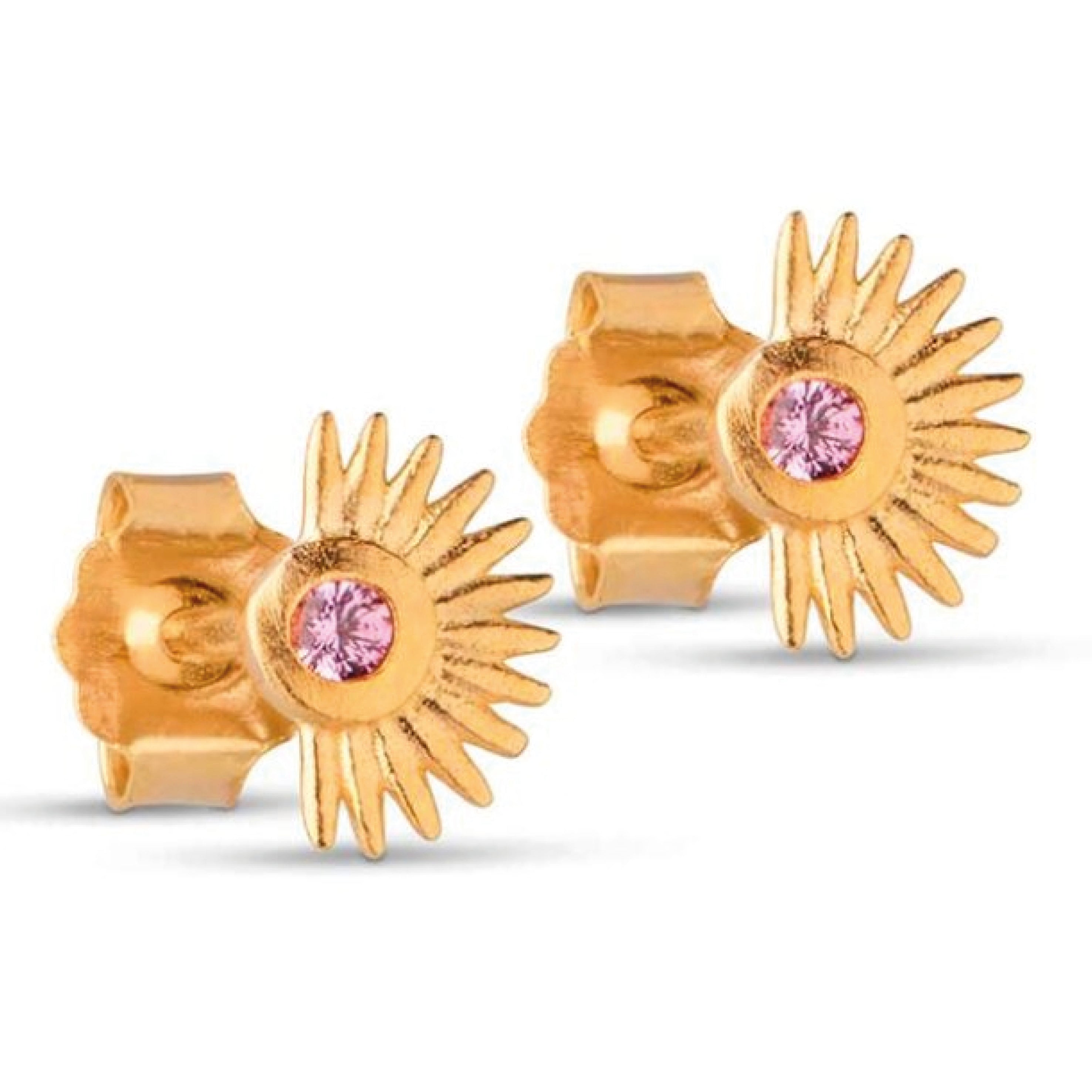 Look and feel luxurious with these chic Enamel Copenhagen Light Pink Petite Soleil Gold Stud Earrings. Crafted with a beautiful light pink cubic zirconia gemstone and 18k gold plating, they are a stylish and timeless statement piece. Add a touch of elegance to any look.