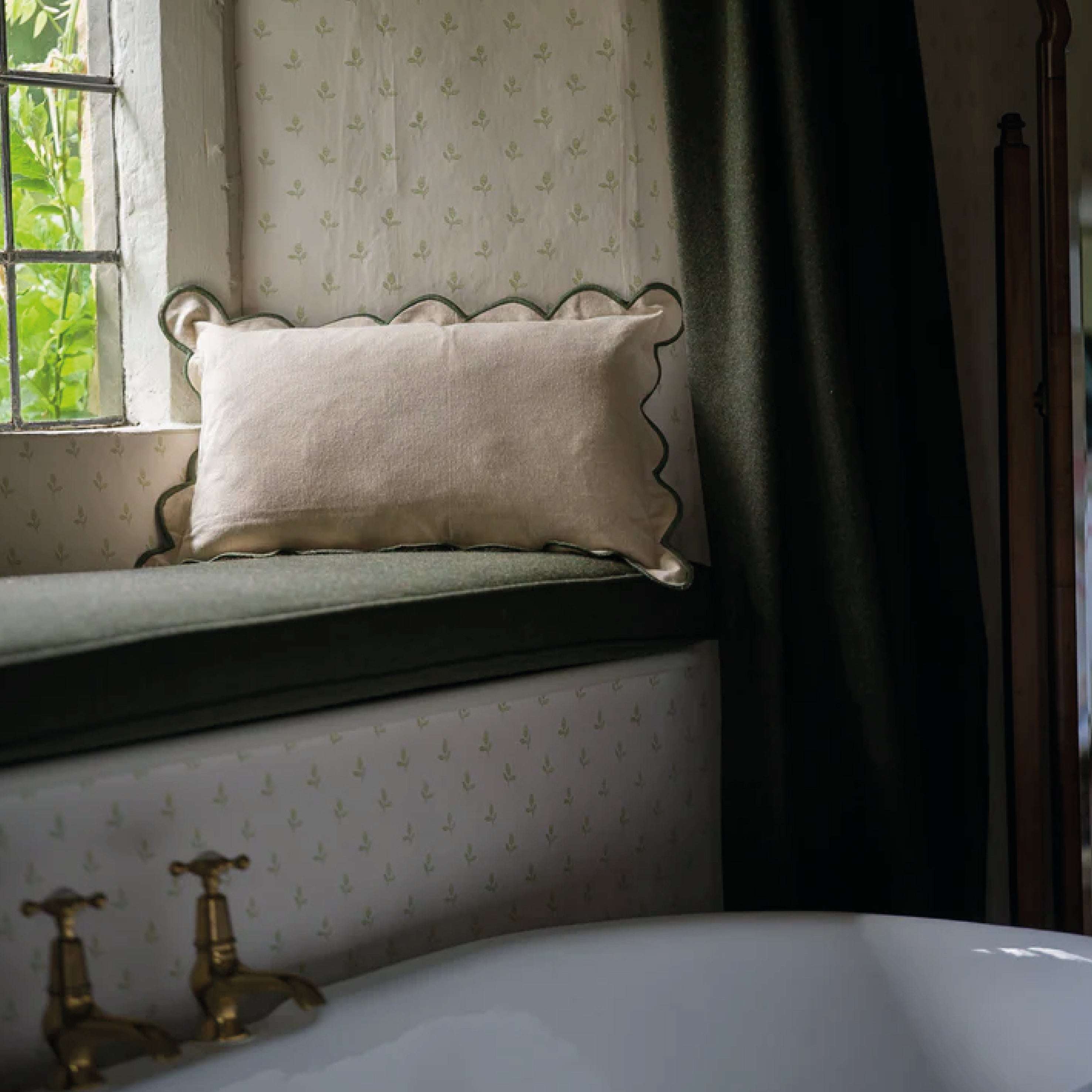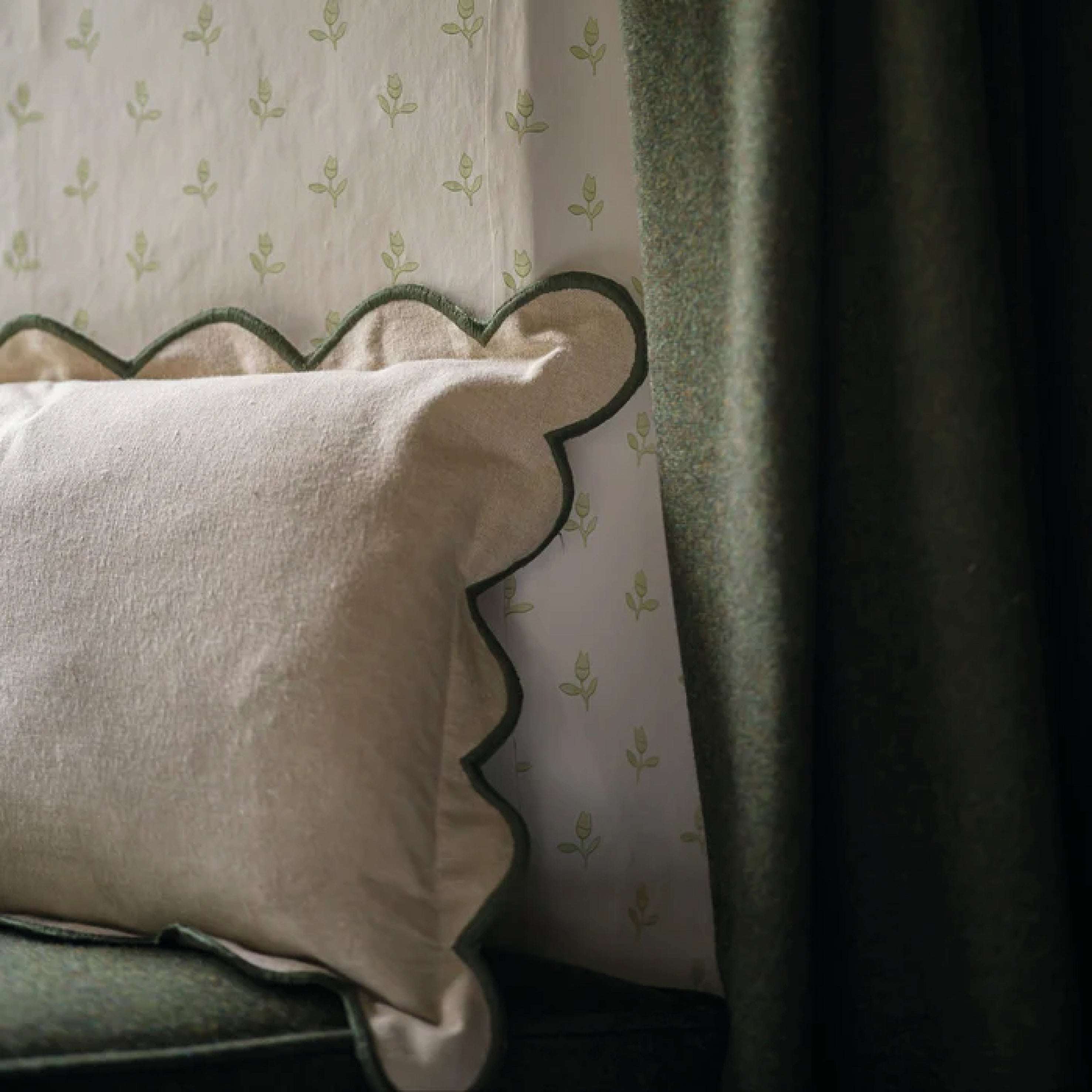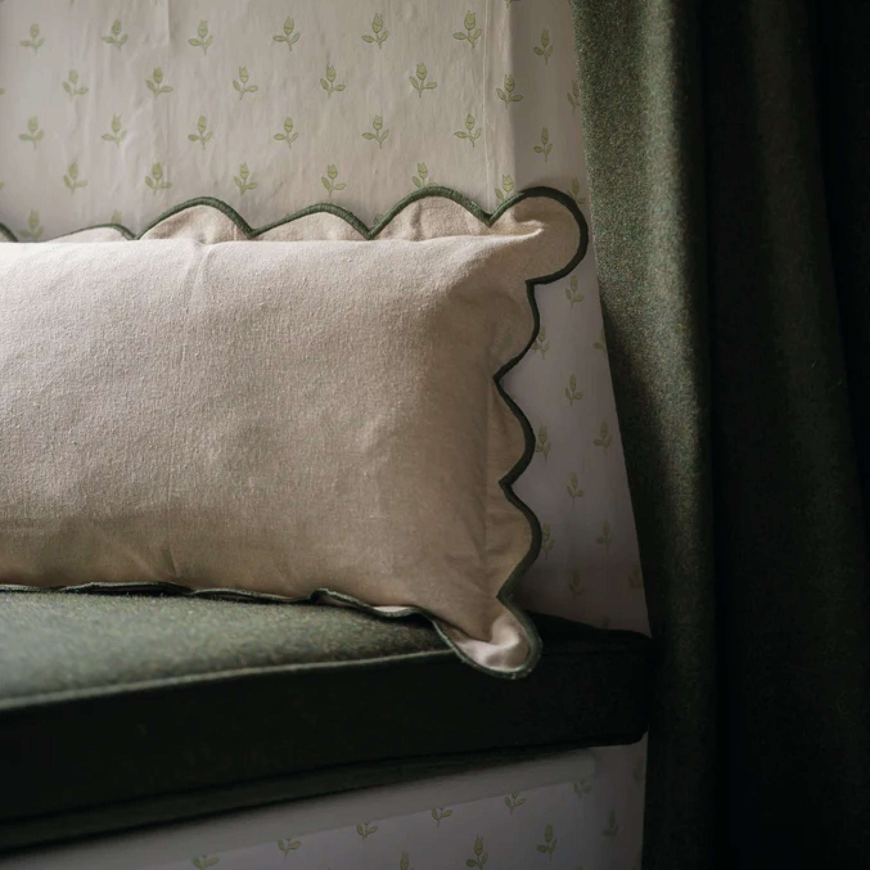 The elegant Moss Scallop Cushion layers so beautifully with other velvet cushions on a sofa, bed or occasional chair. It adds beautiful texture, a hint of colour and pairs beautifully with print.