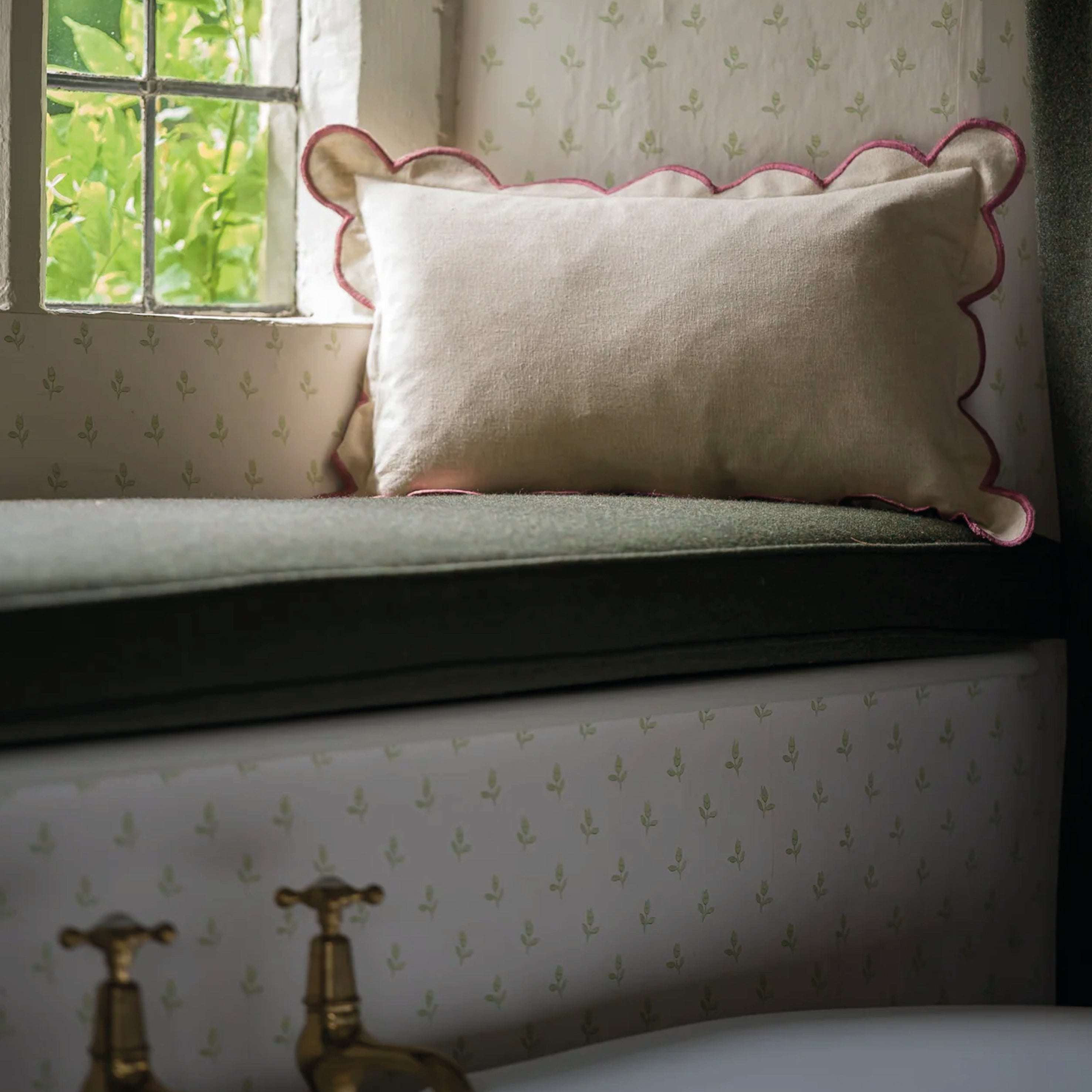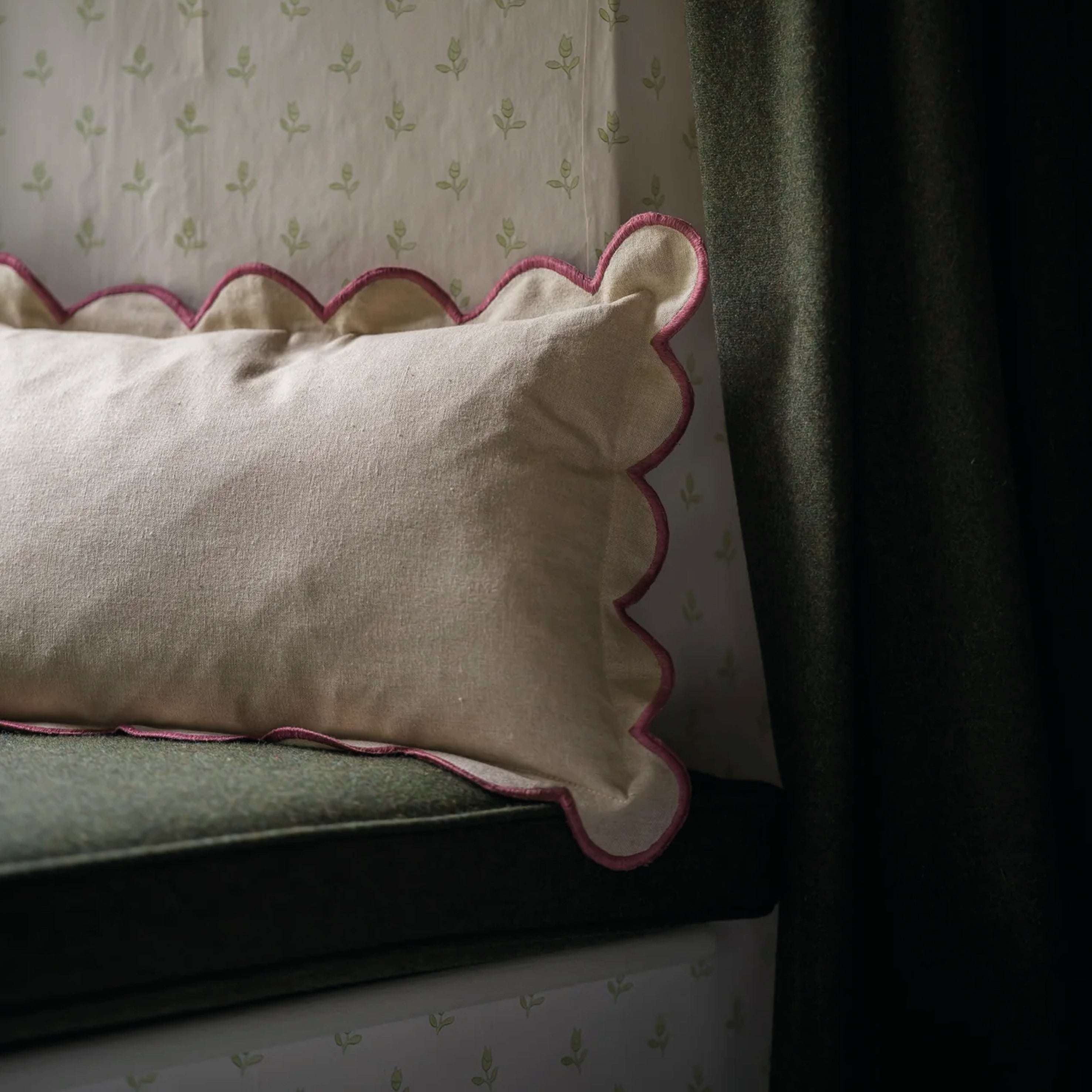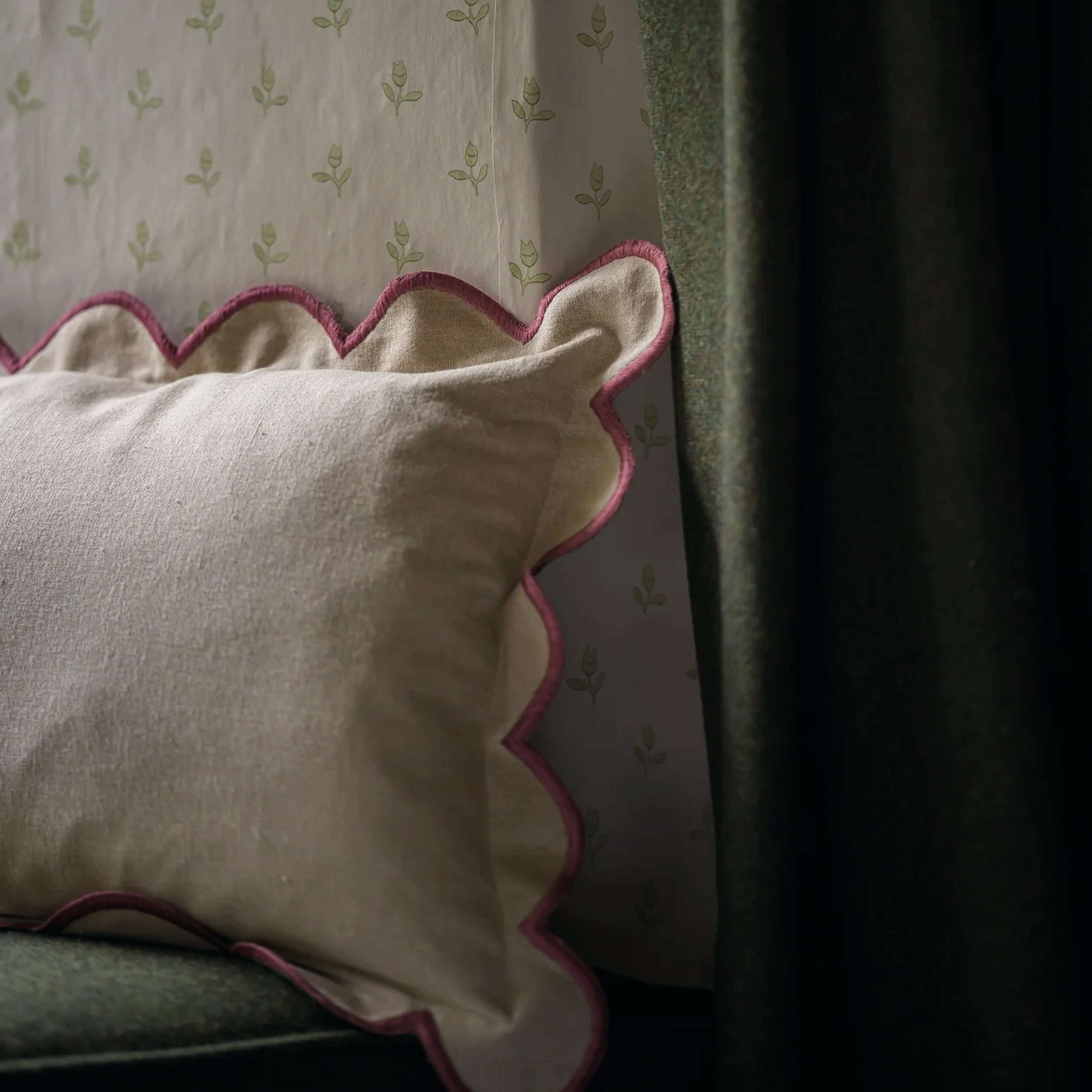 The elegant Pomegranate Scallop Cushion layers so beautifully with other velvet cushions on a sofa, bed or occasional chair. It adds beautiful texture, a hint of colour and pairs beautifully with print.