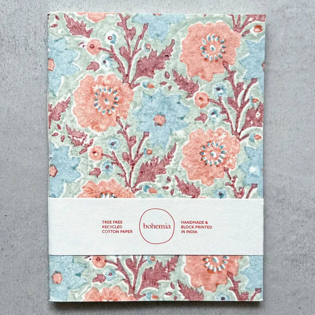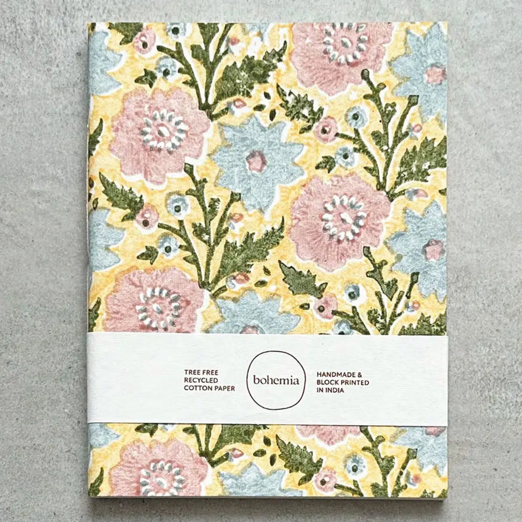 Ethically handmade baskets and crossbody bags, block print quilted floral washbags handcrafted in India, and zero waste floral notebooks from Bohemia Design.