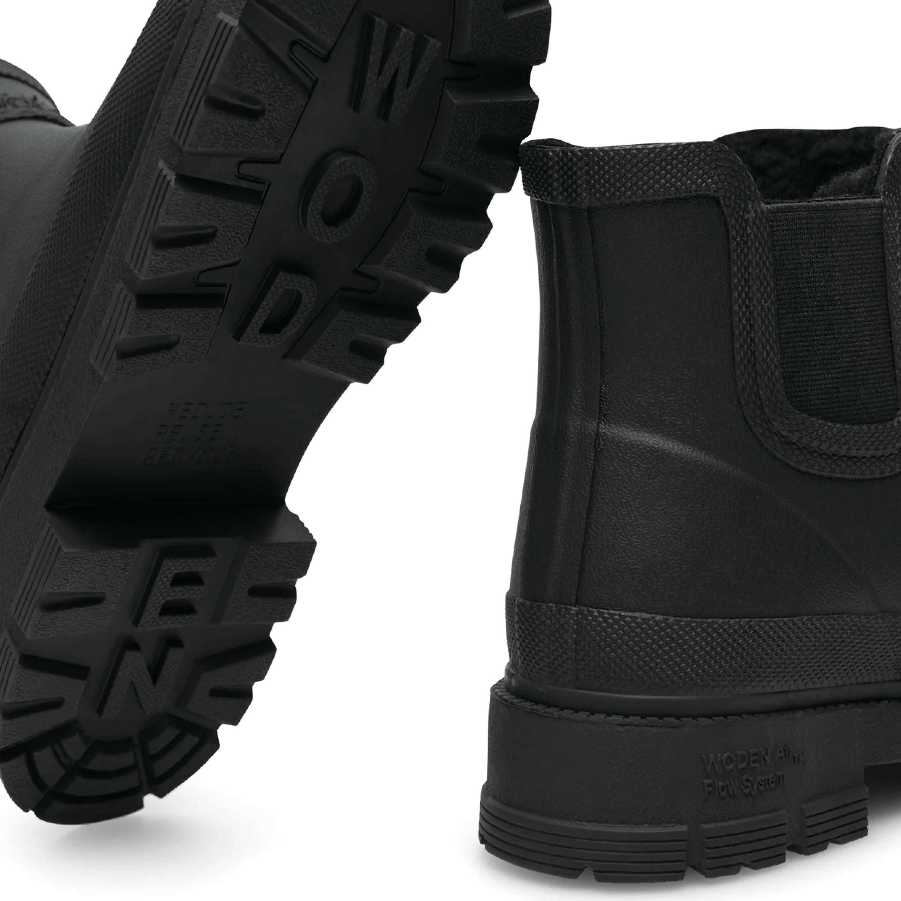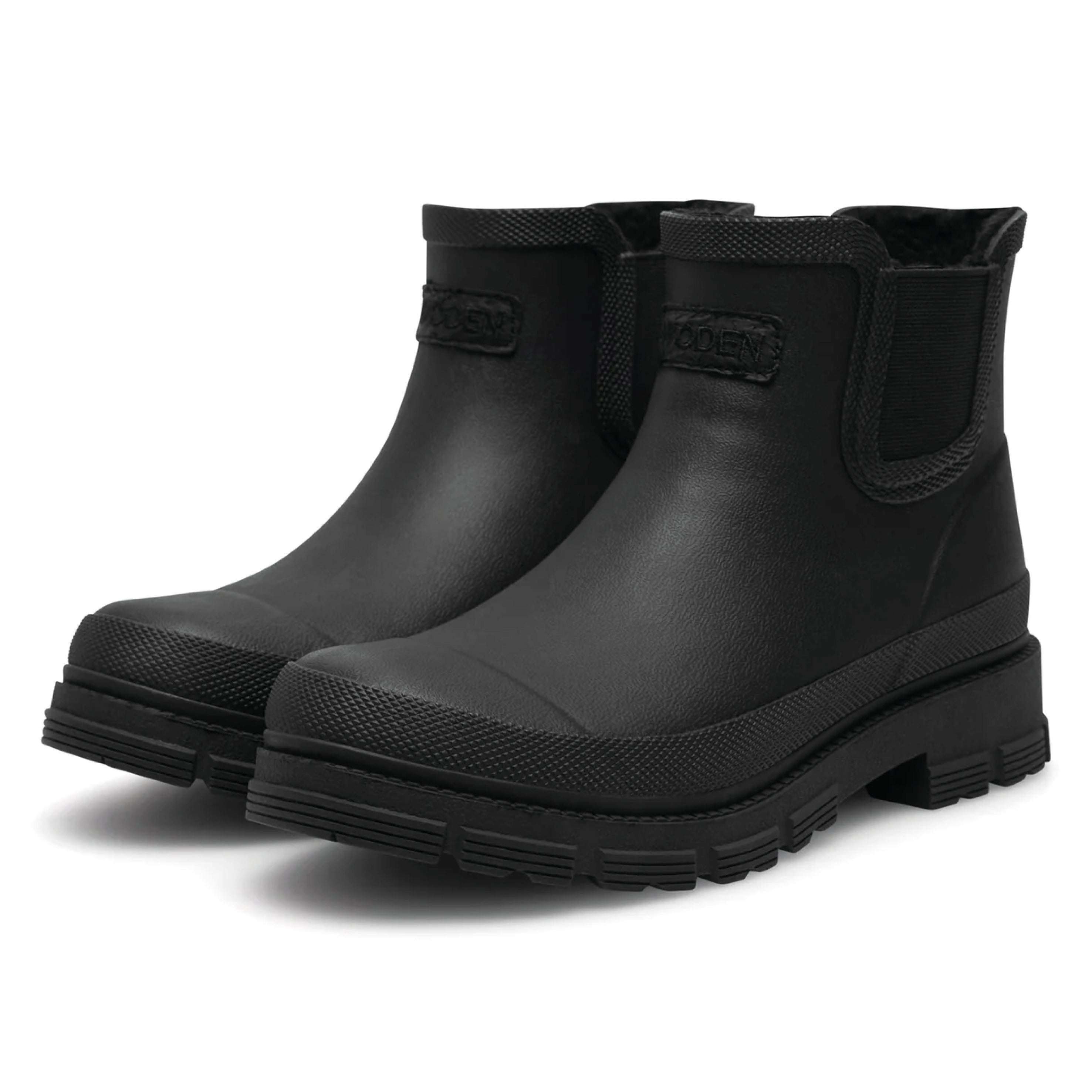 The Woden Black Liv Warm Waterproof Rubber Boots are a chic rubber boot with a warm lining, that effortlessly blends elegance with runway sophistication. Fashioned with FSC-certified rubber, Liv seamlessly merges style, warmth, and functionality. Upgrade your wardrobe with a versatile and cosy choice for any weather.
