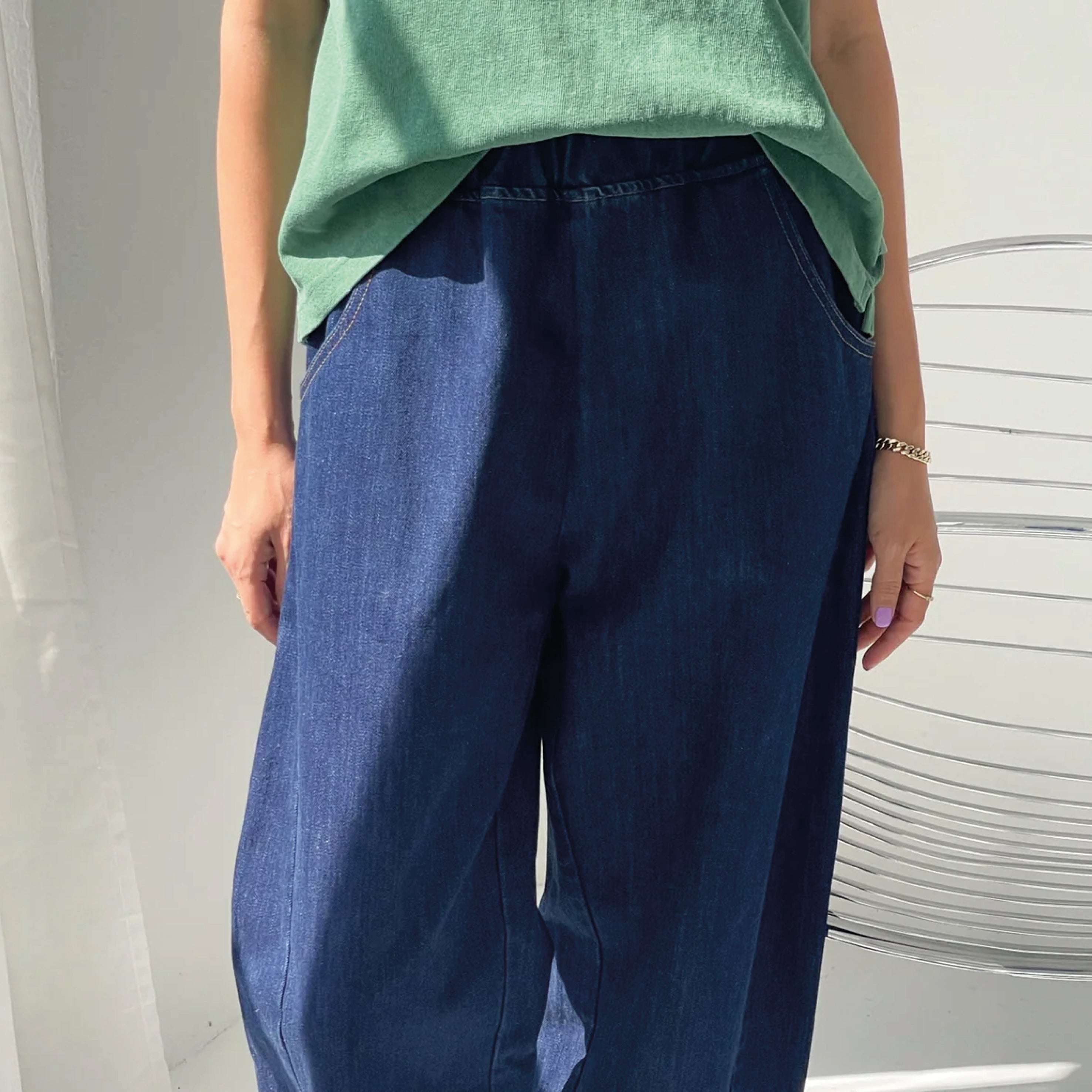The Le Bon Shoppe Raw Denim Arc Pants transcend seasons. No matter the occasion, the Arc Pants have easily become a daily staple. Thoughtfully designed with details like a slightly curved and cropped leg, unique side panels, and deep pockets. An elasticated, high waist that allows for effortless movement and accessibility.The heavy-weight denim material adds durability and gives a structured look. They're the perfect everyday pants, made easy to style.