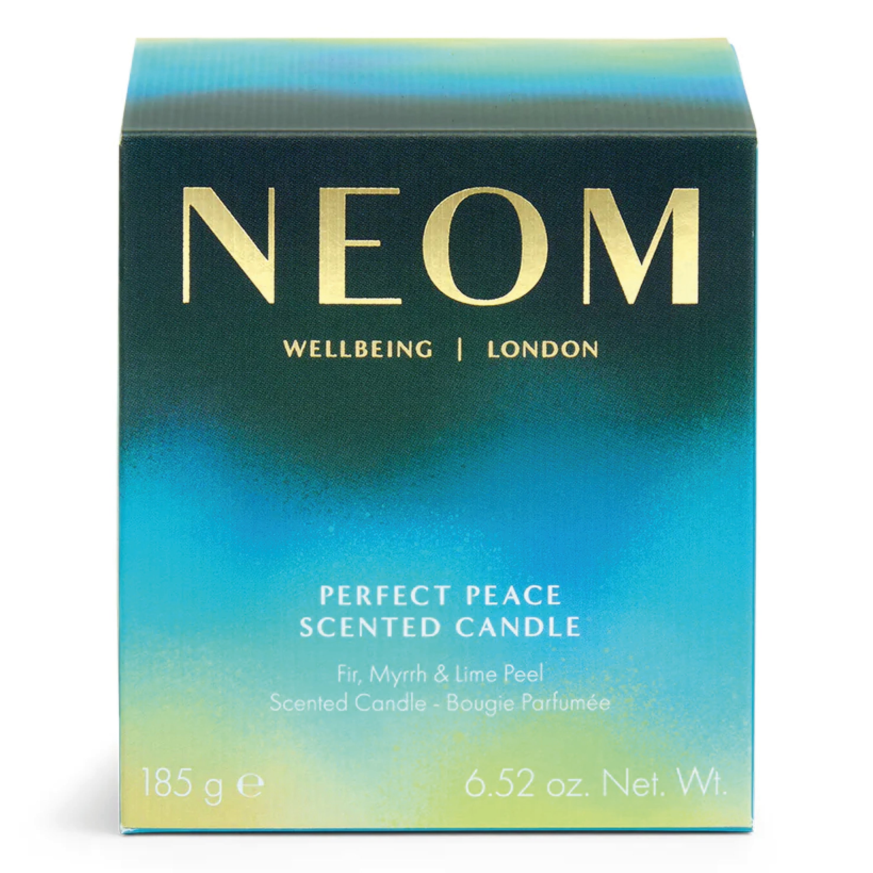 The limited-edition hand finished NEOM Perfect Peace Scented One Wick Candle, made with 100% naturally derived wax and infuses your space with 100% natural fragrances. Expertly blended with pure essential oils including fir, myrrh and lime, designed to help tension lift away.