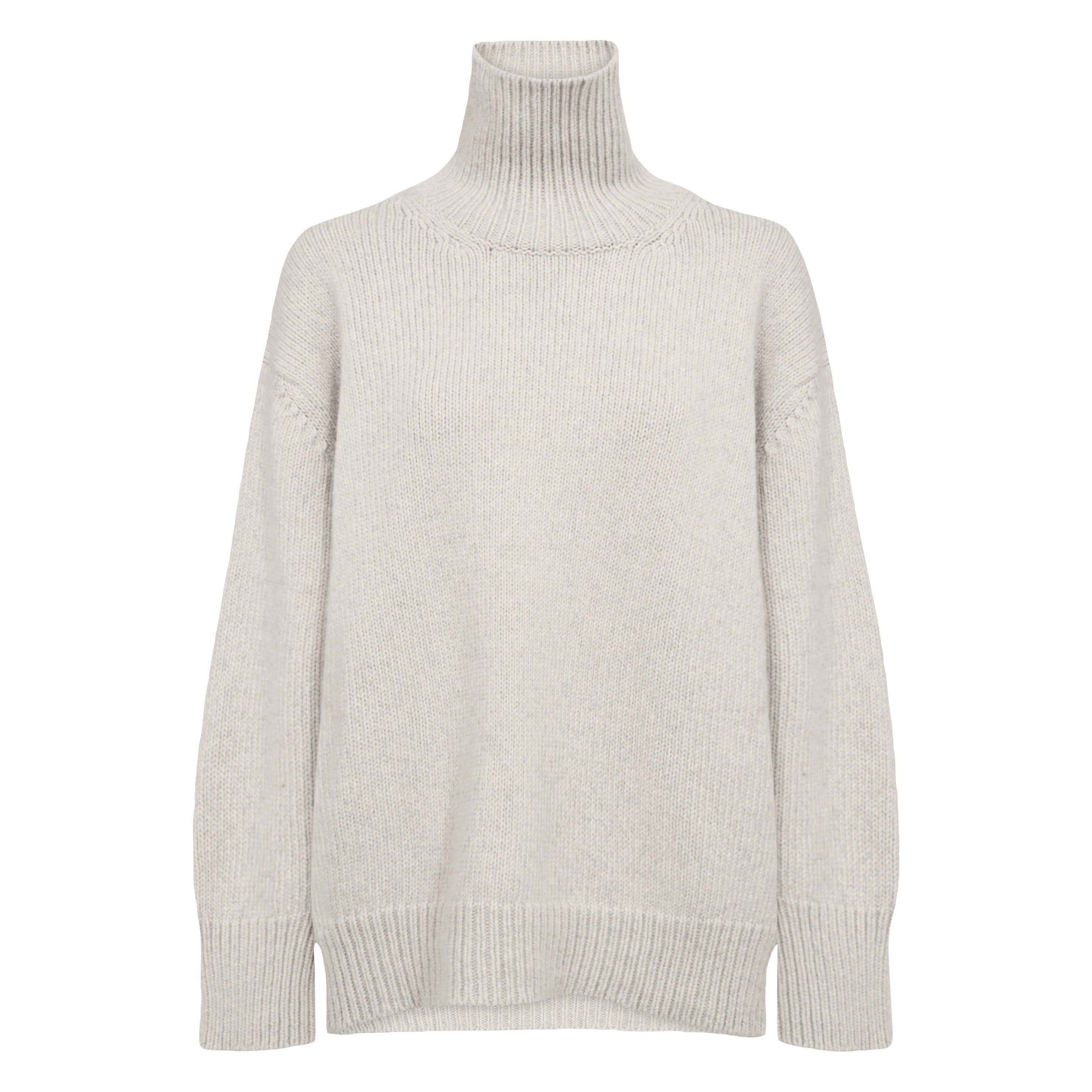 The Leveté Room Rock Grey Turtleneck Perle Knit is a classic pullover crafted from 90% Merino Wool and 10% Cashmere. This pullover features a ribbed turtleneck and long sleeves with a relaxed fit, adding subtle texture to your outfit. It pairs well with jeans or tailored trousers for a refined look.