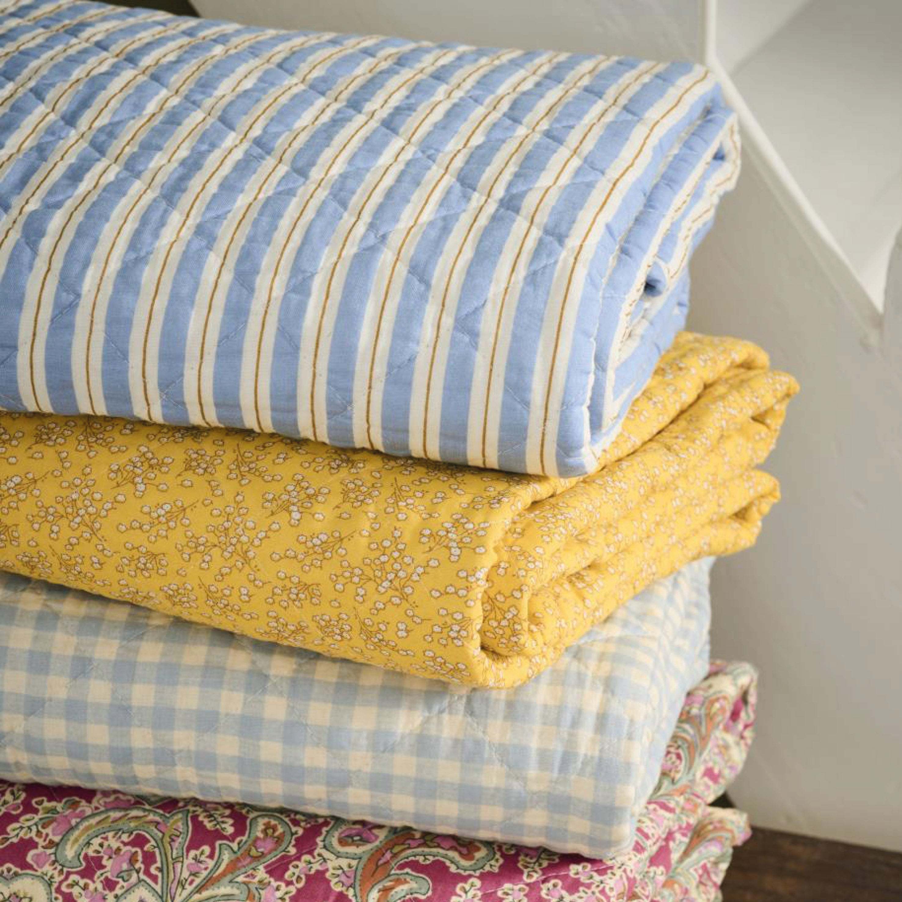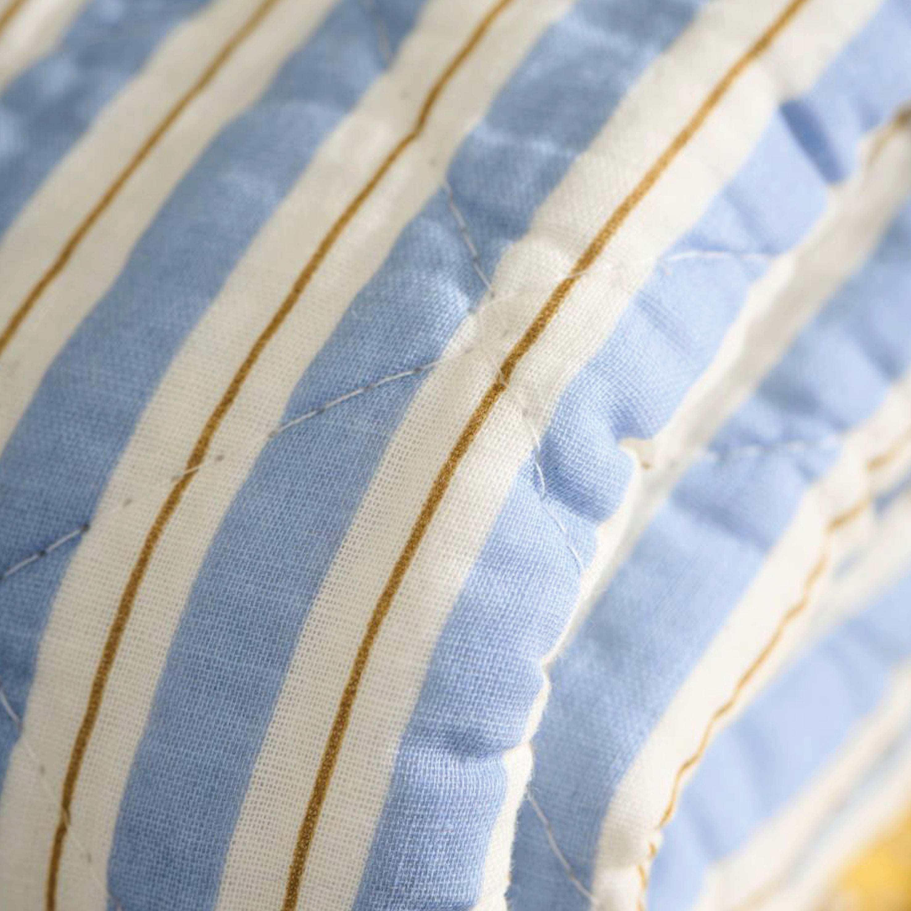 The Ib Laursen Blue with White & Brown Stripes Quilt is a gorgeous, quilted cotton blanket in beautiful blue shade with a decorative white and brown striped pattern.