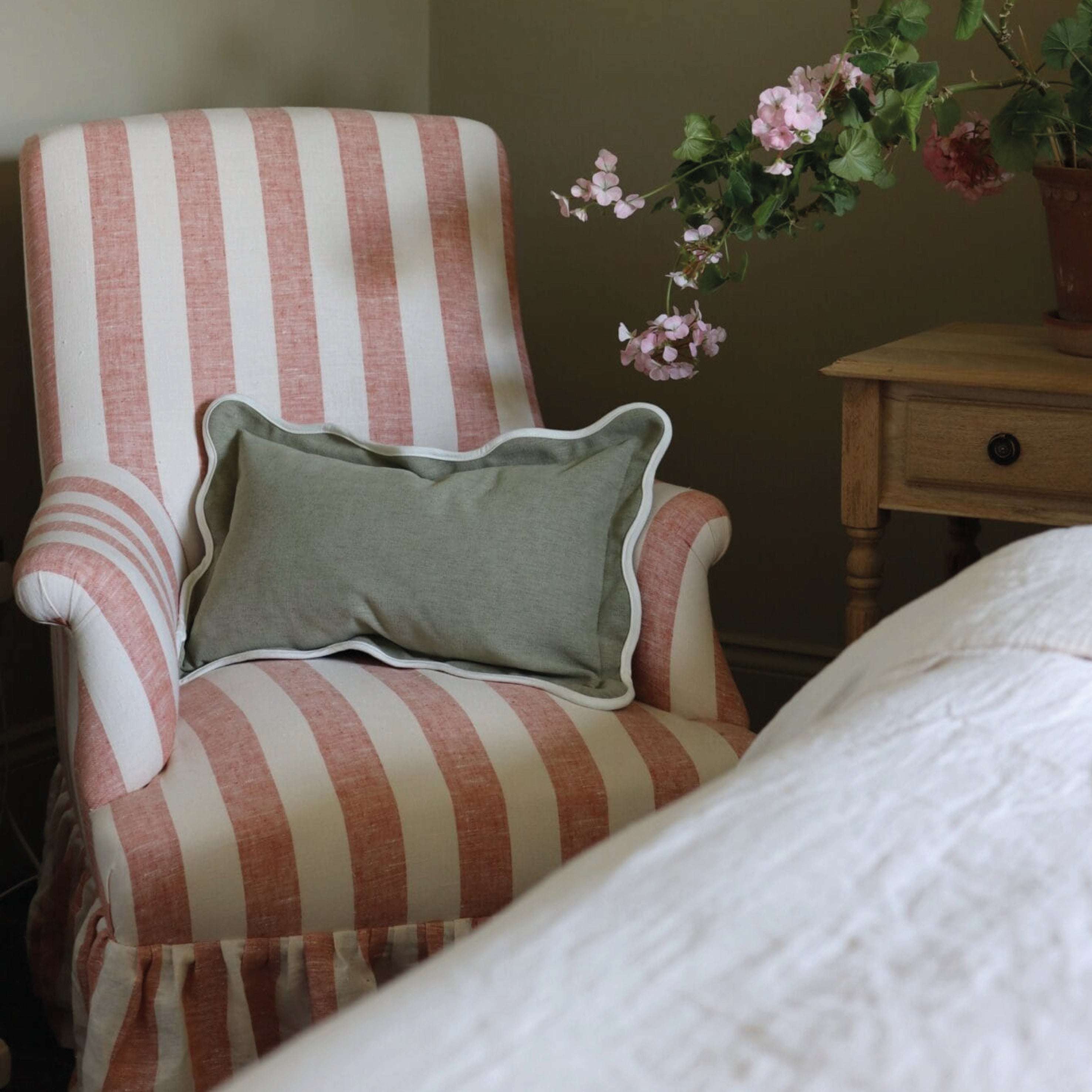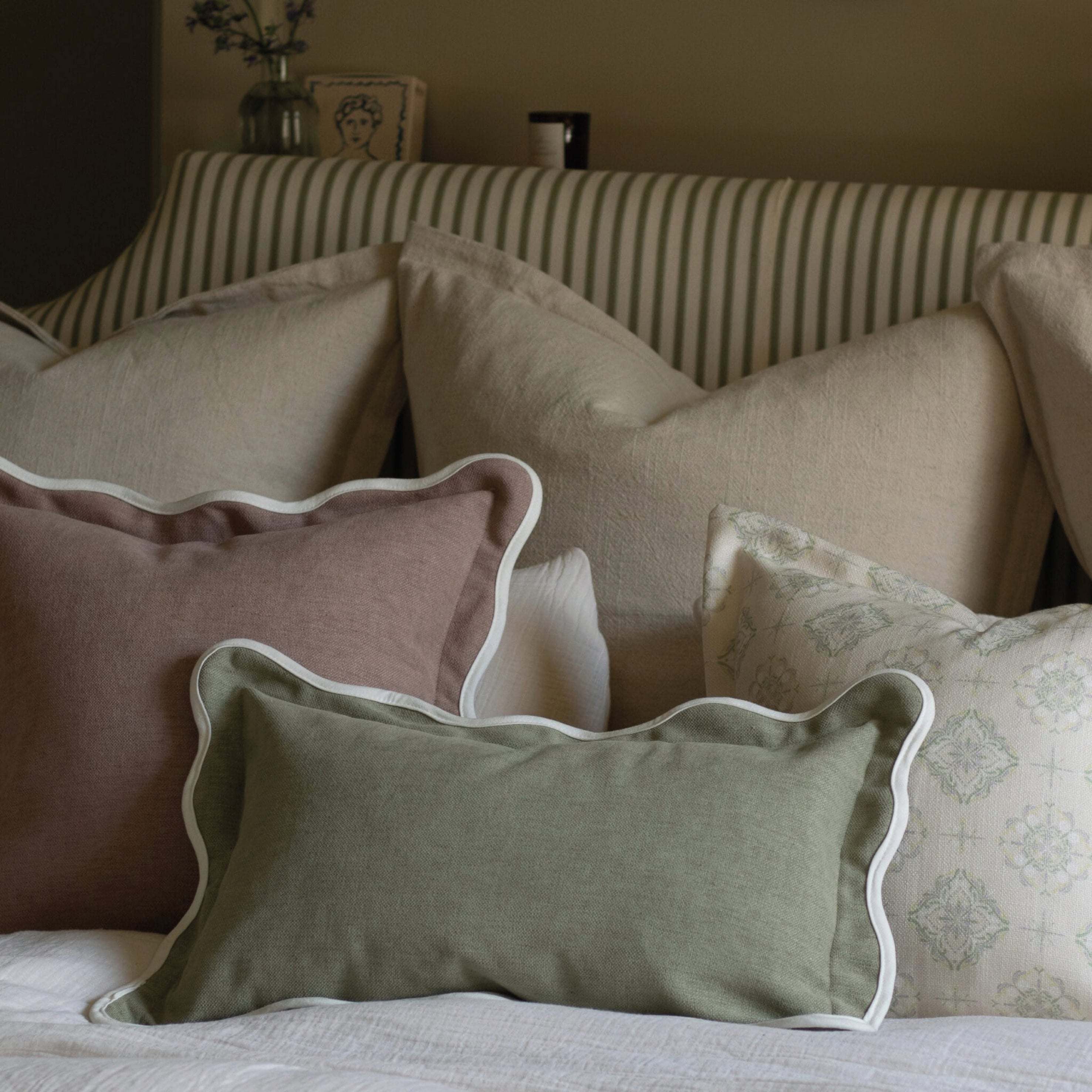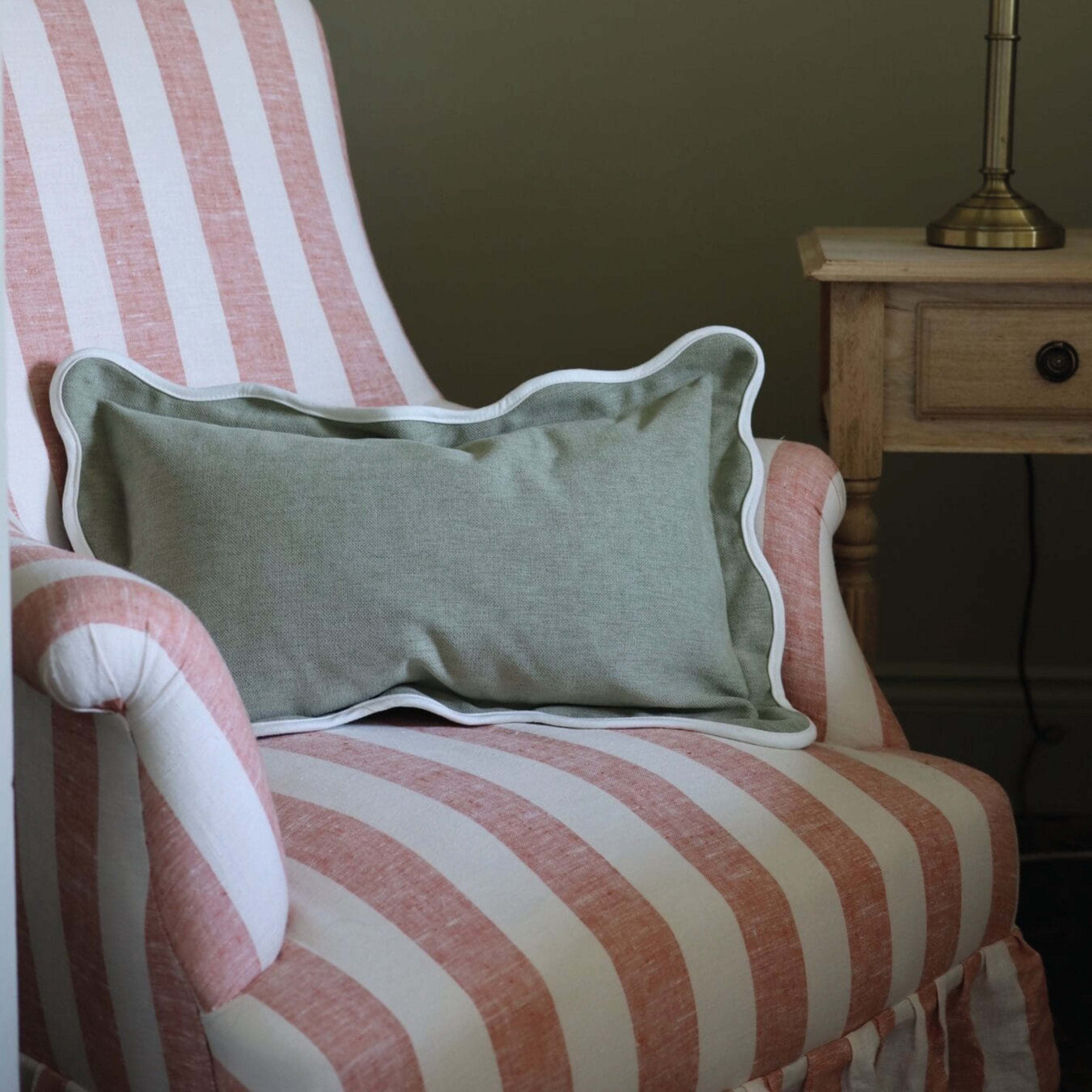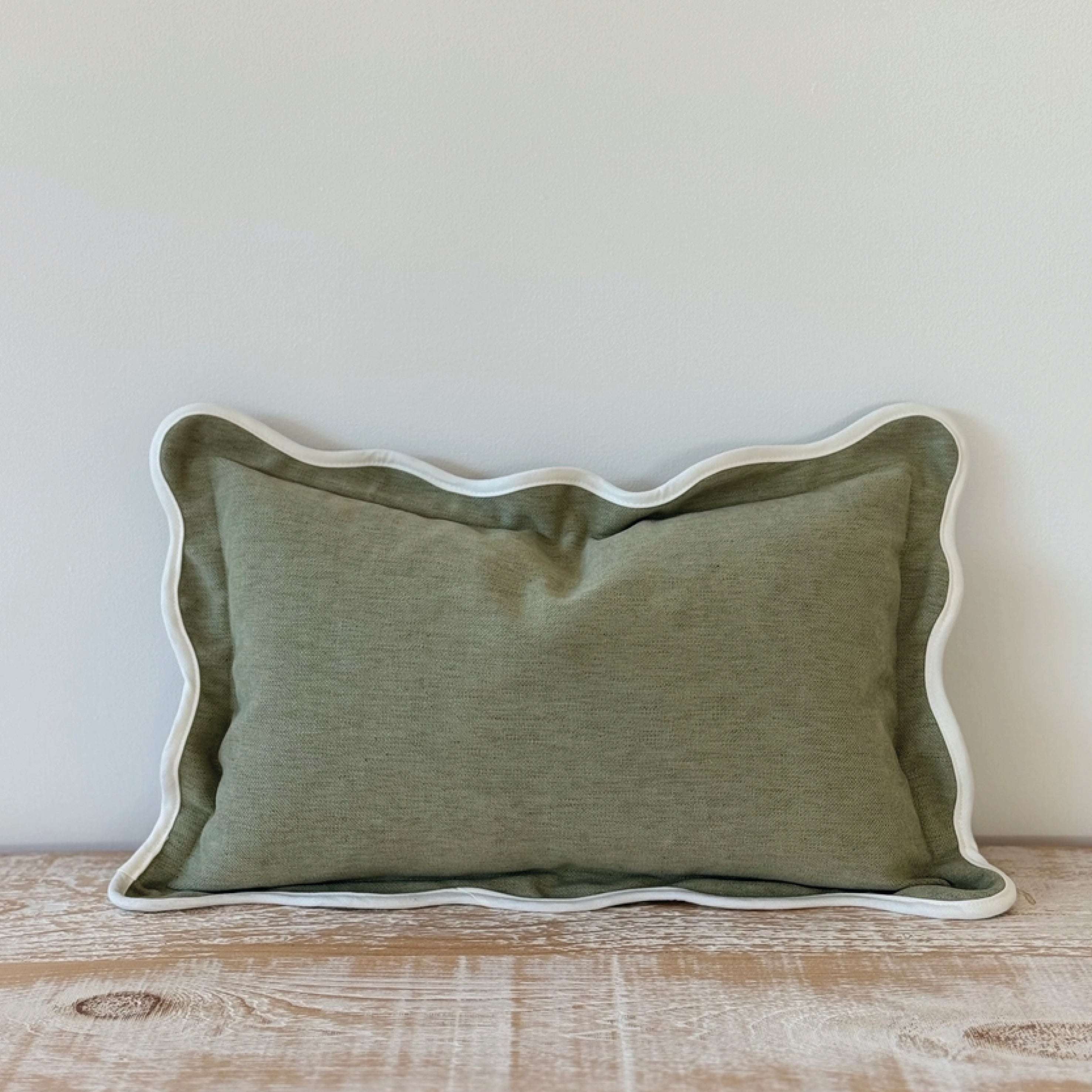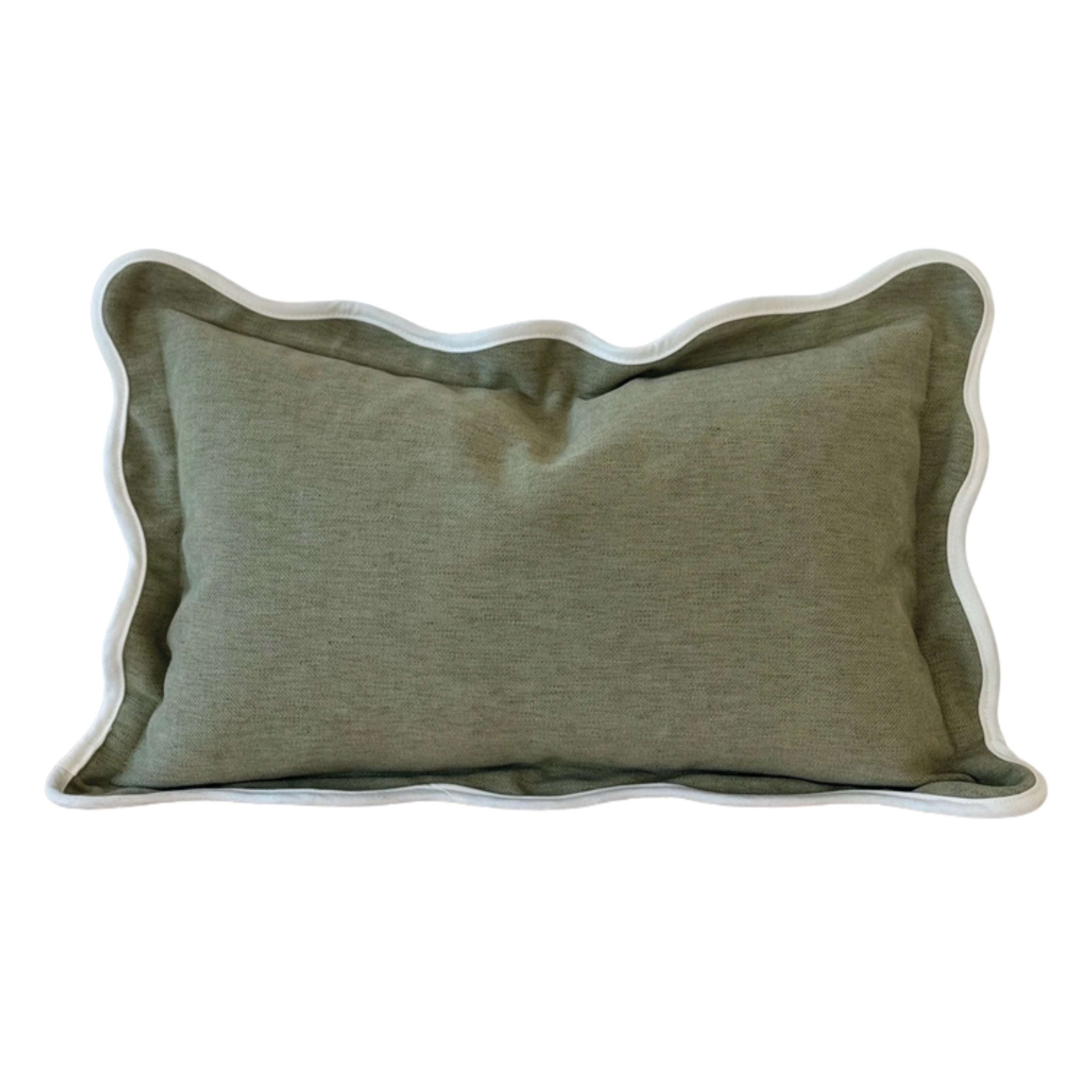 Introducing the Sage Rectangular Scalloped Chloe Cushion, a delightful sage green cushion to add to your living space that seamlessly blends elegance with comfort. This scalloped edge cushion is the perfect finishing touch to any space.