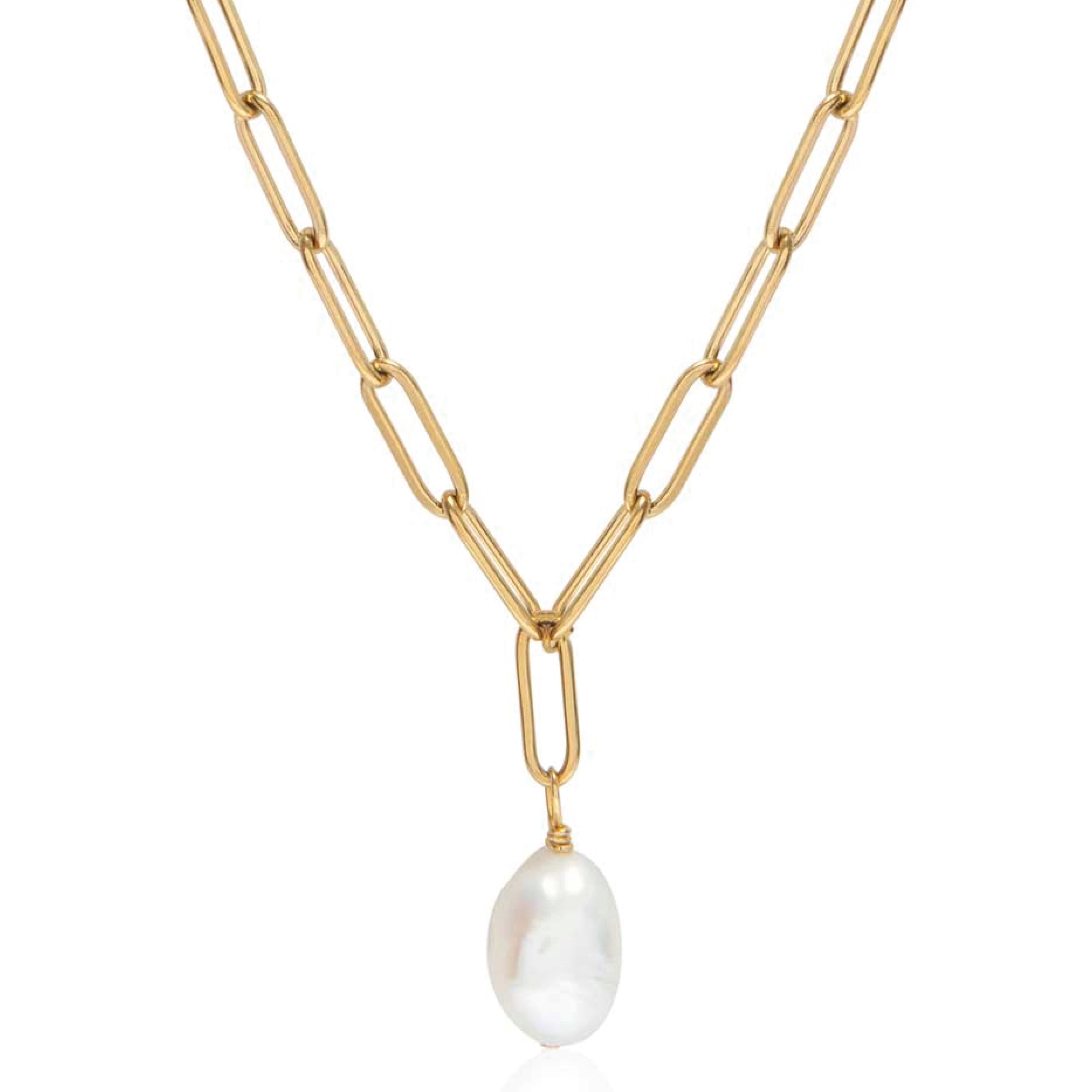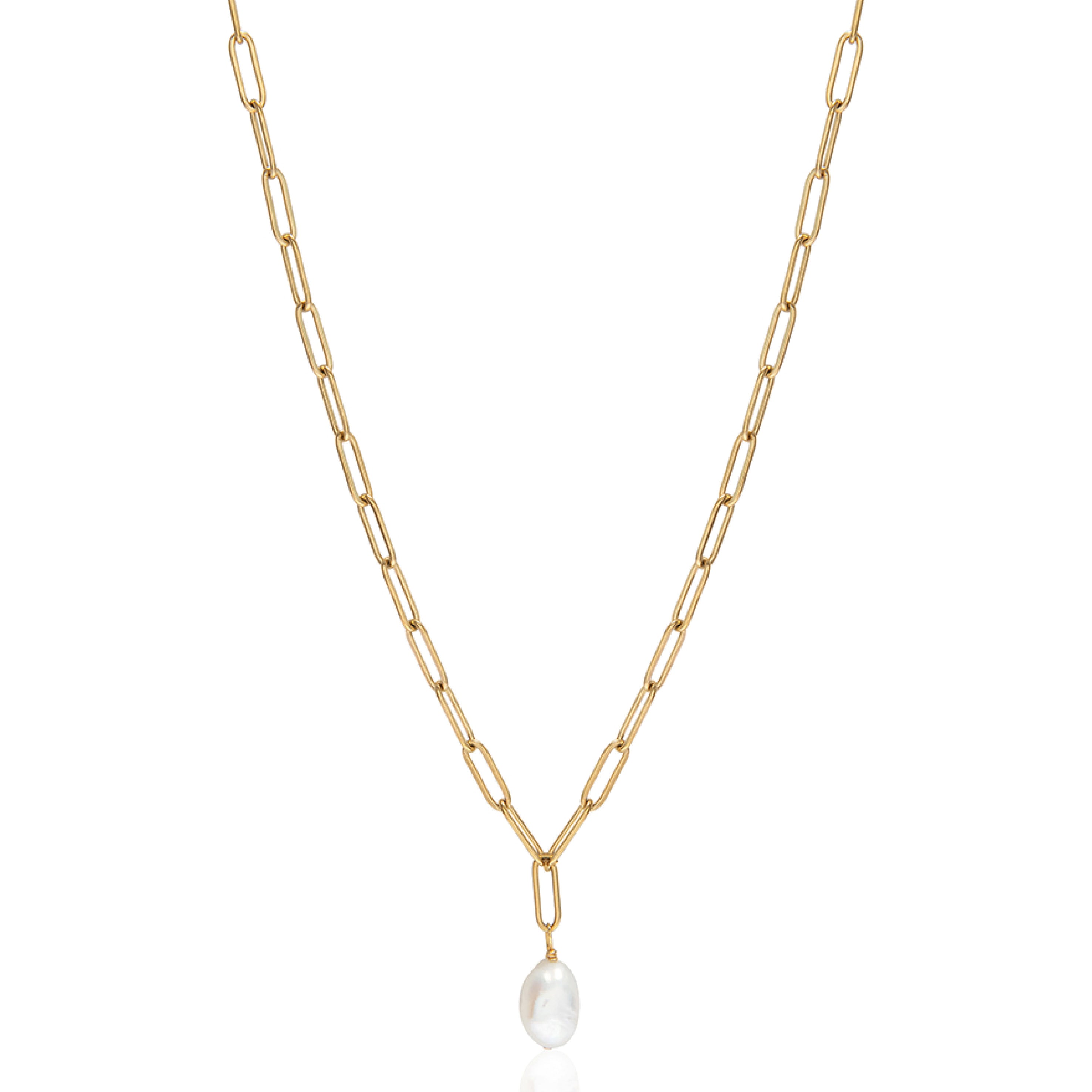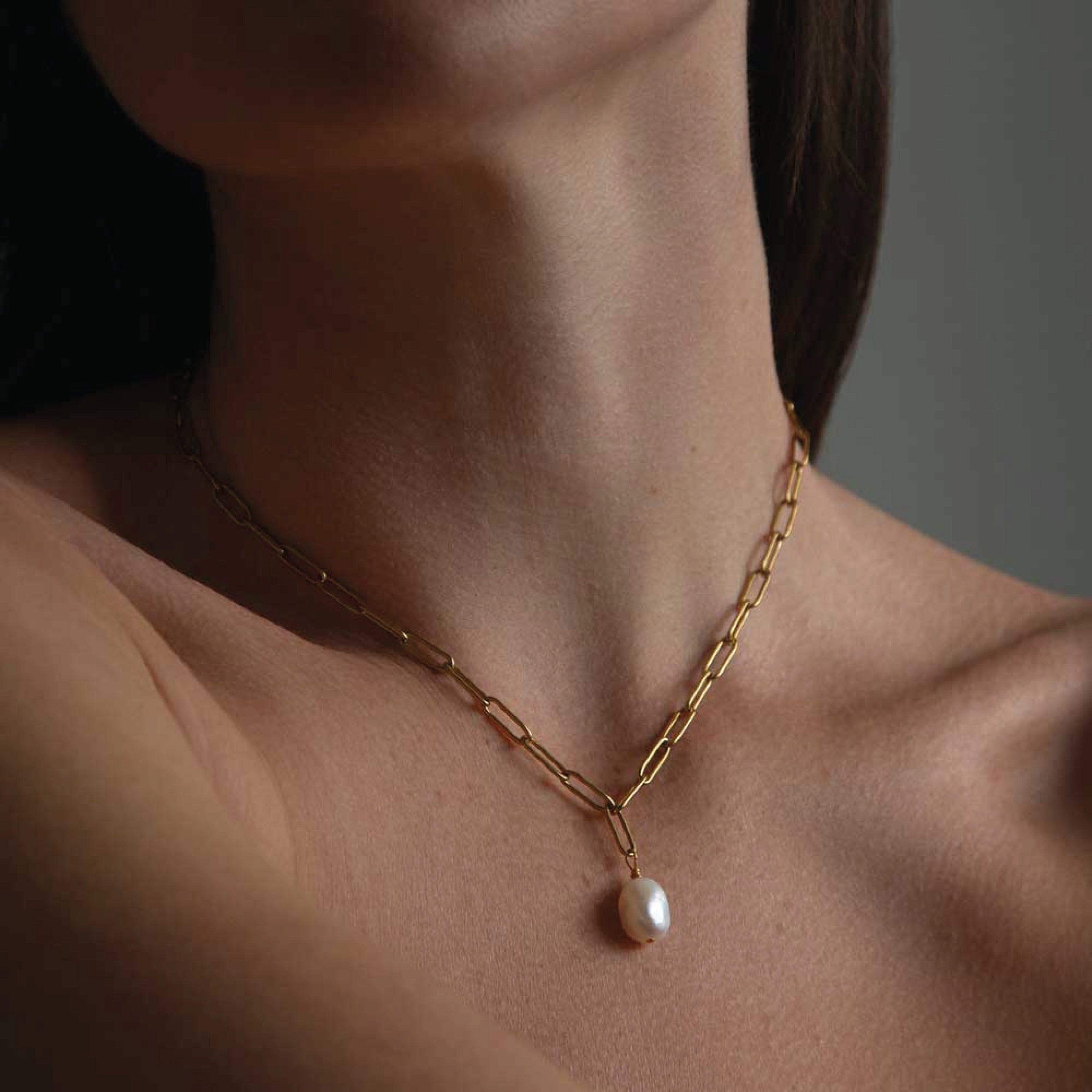 The Willow Pearl Chain Necklace is a simple and modern chunky open link chain with a freeform fresh water pearl charm. This chain works with all of your wardrobe to add an effortless style update.