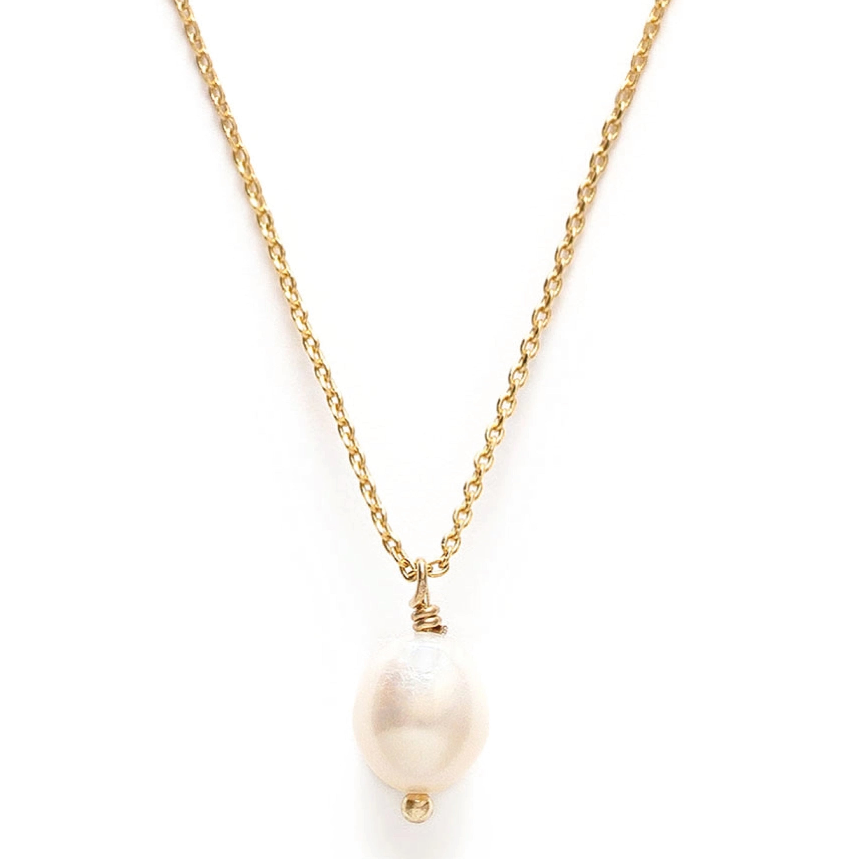 The Fresh Water Pearl Necklace features a one-of-a-kind freshwater pearl. Wear it short like a choker or layered with a friend, the fresh water pearl is on an adjustable fine cable chain with a sliding adjustable feature that allows you to wear it at any length.
