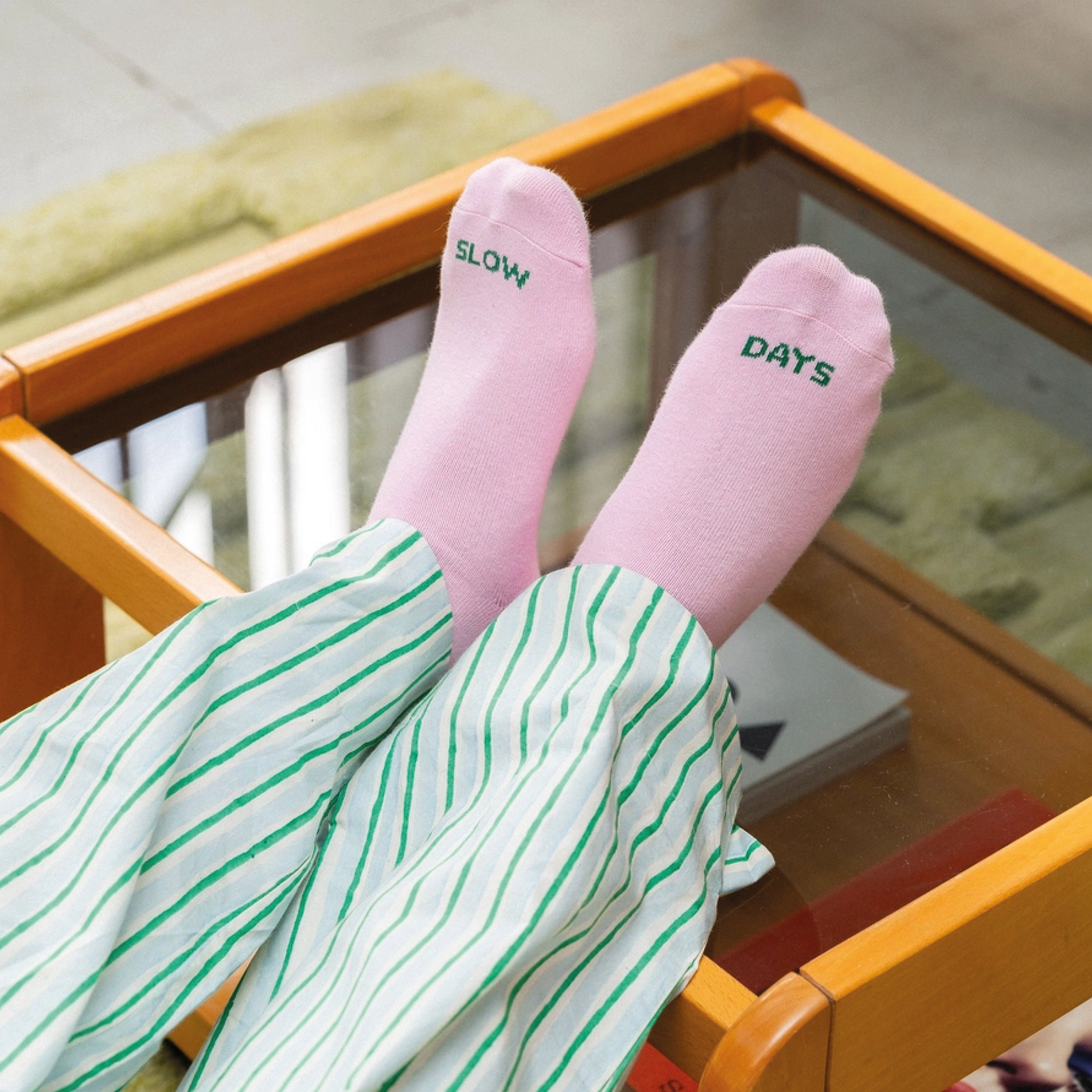 Soft, cosy and made to match your slowest mood. Your reminder that doing nothing is doing something. These Slow Days Socks are soft and comfortable and crafted with care to ensure durability and a perfect fit.