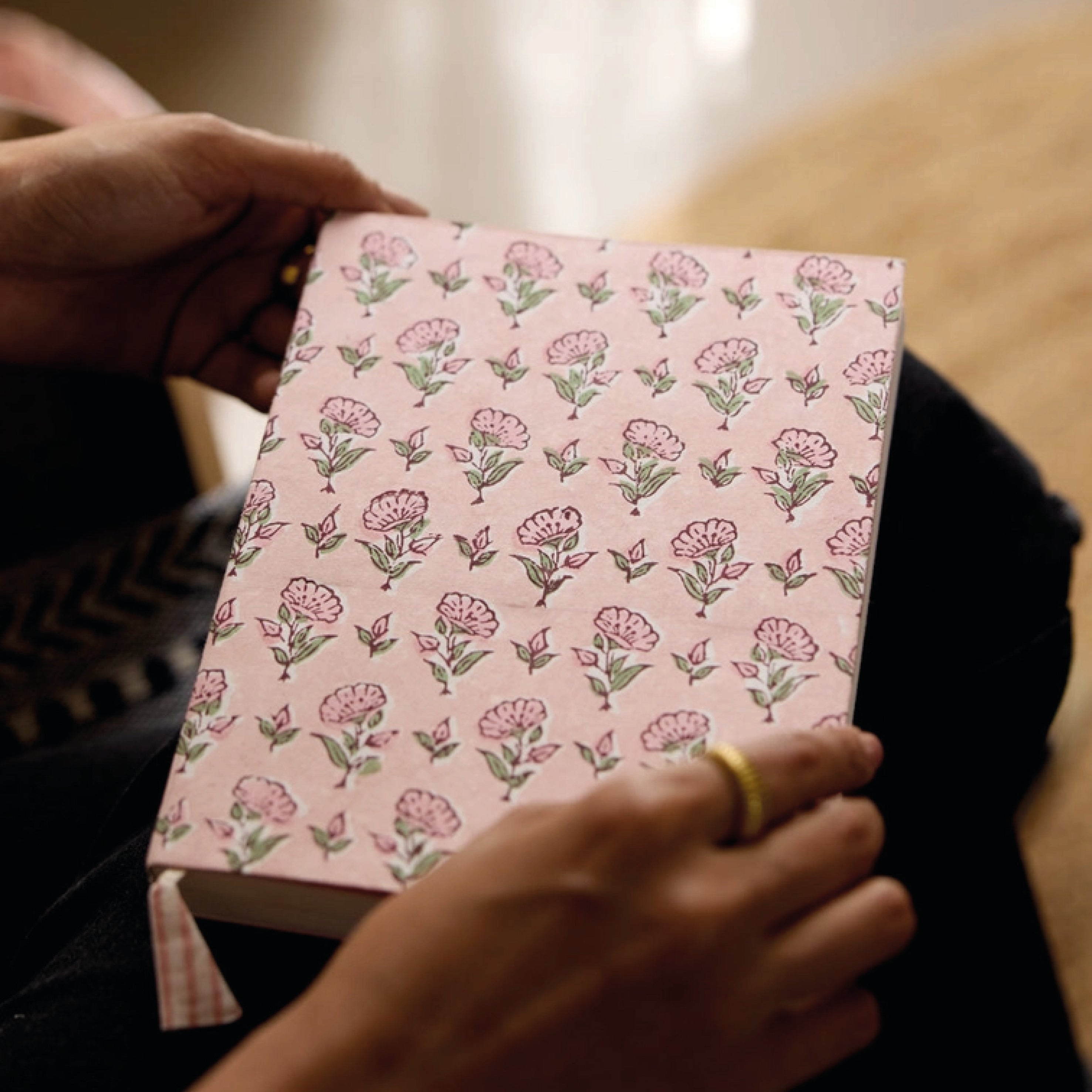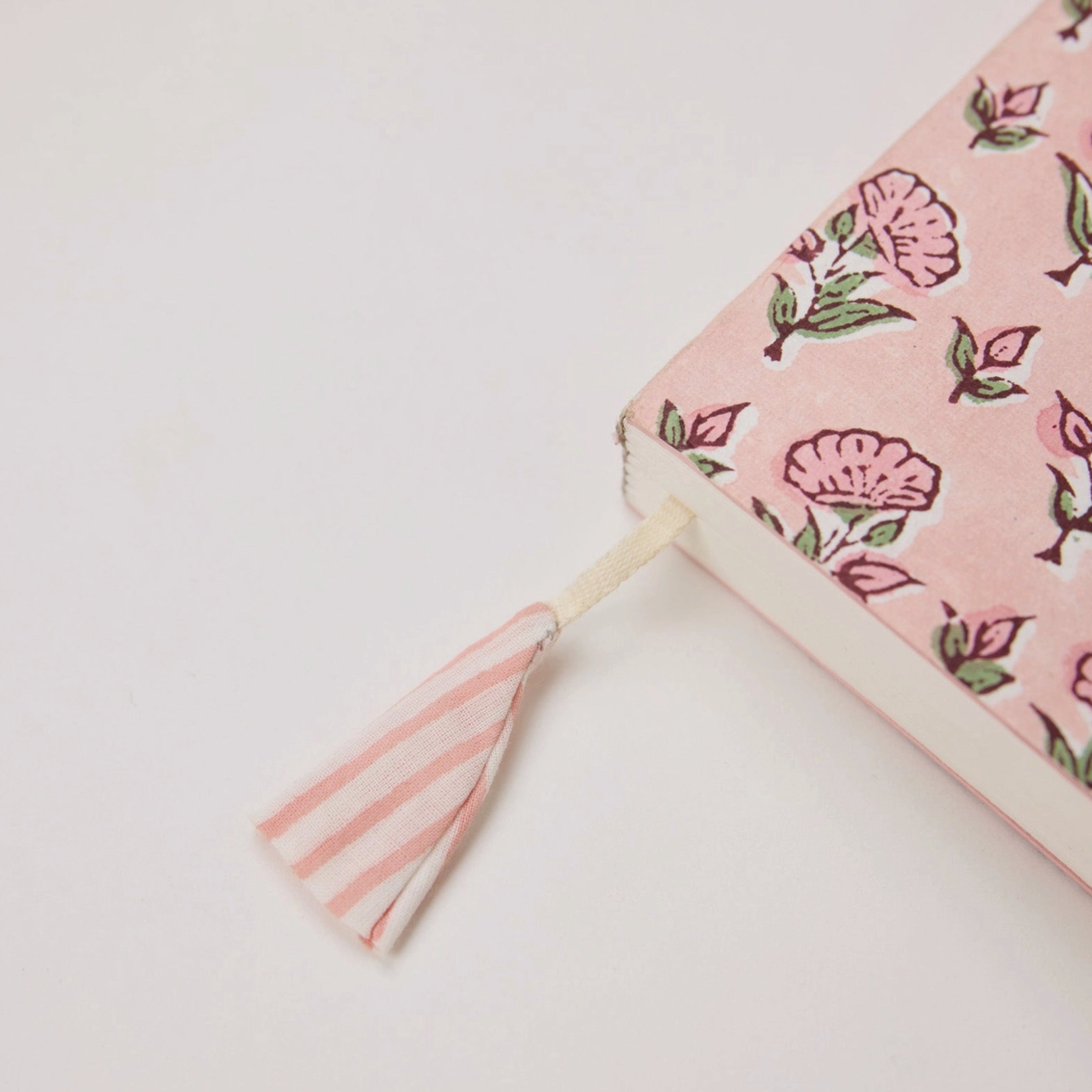 The Paper Mirchi Ditsy Floral Blush Block Printed Ruled Notebook is pure joy for stationery lovers – they open flat for effortless writing and sketching, and each one is finished with a pretty cotton tassel ribbon marker.