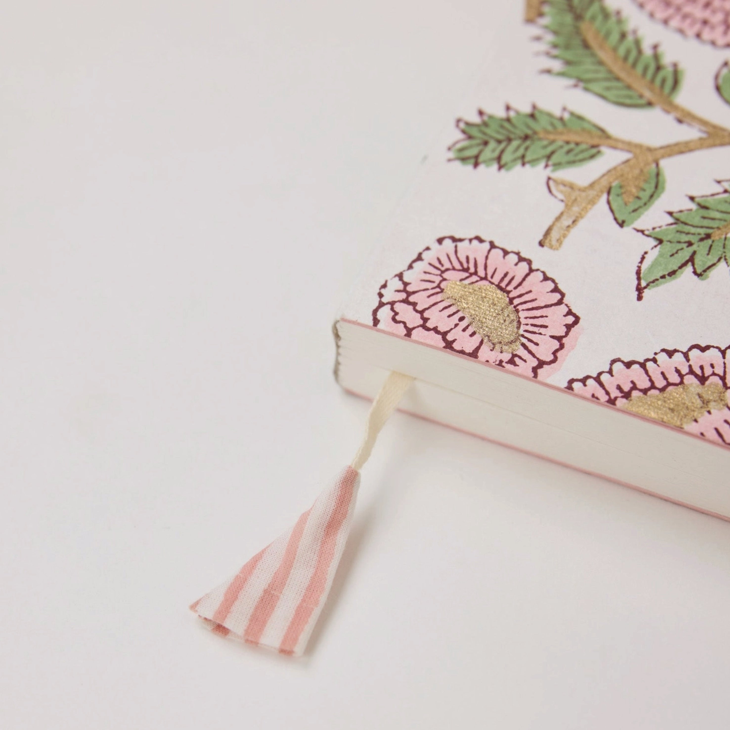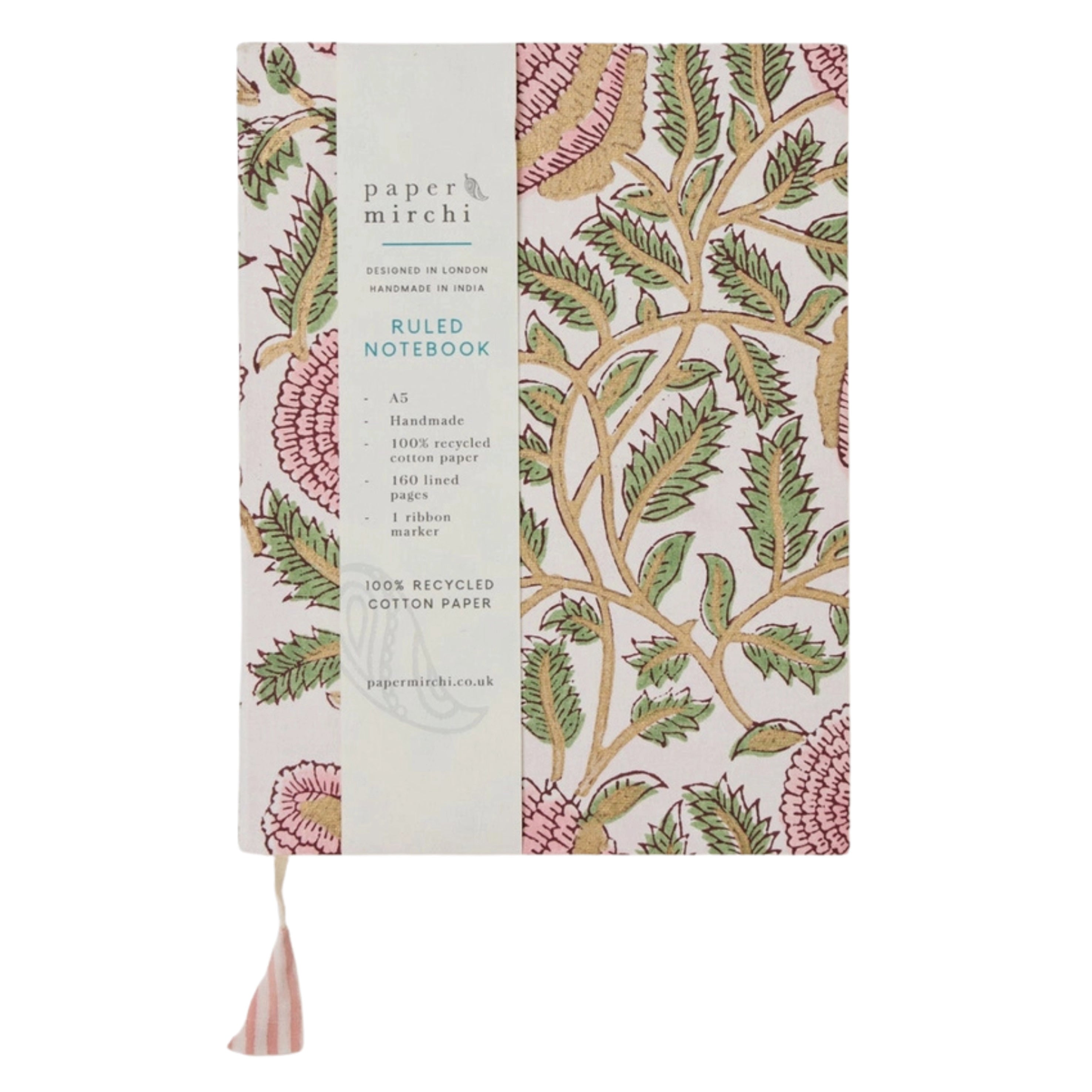 The Paper Mirchi Marigold Glitz Blush Block Printed Ruled Notebook is pure joy for stationery lovers – they open flat for effortless writing and sketching, and each one is finished with a pretty cotton tassel ribbon marker.