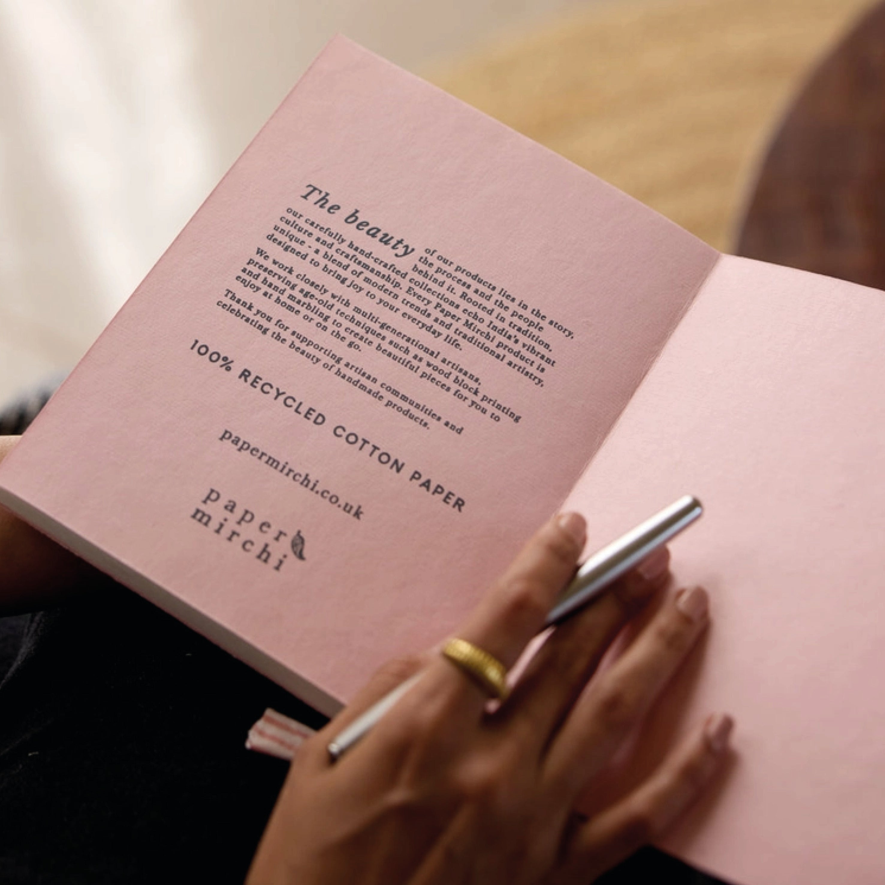 Each of the Paper Mirchi notebooks begins not on a printing press, but at the hands of skilled artisans – where blocks are carved, colours are mixed and patterns come to life through the ancient craft of hand block printing and marbling. Every cover is a small work of art, made slowly and with intention.