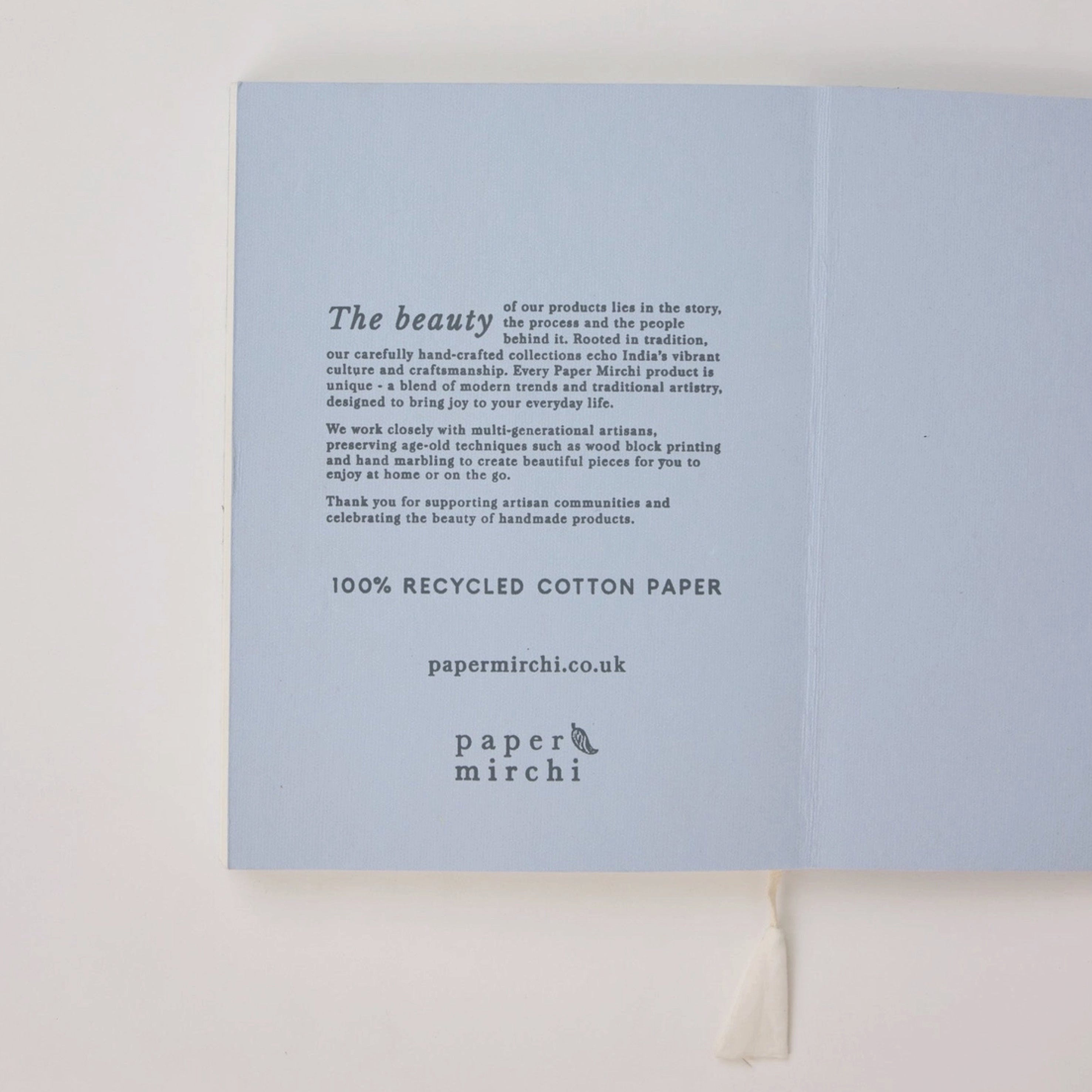 Each of the Paper Mirchi notebooks begins not on a printing press, but at the hands of skilled artisans – where blocks are carved, colours are mixed and patterns come to life through the ancient craft of hand block printing and marbling. Every cover is a small work of art, made slowly and with intention.
