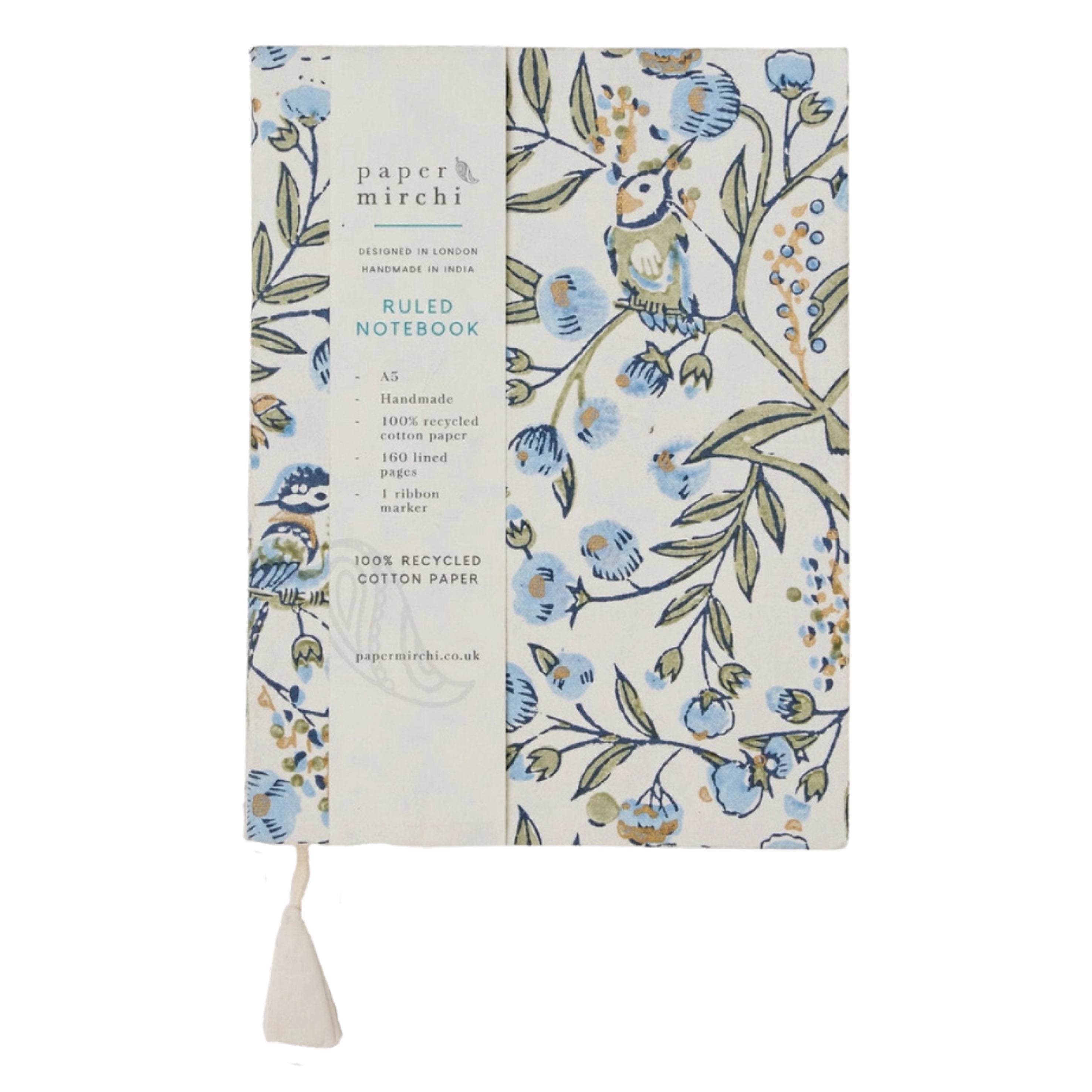 The Paper Mirchi Song Birds Blue Stone Block Printed Ruled Notebook is pure joy for stationery lovers – they open flat for effortless writing and sketching, and each one is finished with a pretty cotton tassel ribbon marker.