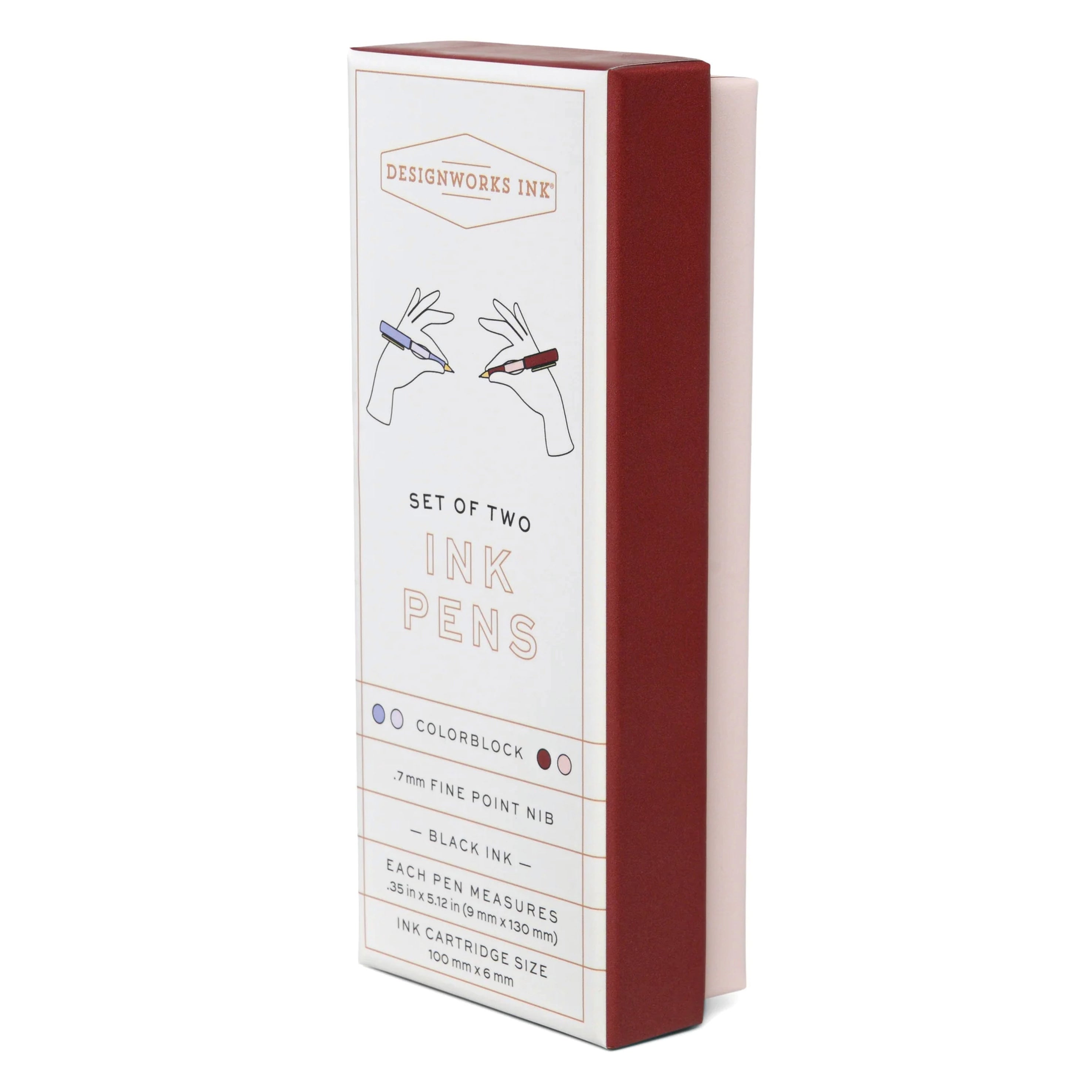 The luxurious matte-finish Lavender & Blush Colourblock Pen Set is here to help make your mark in style. Each metal ink pen features two colours and is adorned in gold accents with a clip plus an ultra fine ballpoint tip for exceptional writing.
