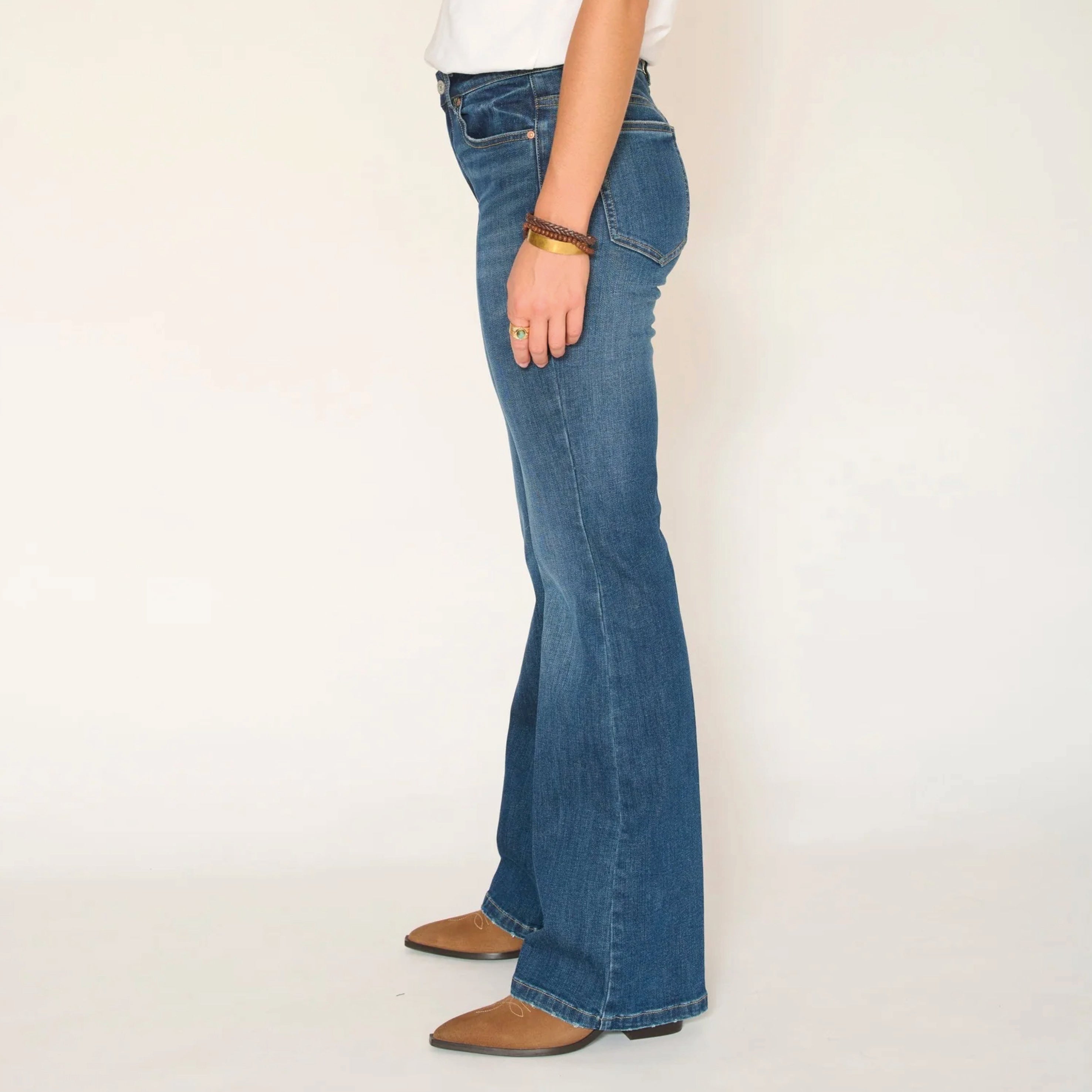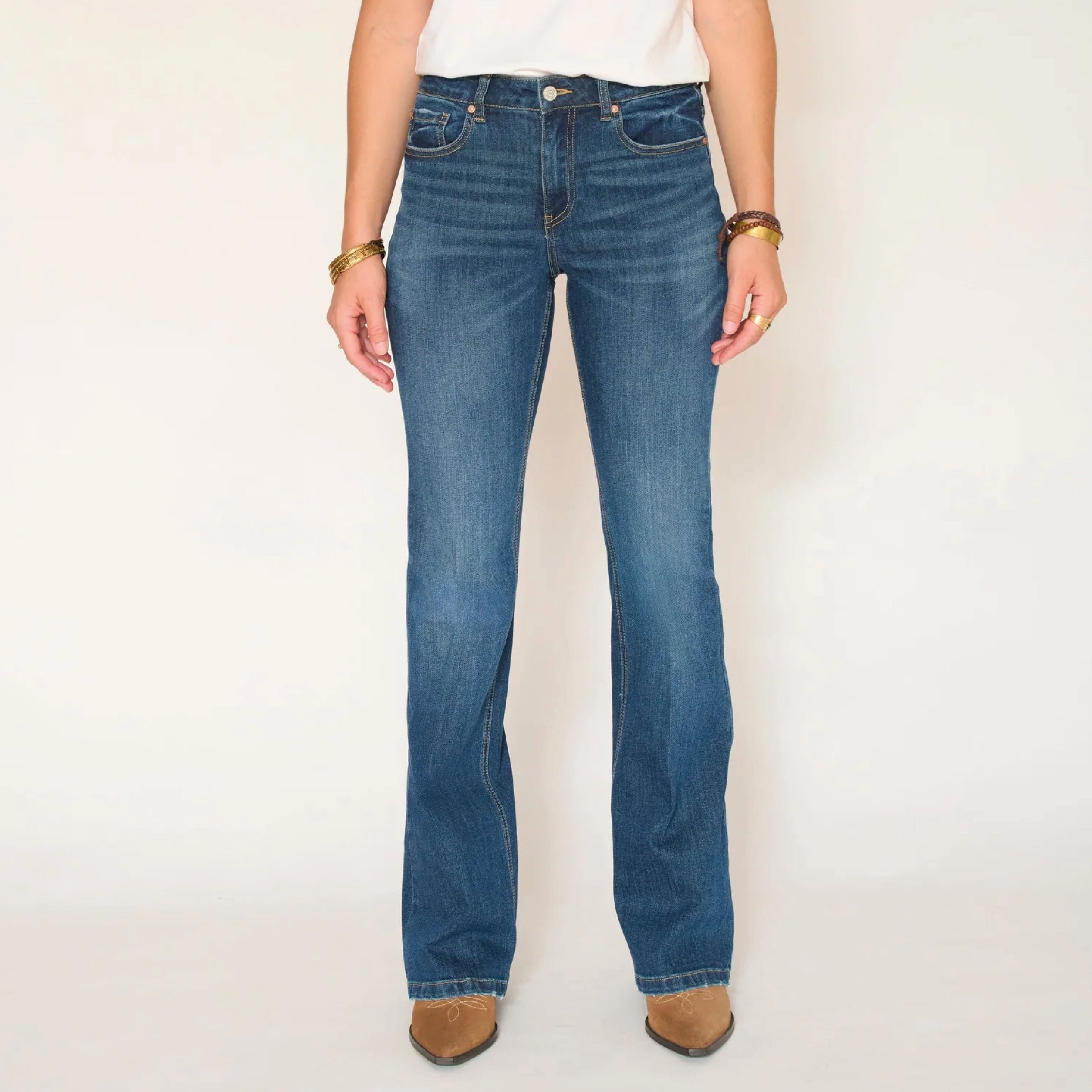 These flared jeans are perfect for those looking for a casual yet elegant style. They pair perfectly with fitted tops or flowing blouses, creating a balanced look. Their flared cut allows them to be worn with ankle boots or heels, accentuating the silhouette. The Arkansas wash adds an interesting visual dimension, making these jeans easy to wear in any season. The Harley Wilson jeans are a must-have for fashion lovers who want to combine comfort and style, while enjoying a timeless and versatile piece in their wardrobe.