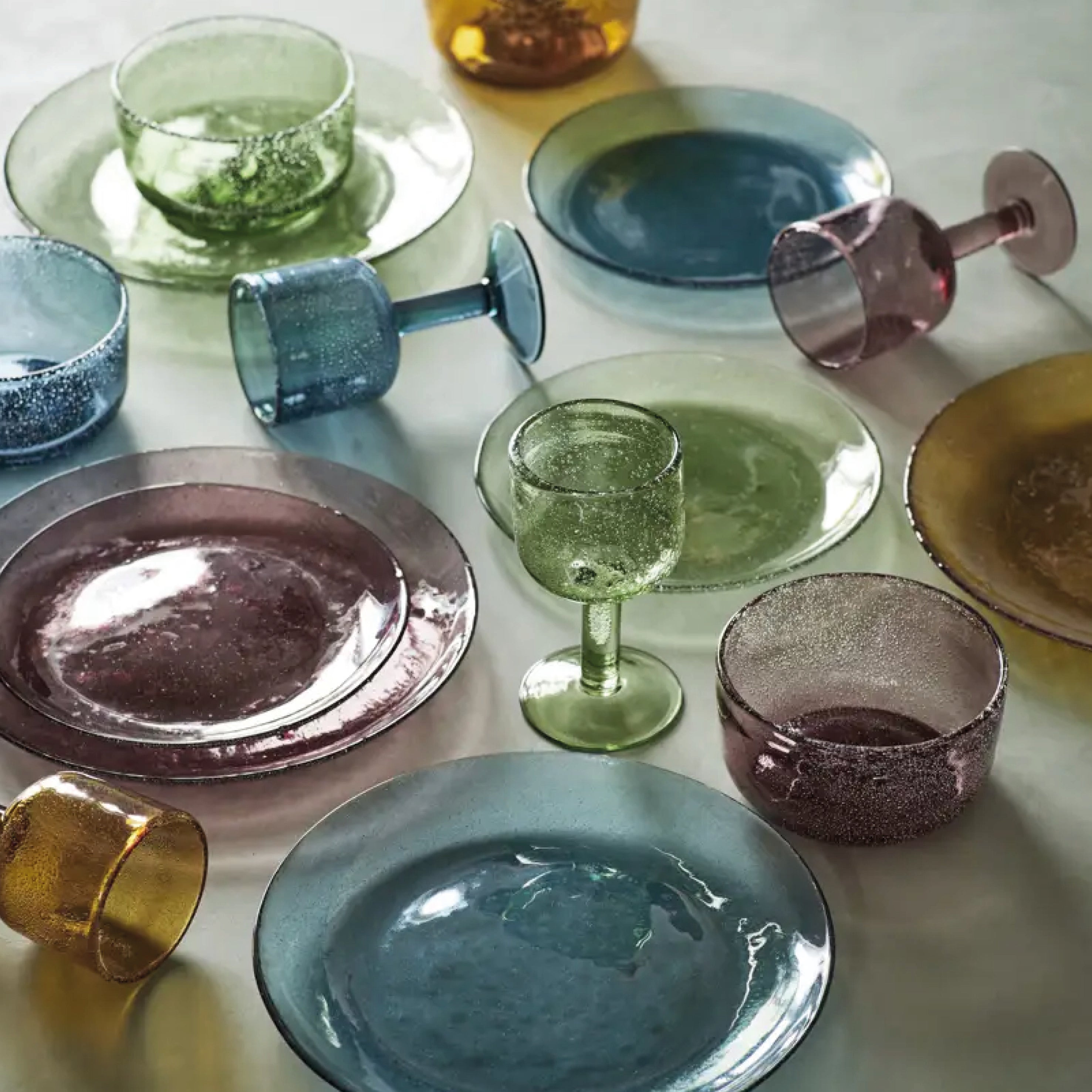 Add a pop of colour to any kitchen or tablescape with the elegant Purple Coloured Wine Glass with a purple translucent hue and playful bubbles.