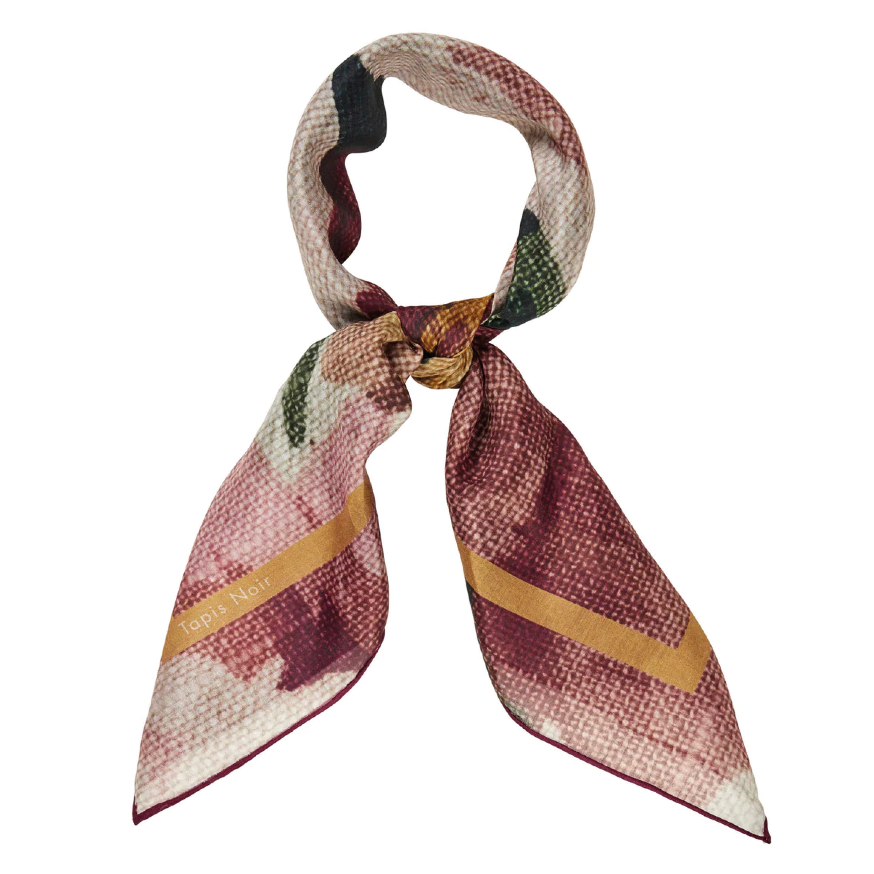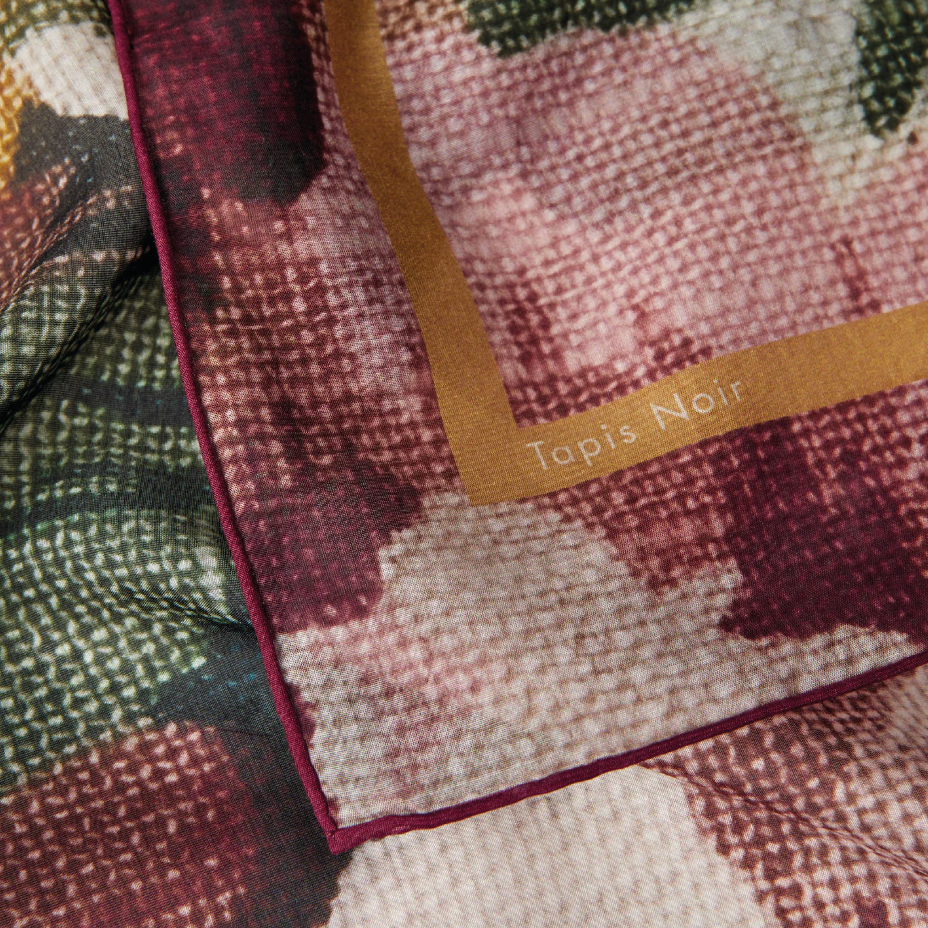 The Tapis Noir Light Dusty Bloom Scarf is made in our soft mix of cotton and silk. The print comes from a piece of late 19th century fabric, which we have in our archive. However, the motive is baroque and probably Italian. The edges are rolled and sewn by hand – a time-intensive process that gives the scarf a very handsome hem.