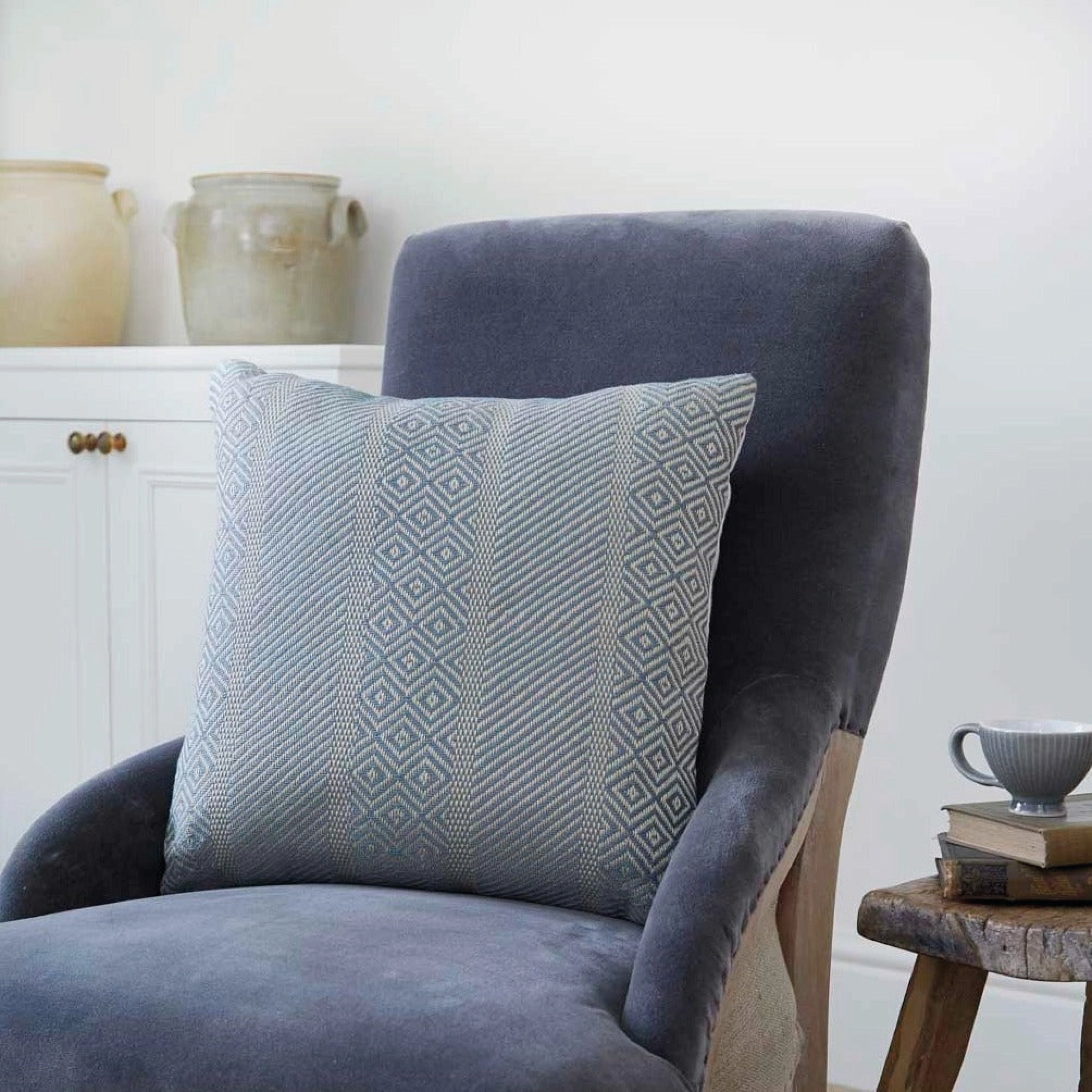 The silky soft Duck Egg Minerva Cushion features woven patterns in a stunning design that works in just about any interior. Machine washable and stain-resistant, these beautiful duck egg cushions have a silky soft weave, and yet, amazingly, are still made entirely from recycled plastic bottles.