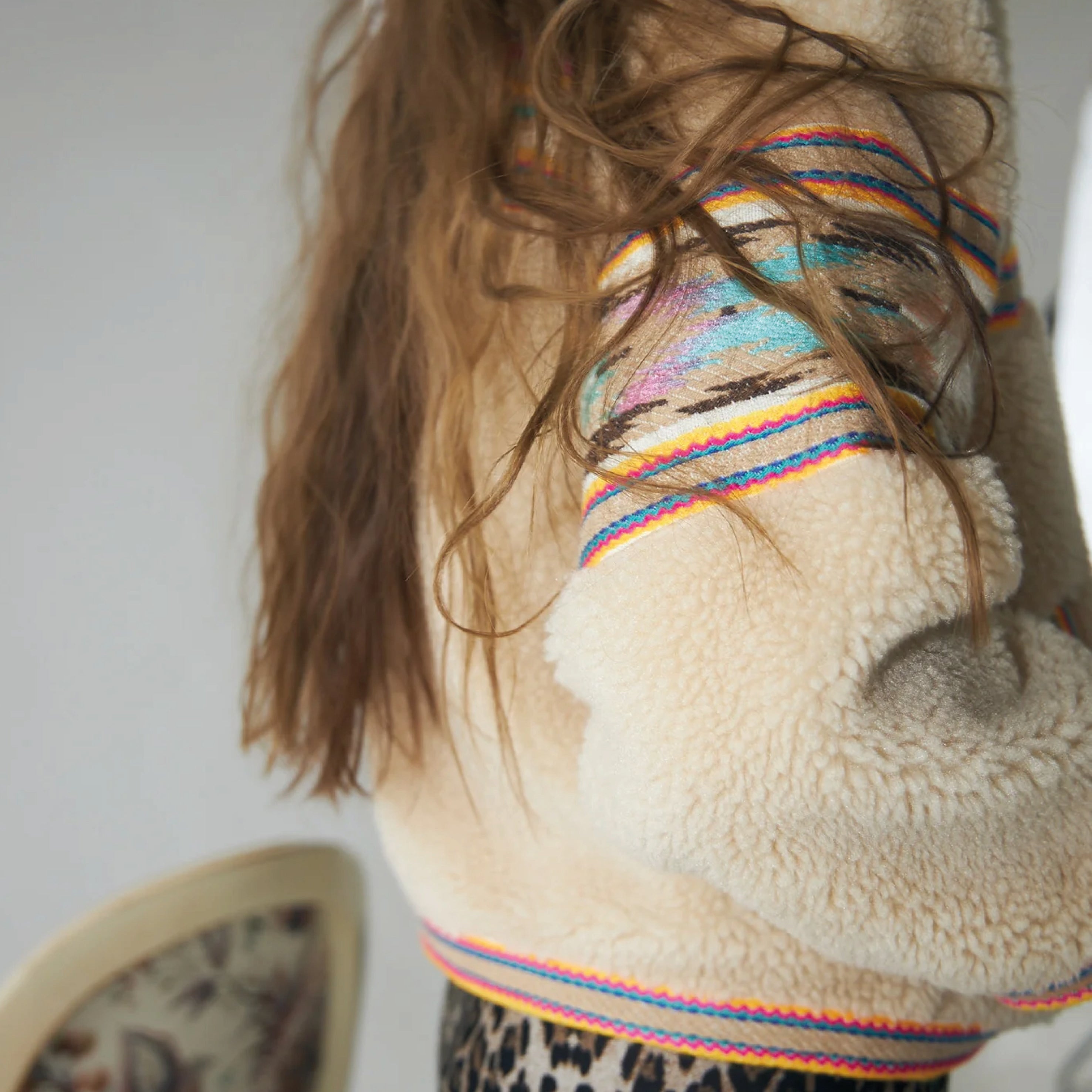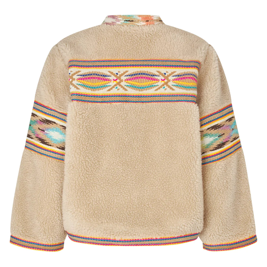 Wrap yourself in soft comfort with a touch of colour. Lollys Laundry Beige Siri Jacket is the perfect teddy jacket, combining warm materials with eye-catching embroidered details.
