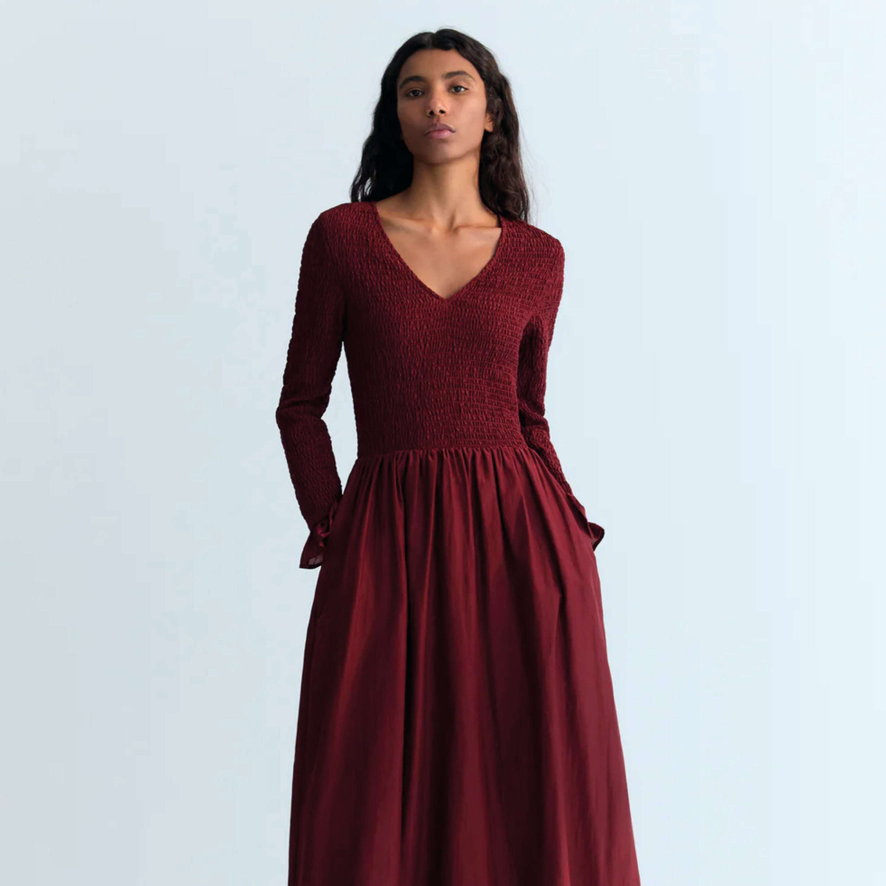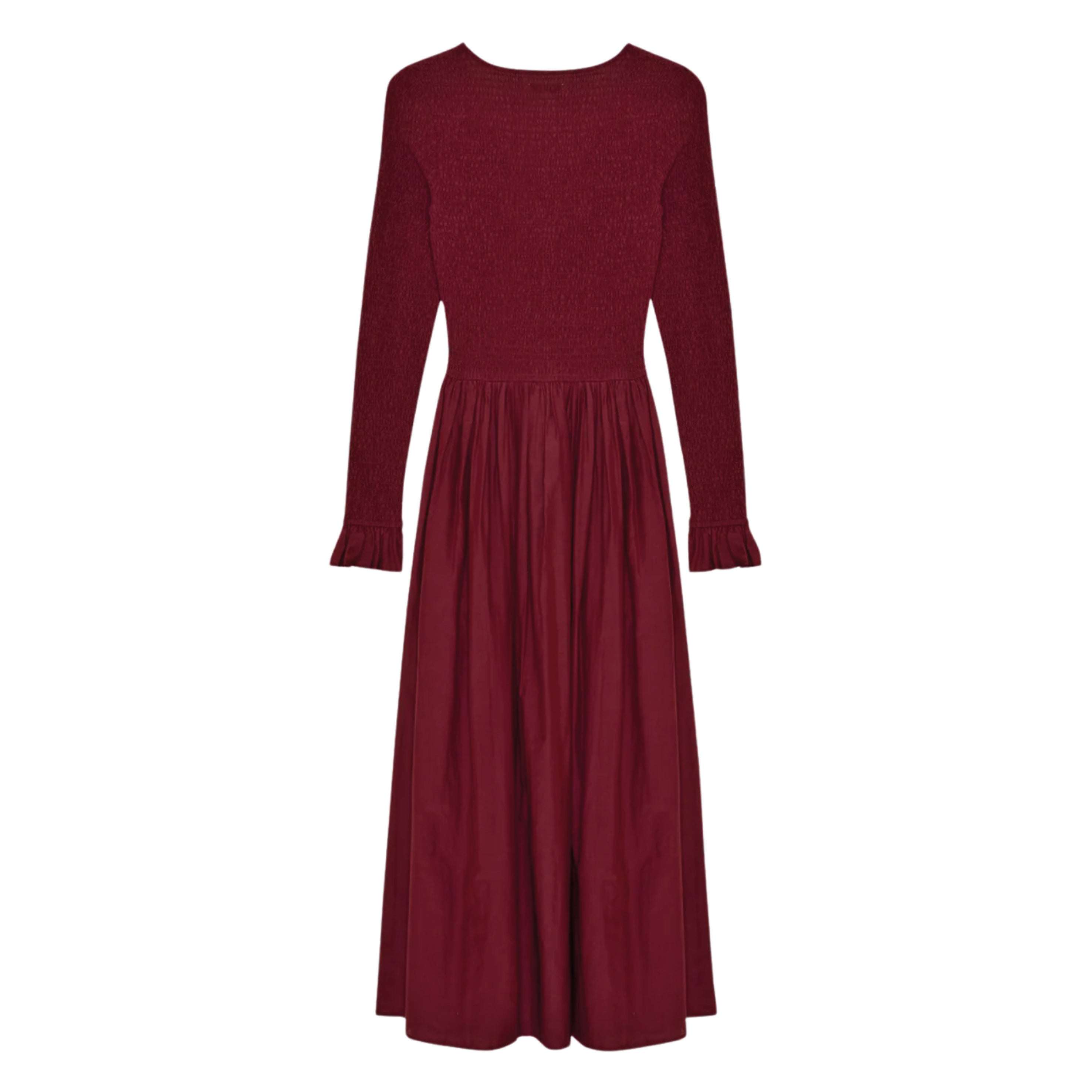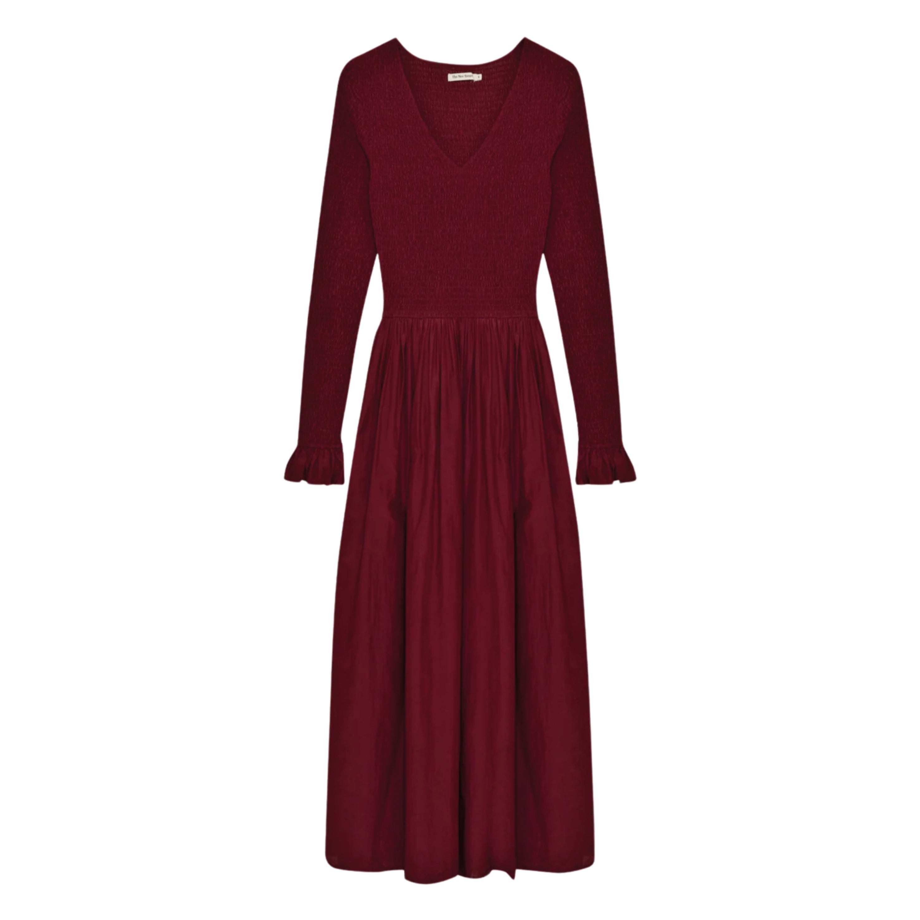 The Plum Fantasy Luly Dress is crafted from high-quality cambric fabric and designed with a smocked bodice and a flattering V-neckline. A versatile piece that combines comfort and timeless femininity.