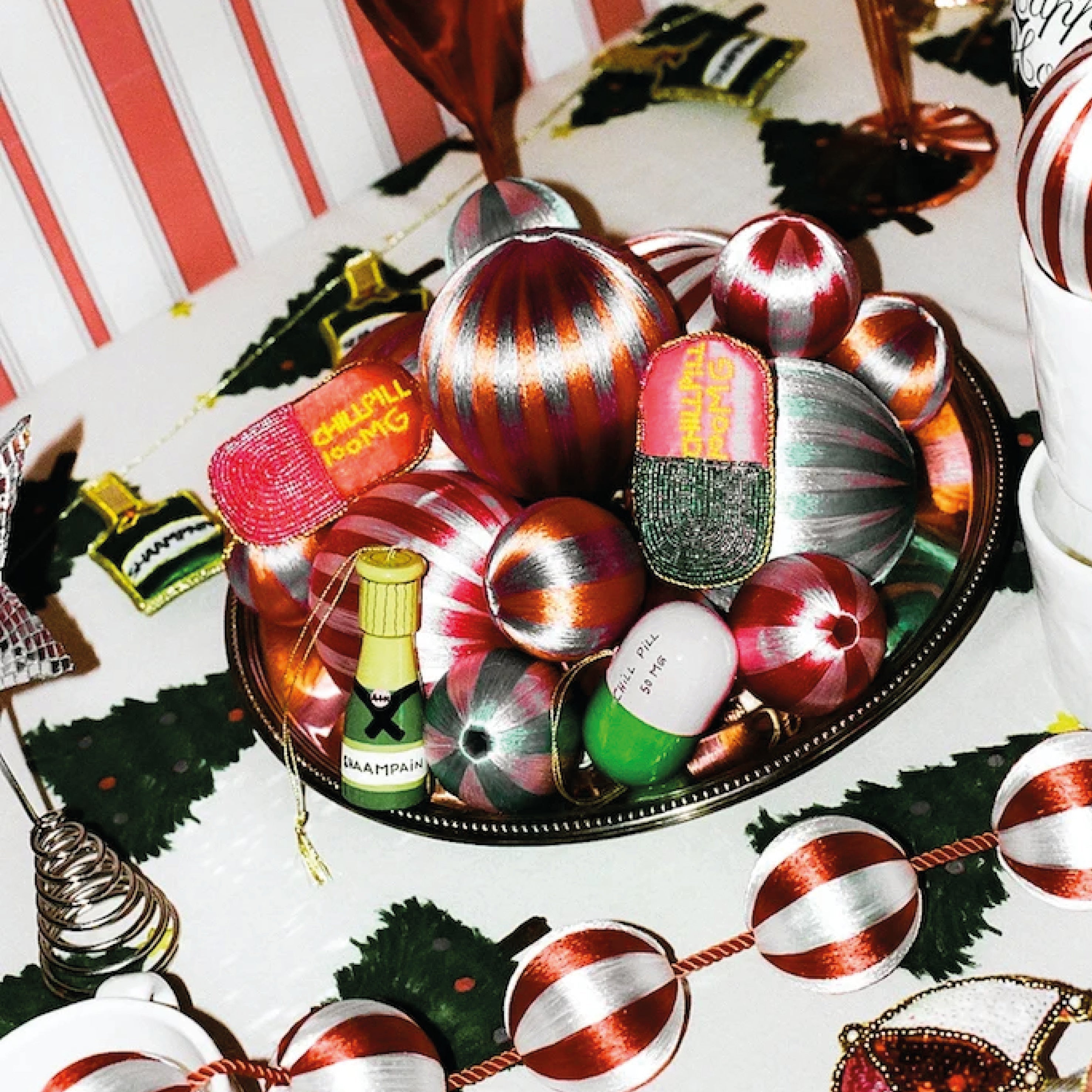 The Champagne Ornament is a handmade fun-living decorative piece with an eclectic feel on a golden string. Let this beautiful ornament enchant your Christmas tree.