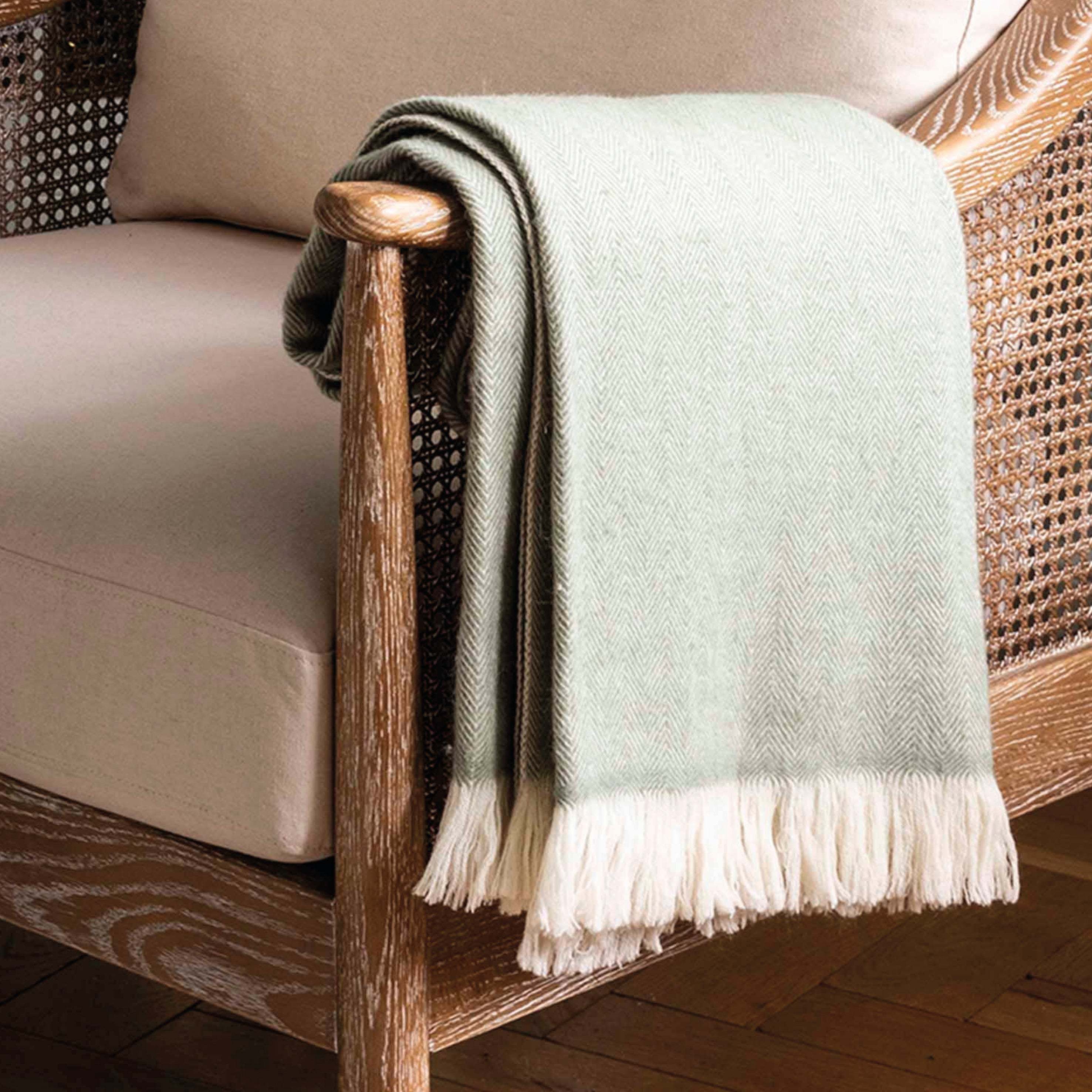 Give your room a makeover with the Stockwell Sage Herringbone Wool Throw. Crafted from 100% New Zealand wool, this warm throw has a timeless herringbone design that complements both traditional and contemporary decor. Whether you place it artfully on a sofa or armchair, pop it on your bed to provide an extra layer, or take it into the garden on a chilly evening, it's the perfect piece to snuggle under.