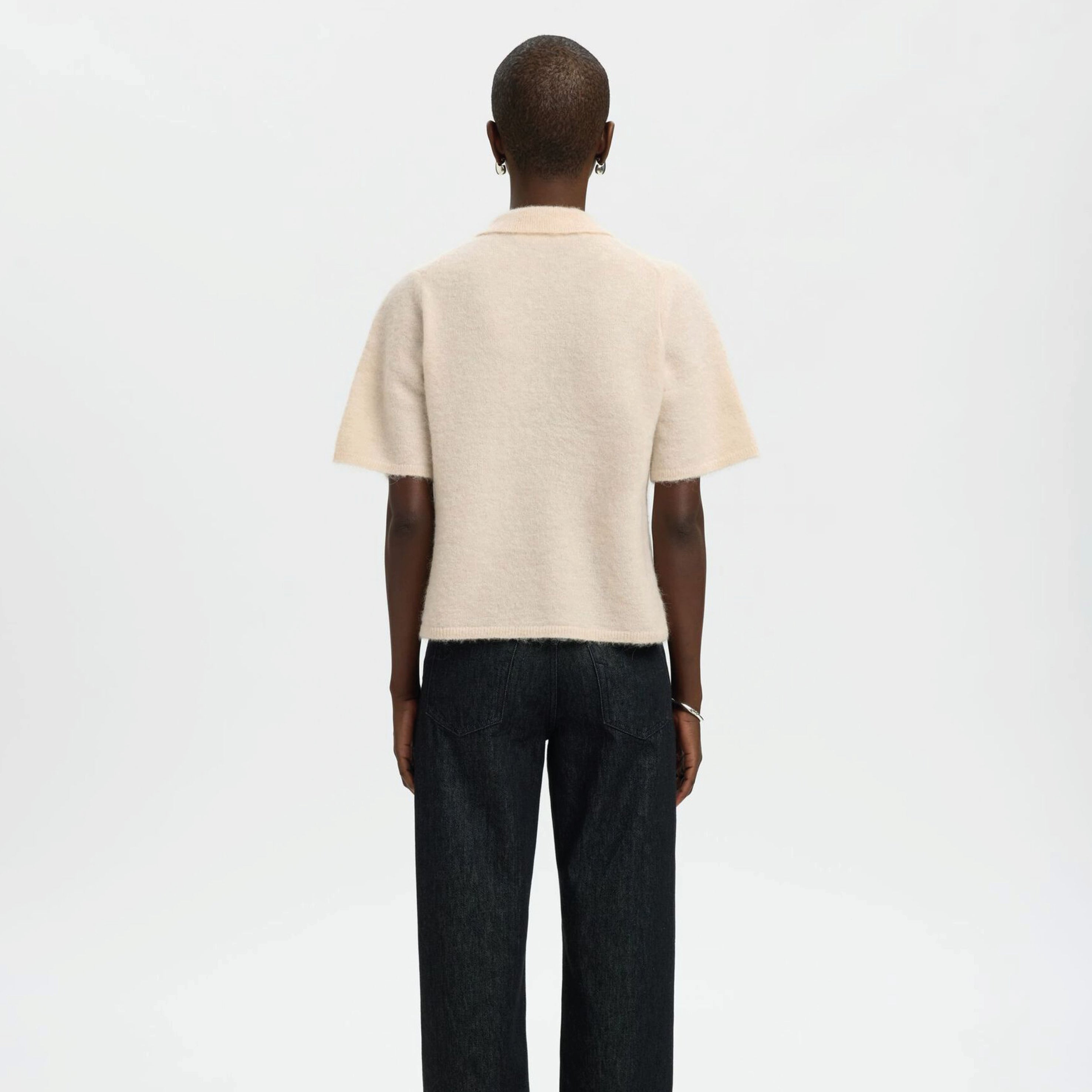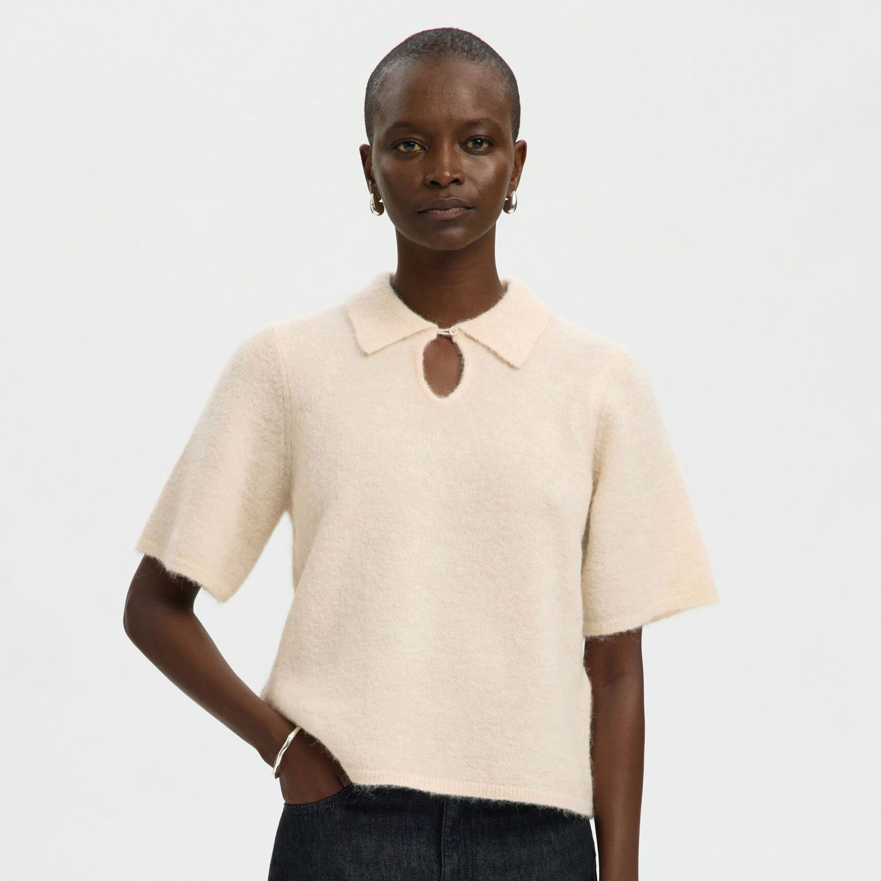 Selected Femme Sia Ras Birch Short Sleeve Knitted Top