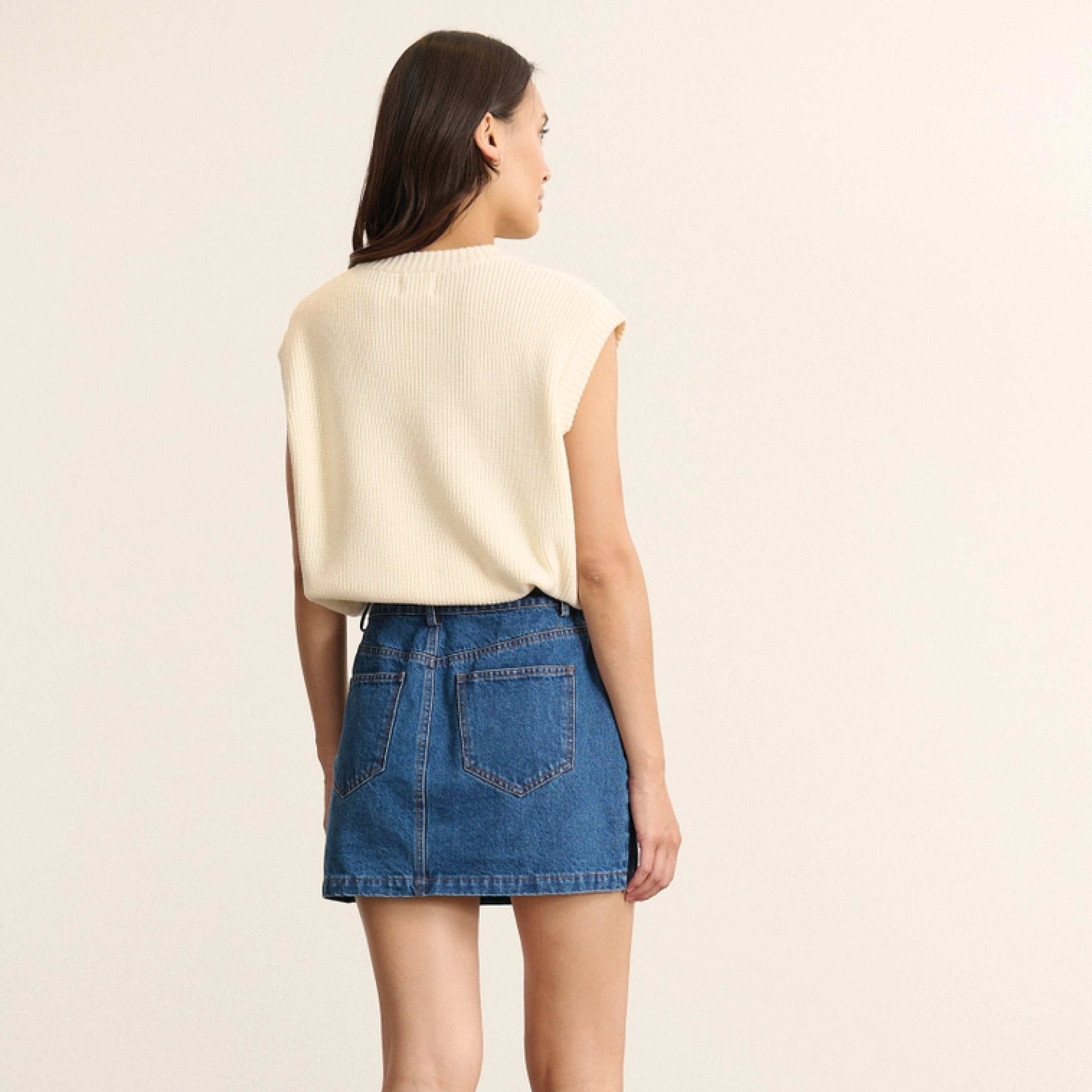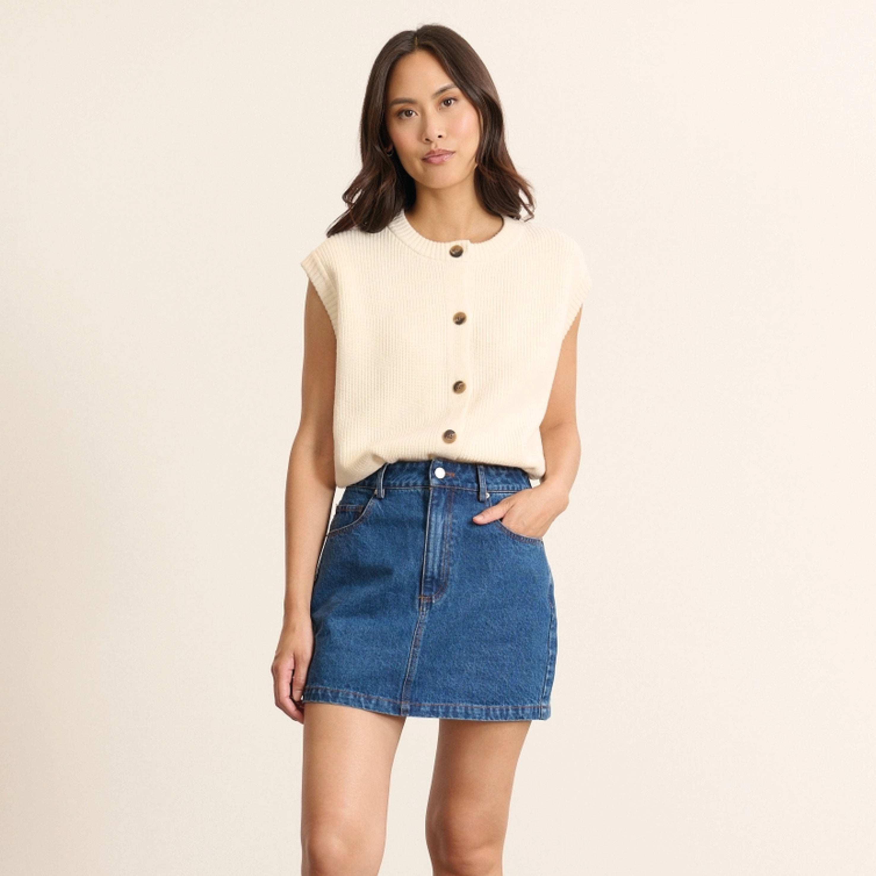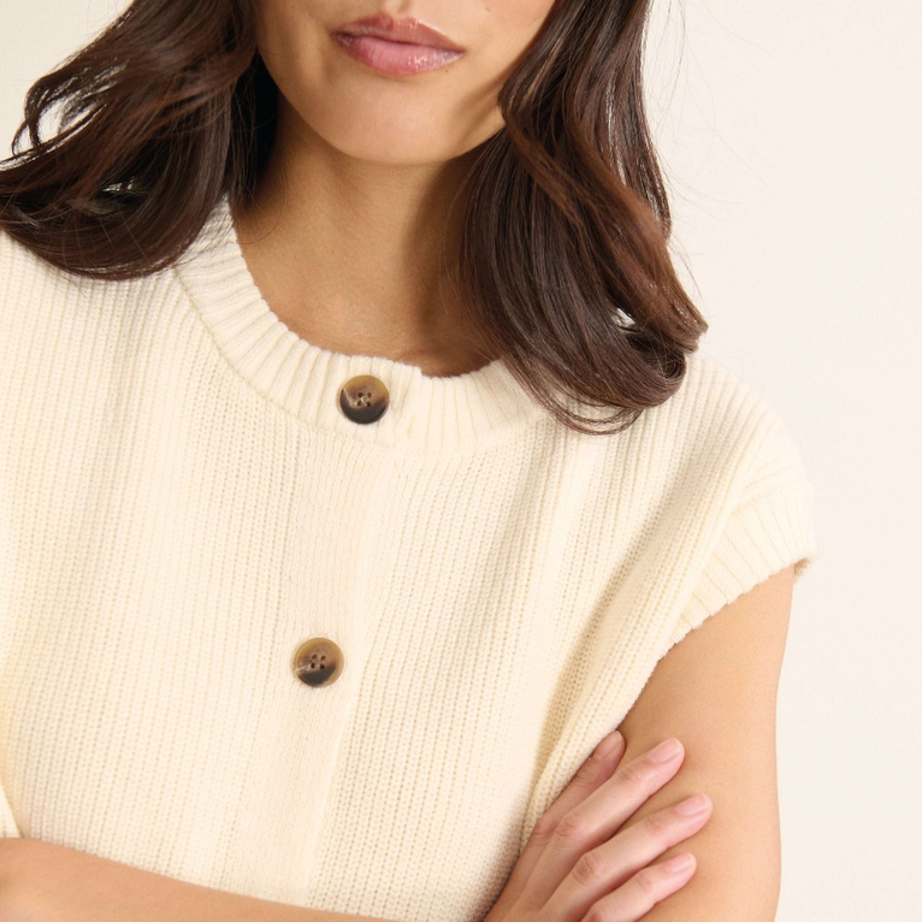 The Garance Paris Ecru Bisou Knit Vest is a sleeveless vest made in a soft and light material. The perfect layering piece or styled on its own for an effortless cosy look.