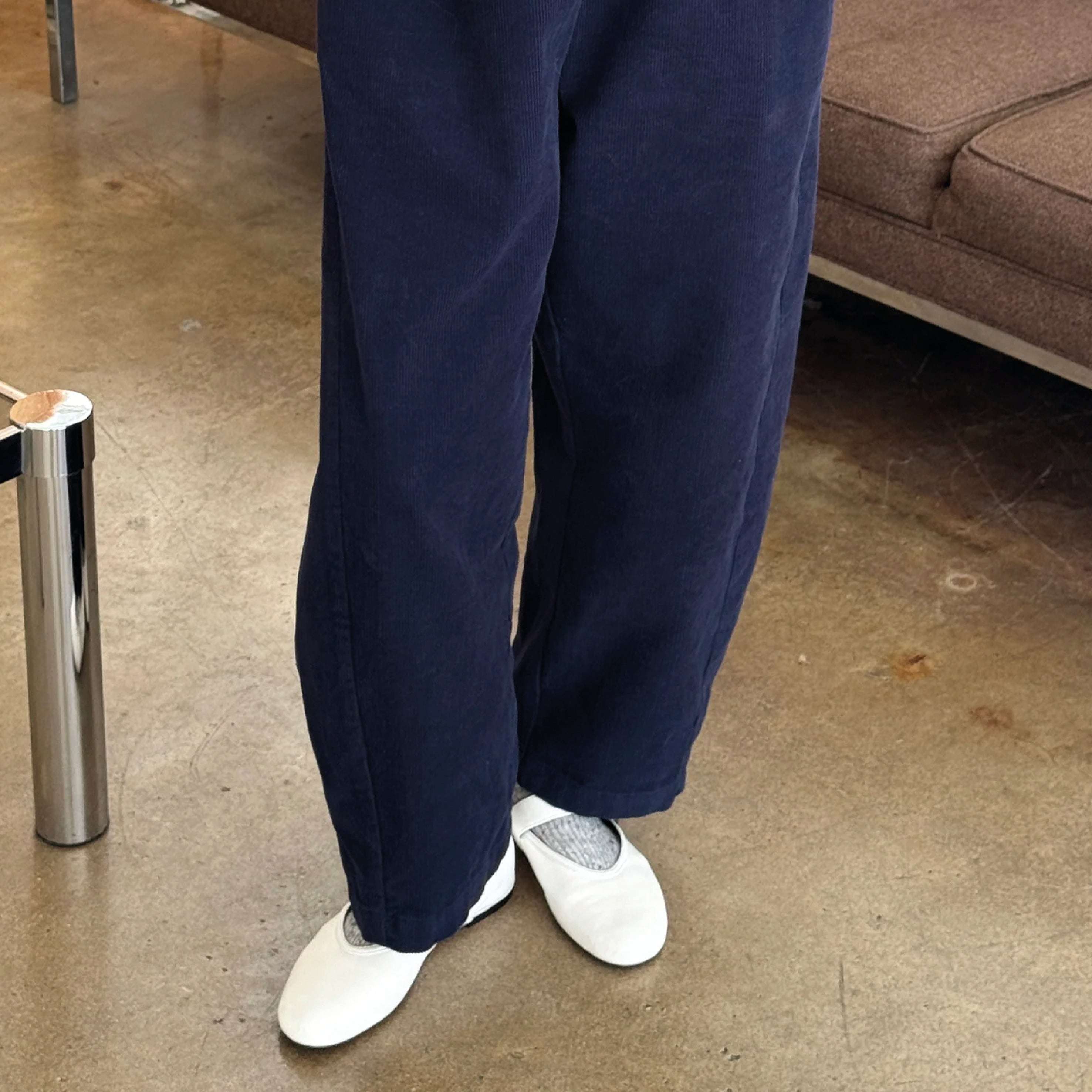 The Le Bon Shoppe Navy Corduroy Arc Pants are a year-round staple. Effortlessly versatile, they’ve become a go-to for any occasion. Thoughtfully designed with a slightly curved, cropped leg, distinctive side panels, deep pockets, and an elasticated high waist for ease of movement. The corduroy adds softness without sacrificing structure, making these the perfect everyday pants.