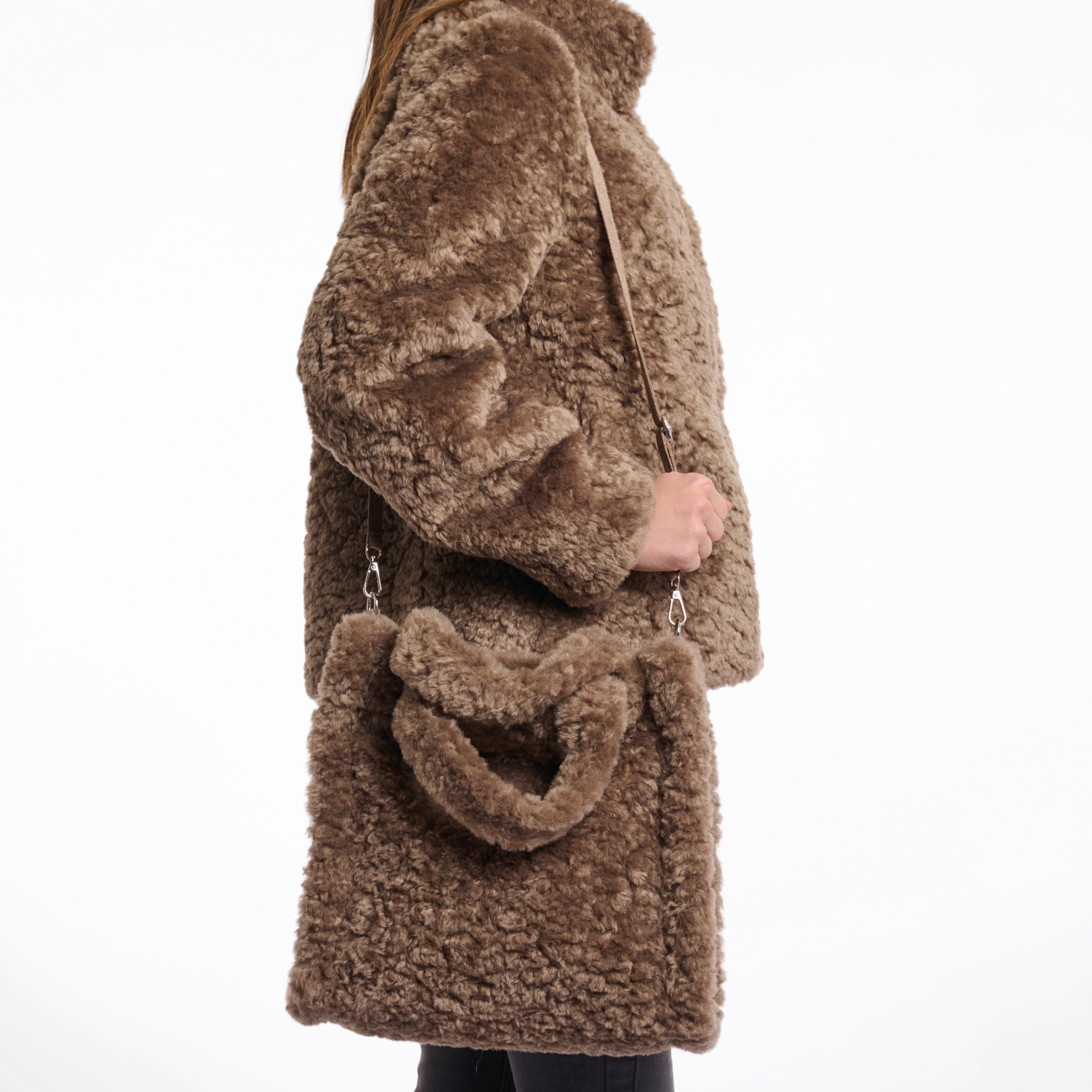 This little faux-fur Rino & Pelle Toffee Brax Shopper Bag is the perfect accessory to store your most precious belongings. This handbag features a zipper closure and a small pocket with zipper closure on the inside. Wear it as you like as this bag has short faux-fur handles and a long, detachable faux suede handle.