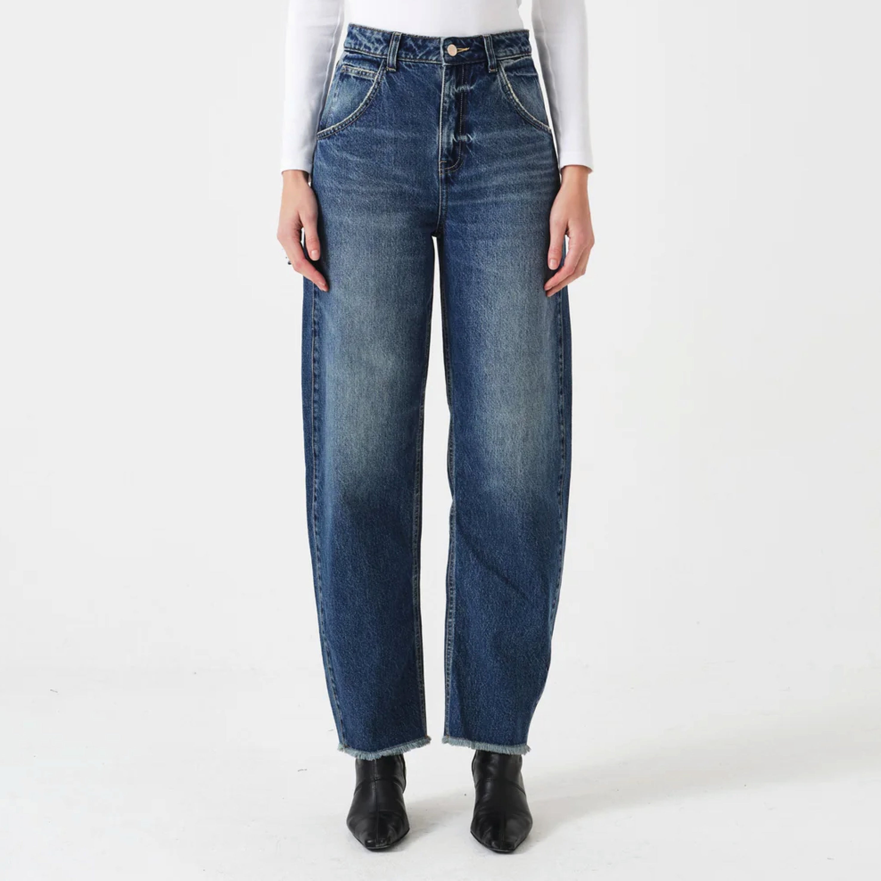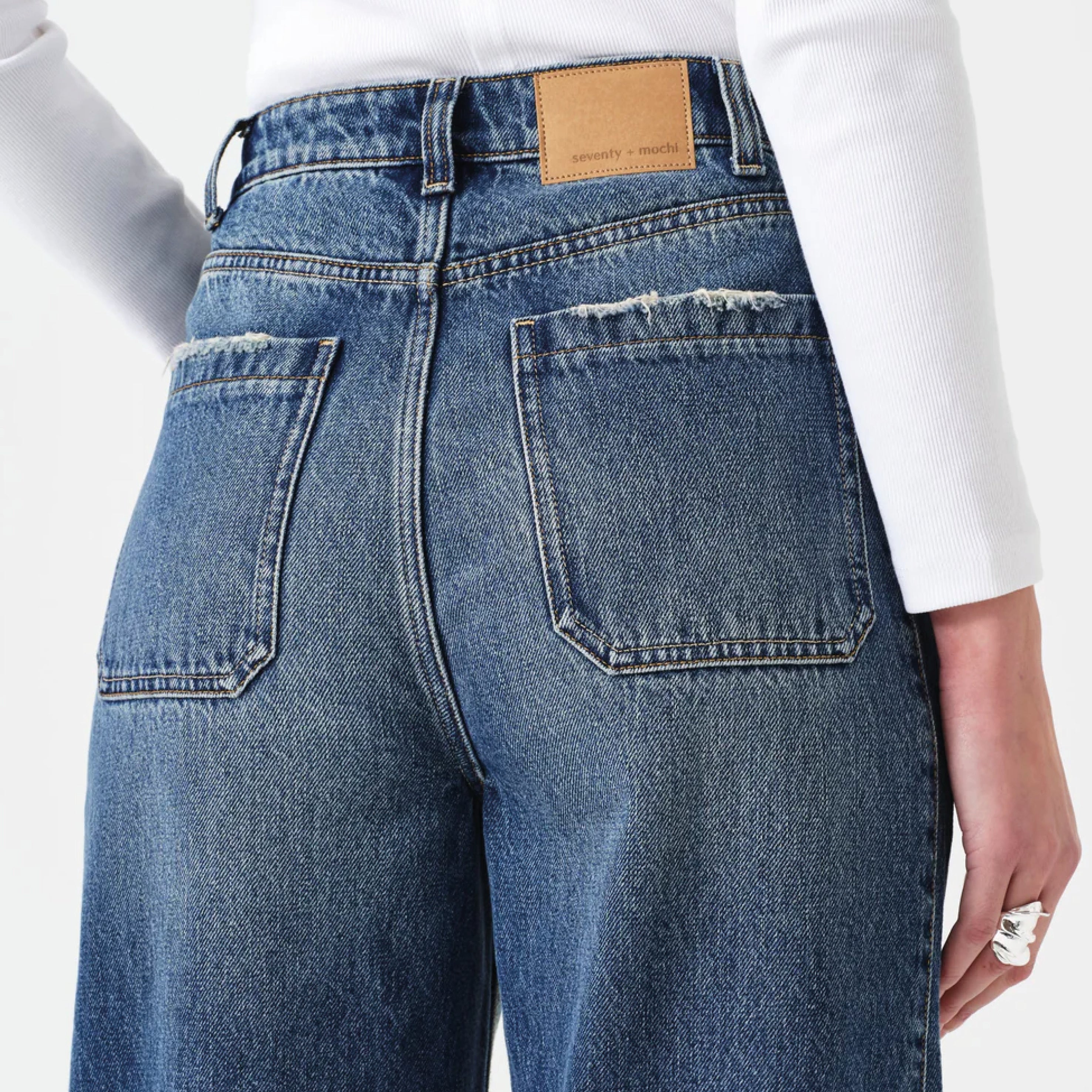 Freshen up your denim collection with the fun carpenter style barrel leg Seventy + Mochi Phoenix Bo Jeans.