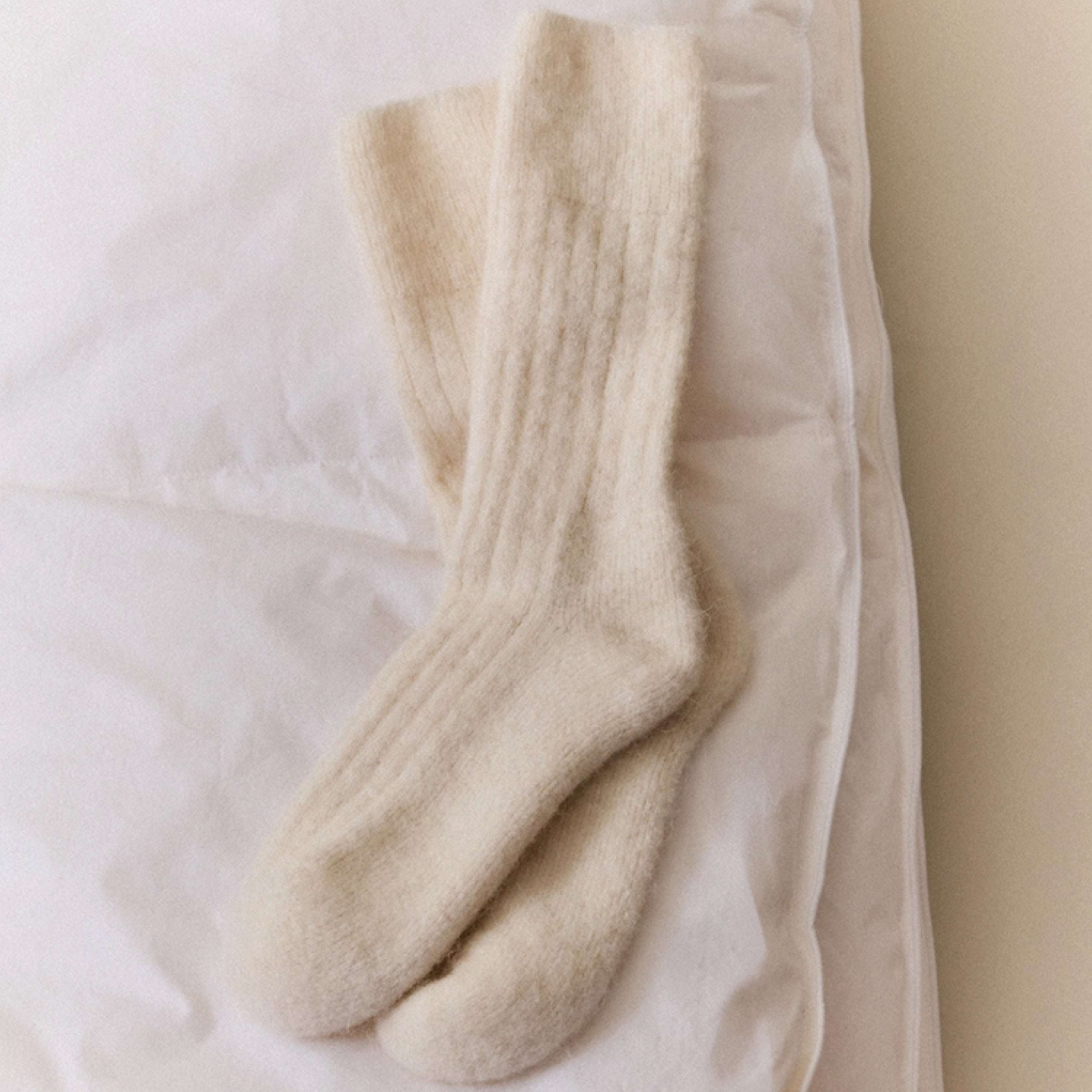 Clotted Cream Ultra Soft Alpaca Ribbed Bed Socks