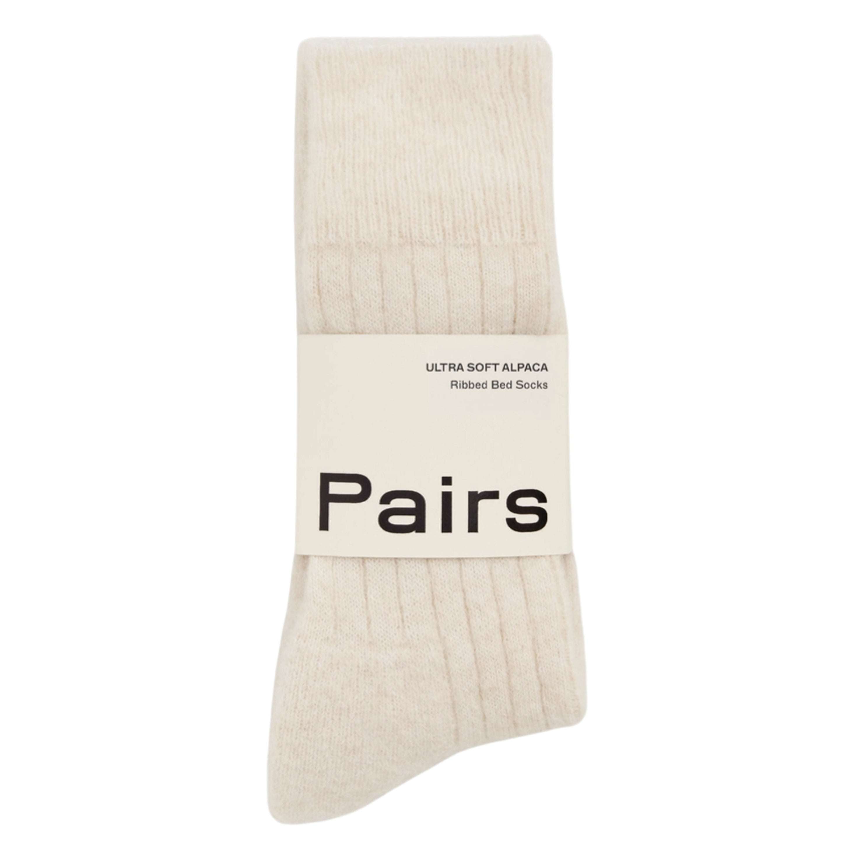 The luxurious Pairs Ultra Soft Alpaca Cream Ribbed Bed Socks are made from ultra soft alpaca fibres. Comfortable and warm with a cushioned sole and ribbing, the most comfortable bed socks. A classic cream colour with a hint of yellow, formerly known as 'cream'.