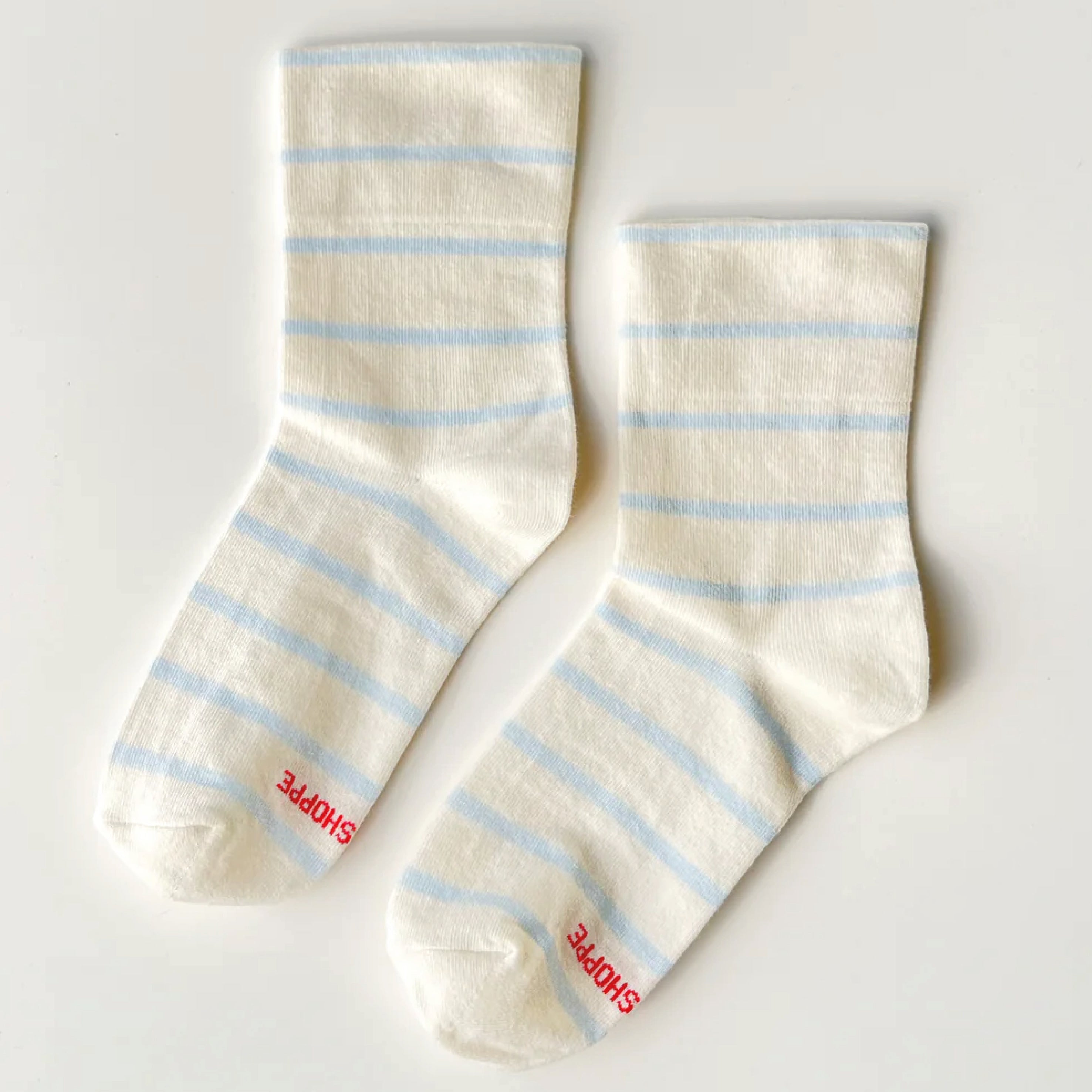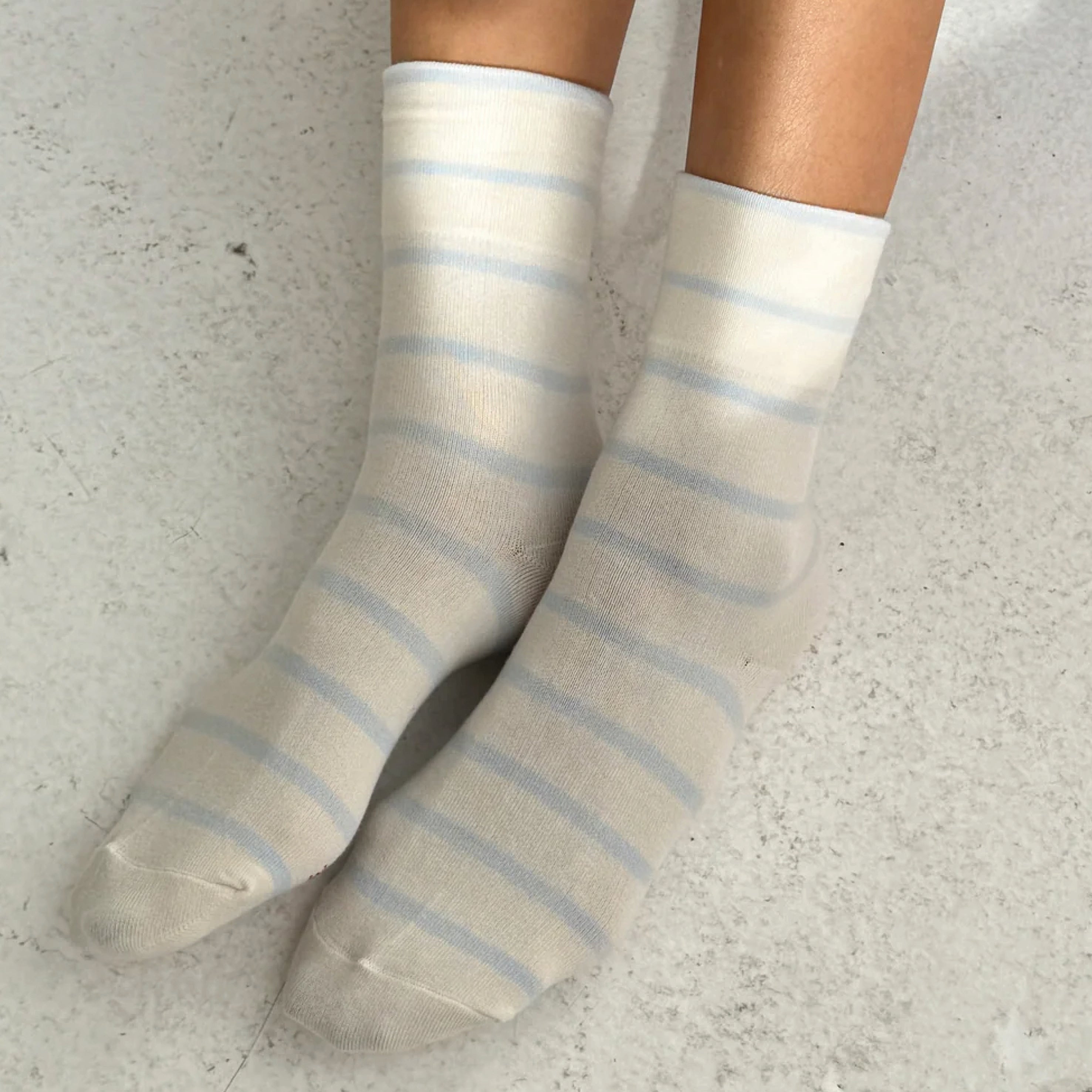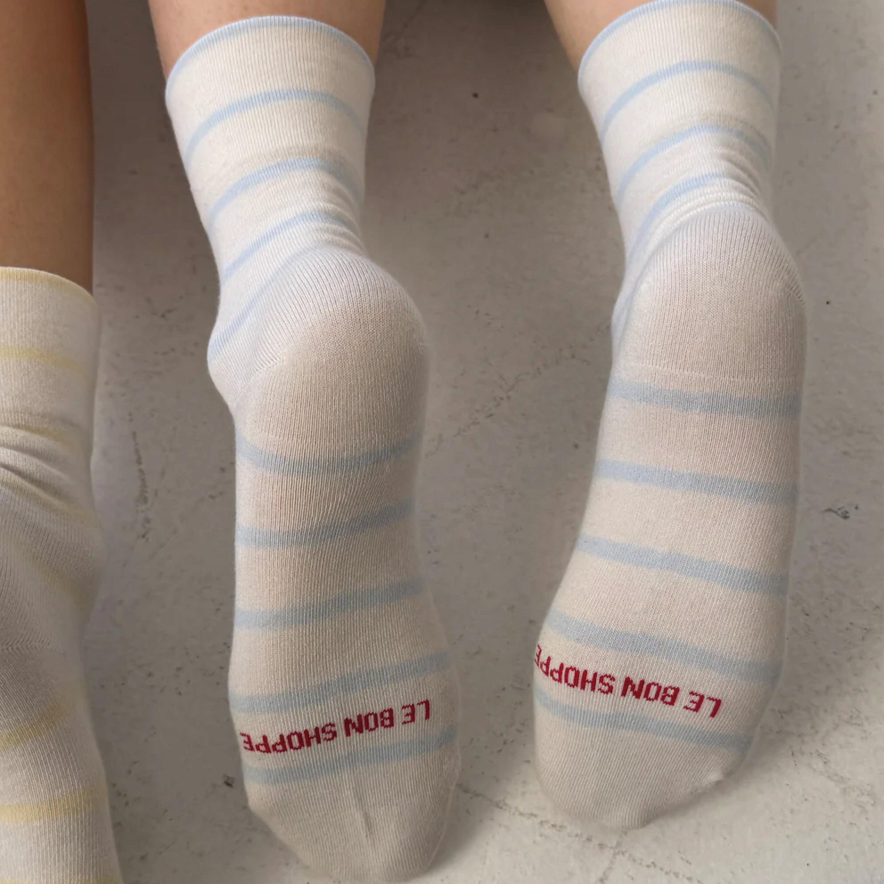 There's nothing like a good, striped sock. The Le Bon Shoppe Sky Wally Socks are a classic and forever staple in every closet that transcends the seasons and trends. Think the sneaker socks with added Parisian flair, they feature the same thick band that leaves no trace or imprint. Made from the same breathable cotton-blend, they're easy to style and can be worn for any occasion.