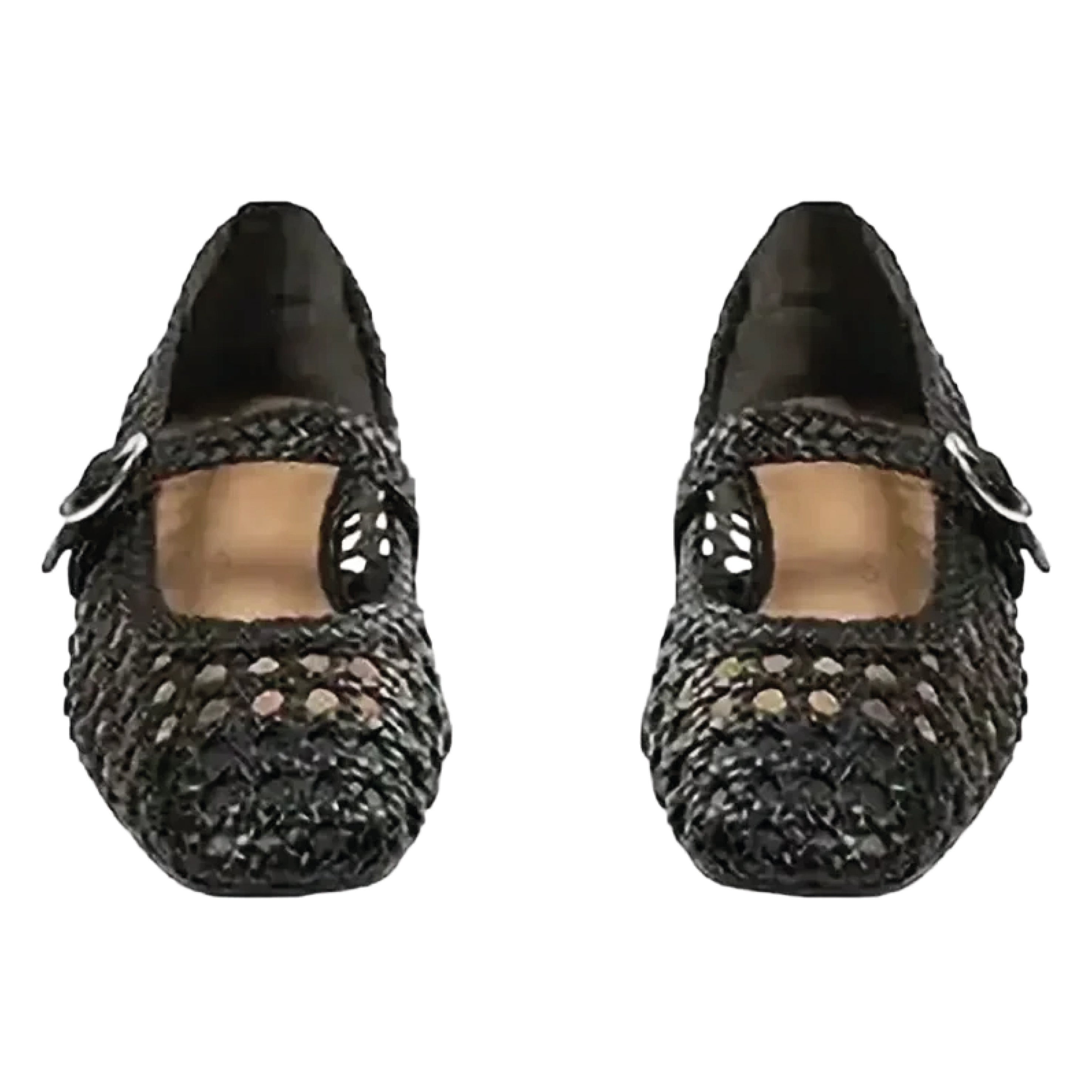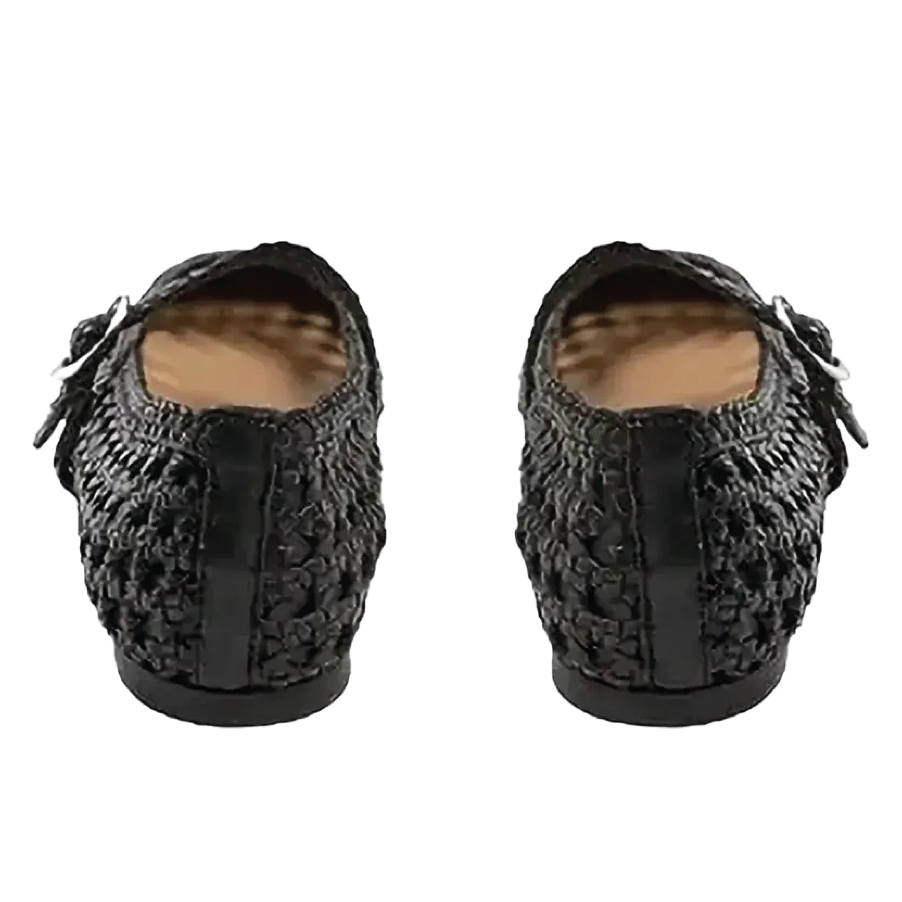 The Sofie Schnoor Black Ada Ballerina Shoes shoes are made of 100% quality leather and have an intricate braided design that adds a modern twist to the classic look.
