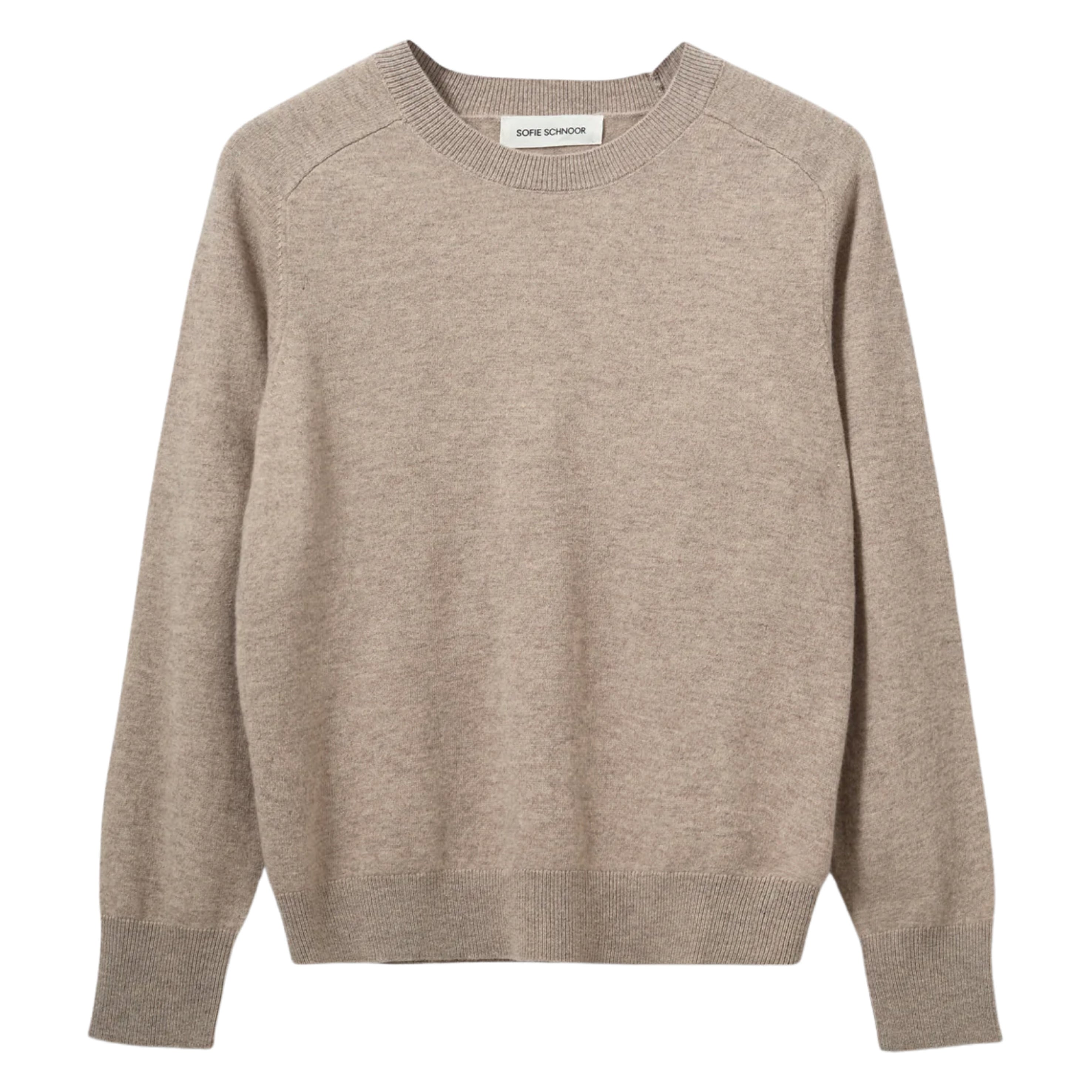 The Sofie Schnoor Brown Melange Delia Knit exudes simplicity with its long raglan sleeves, round neckline, ribbed trims and relaxed fit. Made from soft wool, it offers both comfort and style, making it perfect for any occasion. Whether you're lounging at home or out on a casual trip, this sweater is sure to keep you warm.