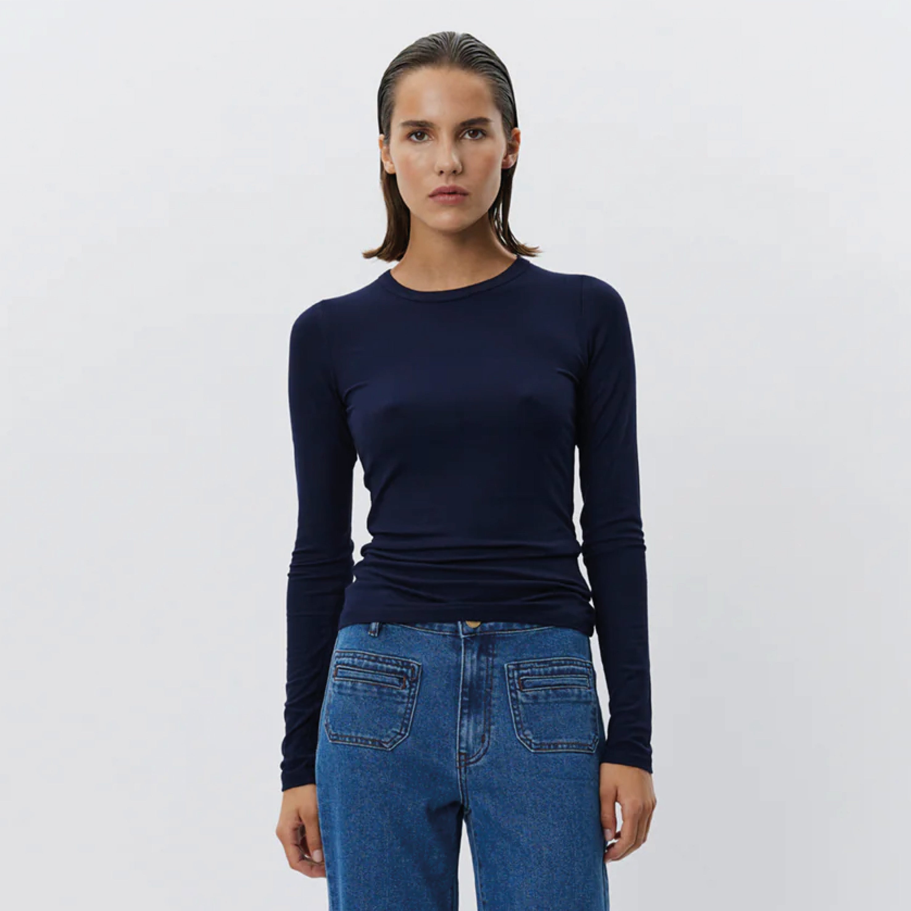 The Sofie Schnoor Navy Petricia Long Sleeve Top is your essential long-sleeve T-shirt, a wardrobe staple.