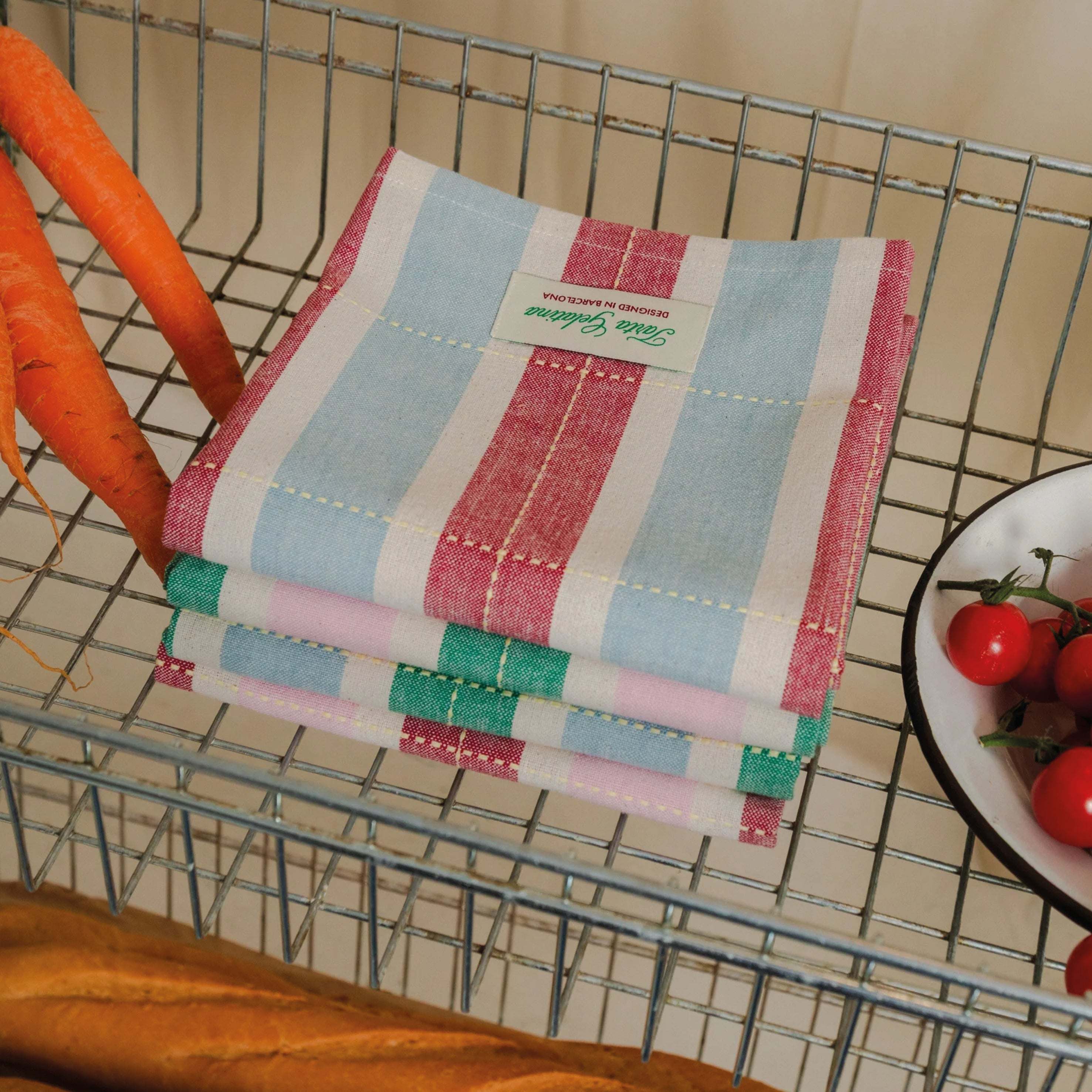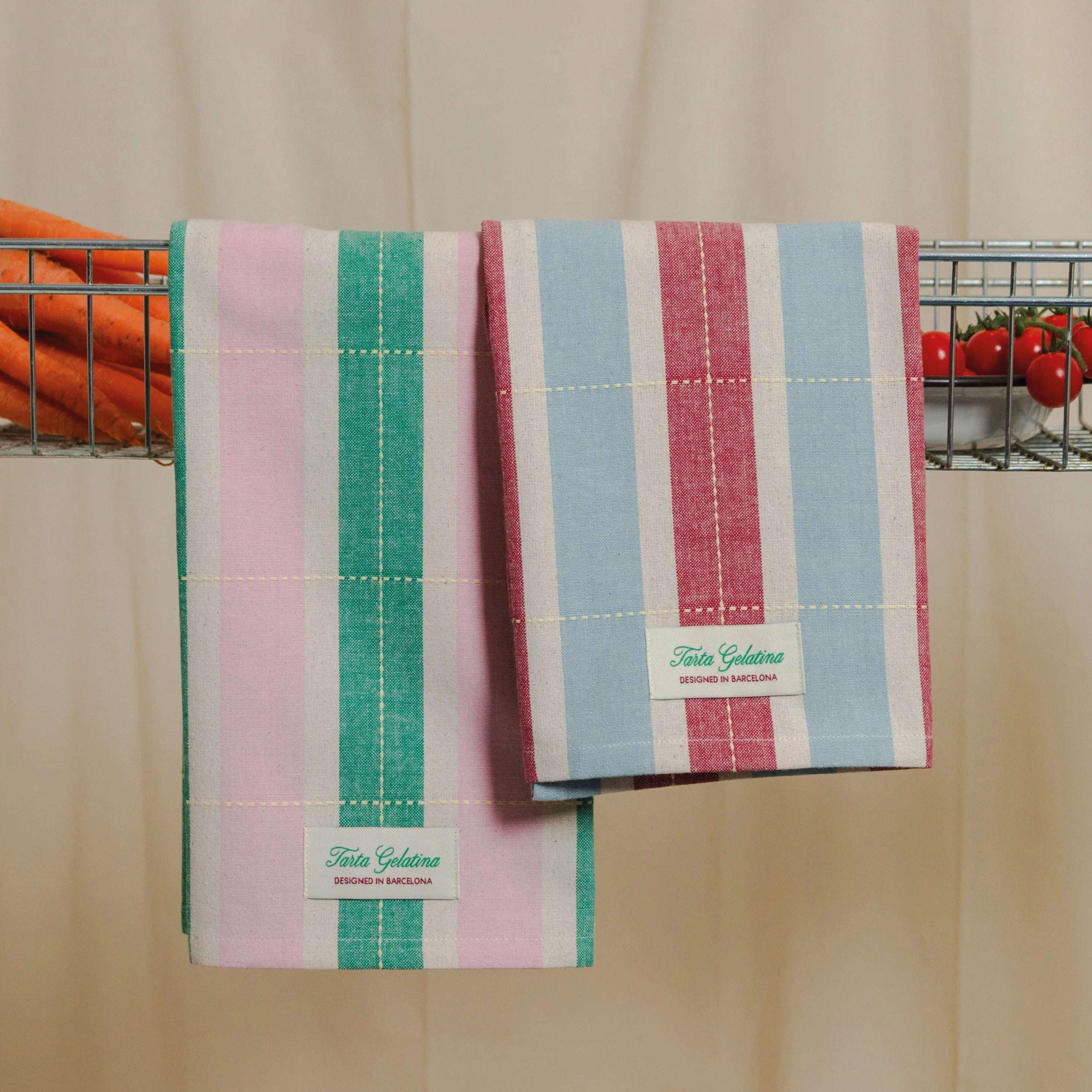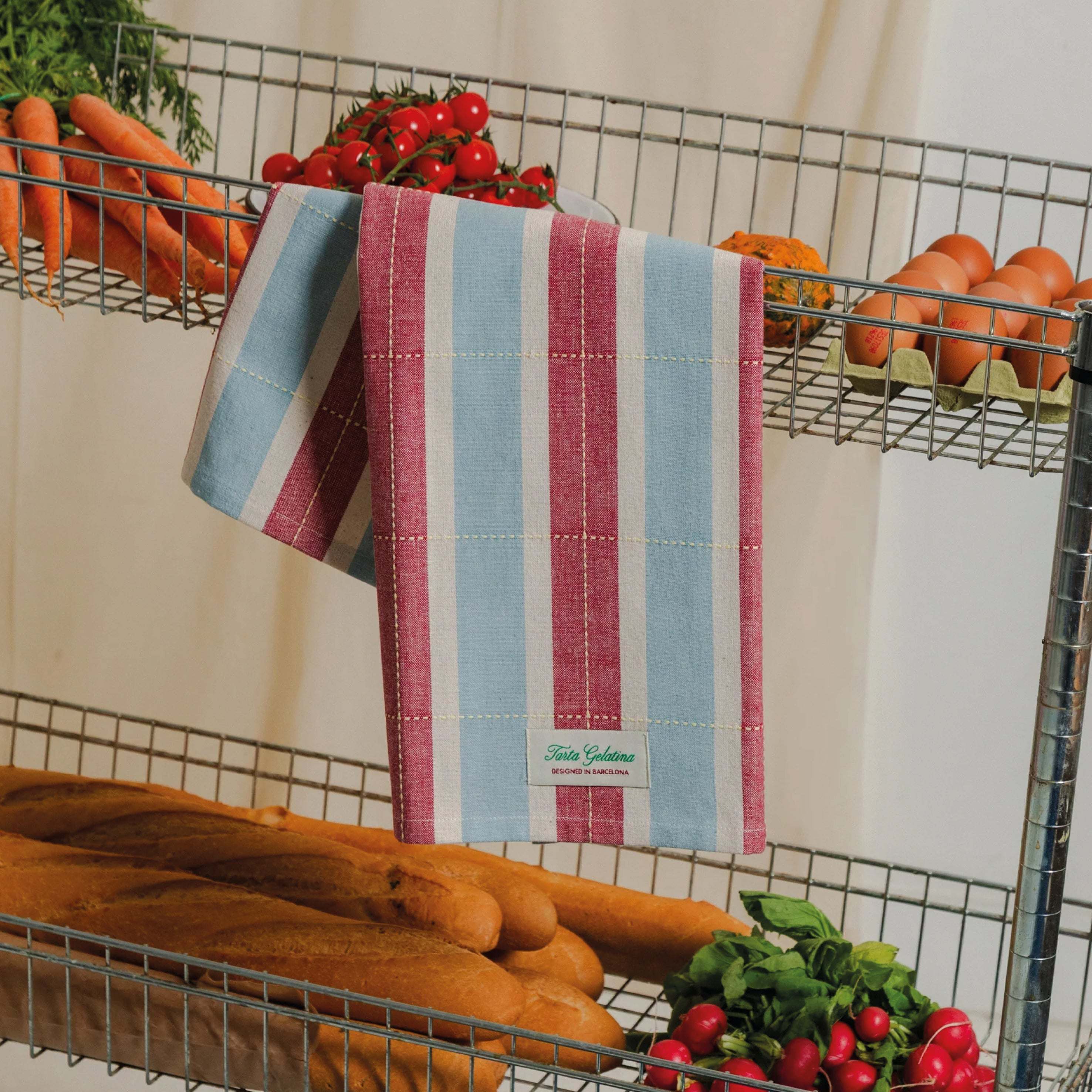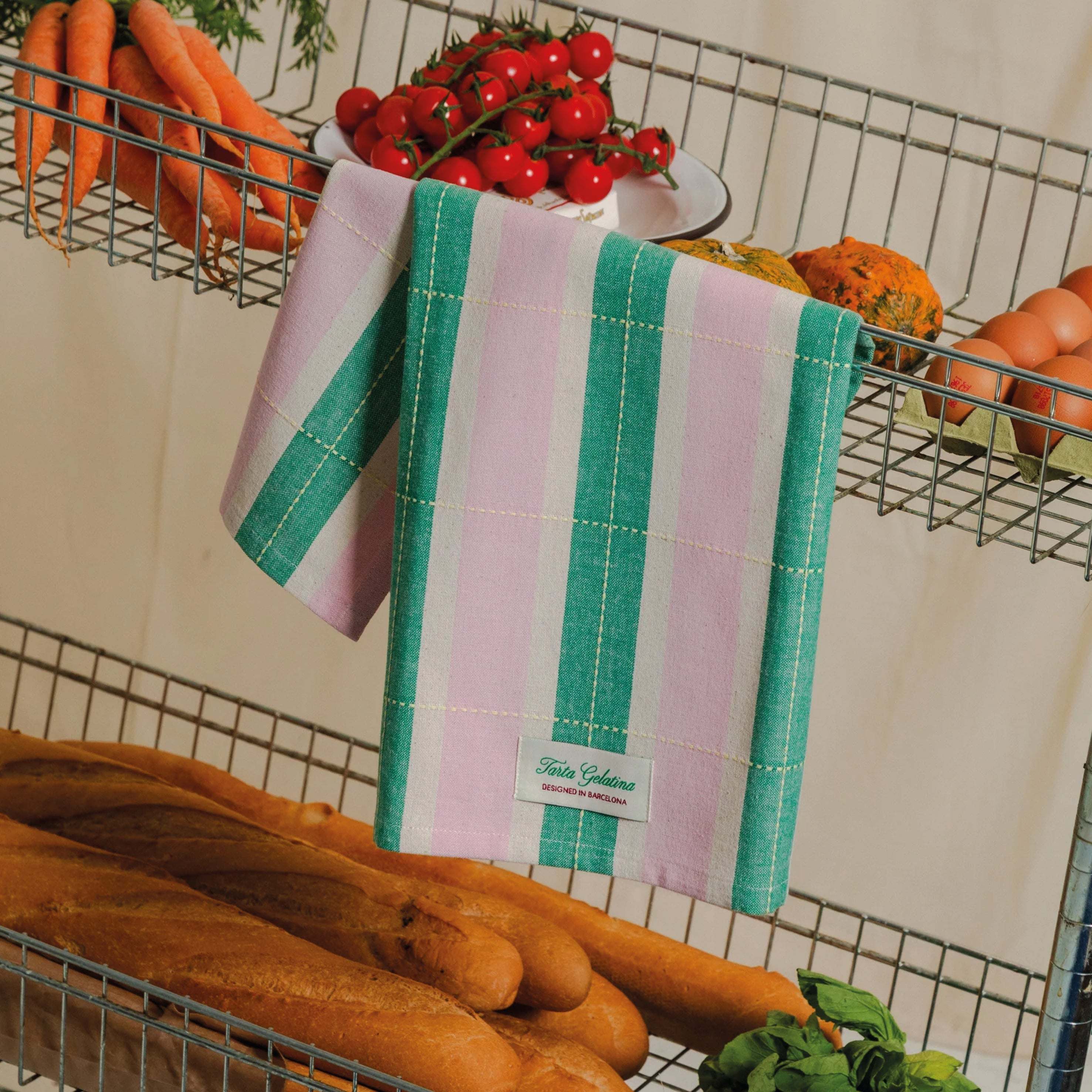 The Tarta Gelatina Striped Tea Towels Set of 2 are perfect for drying dishes, lining baskets, or simply looking cute while pretending you always keep the kitchen this tidy. Soft cotton, woven stripes, and a little everyday charm.
