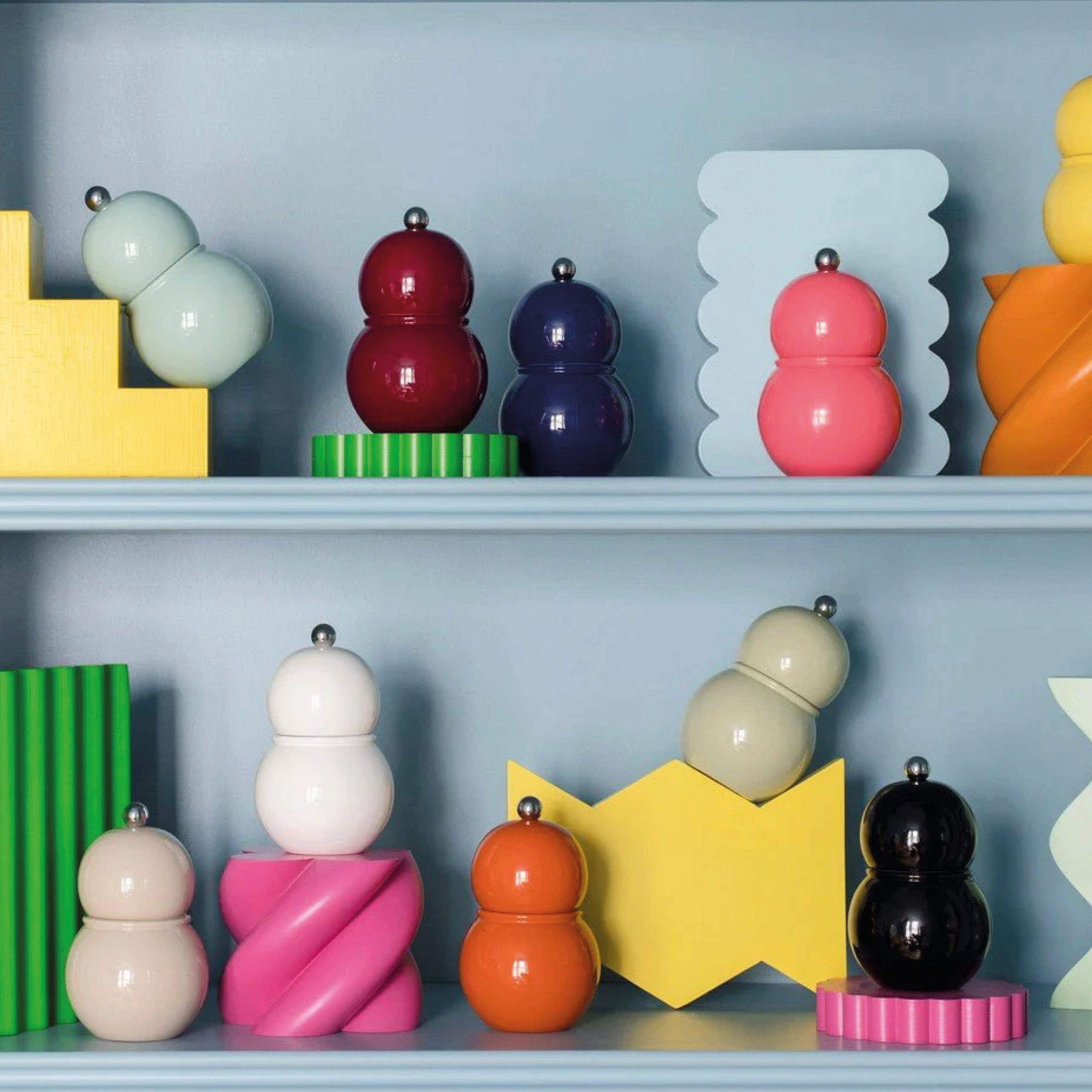 The Pale Green lacquered Chubby Mill is suitable for either Salt or Pepper. Featuring the Addison Ross iconic bobbin shape.