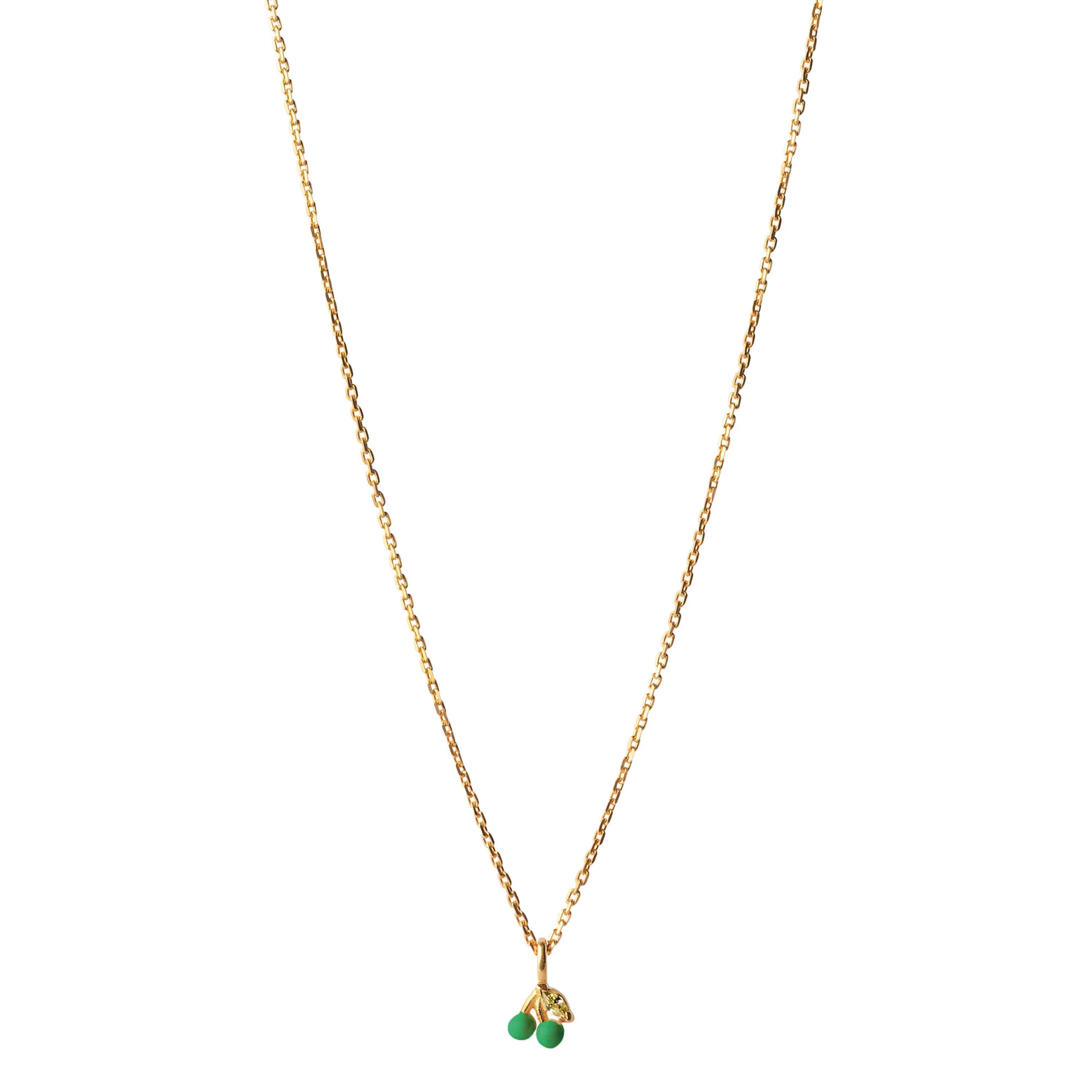 - Enamel Copenhagen Grass Green Cherry Gold Necklace
