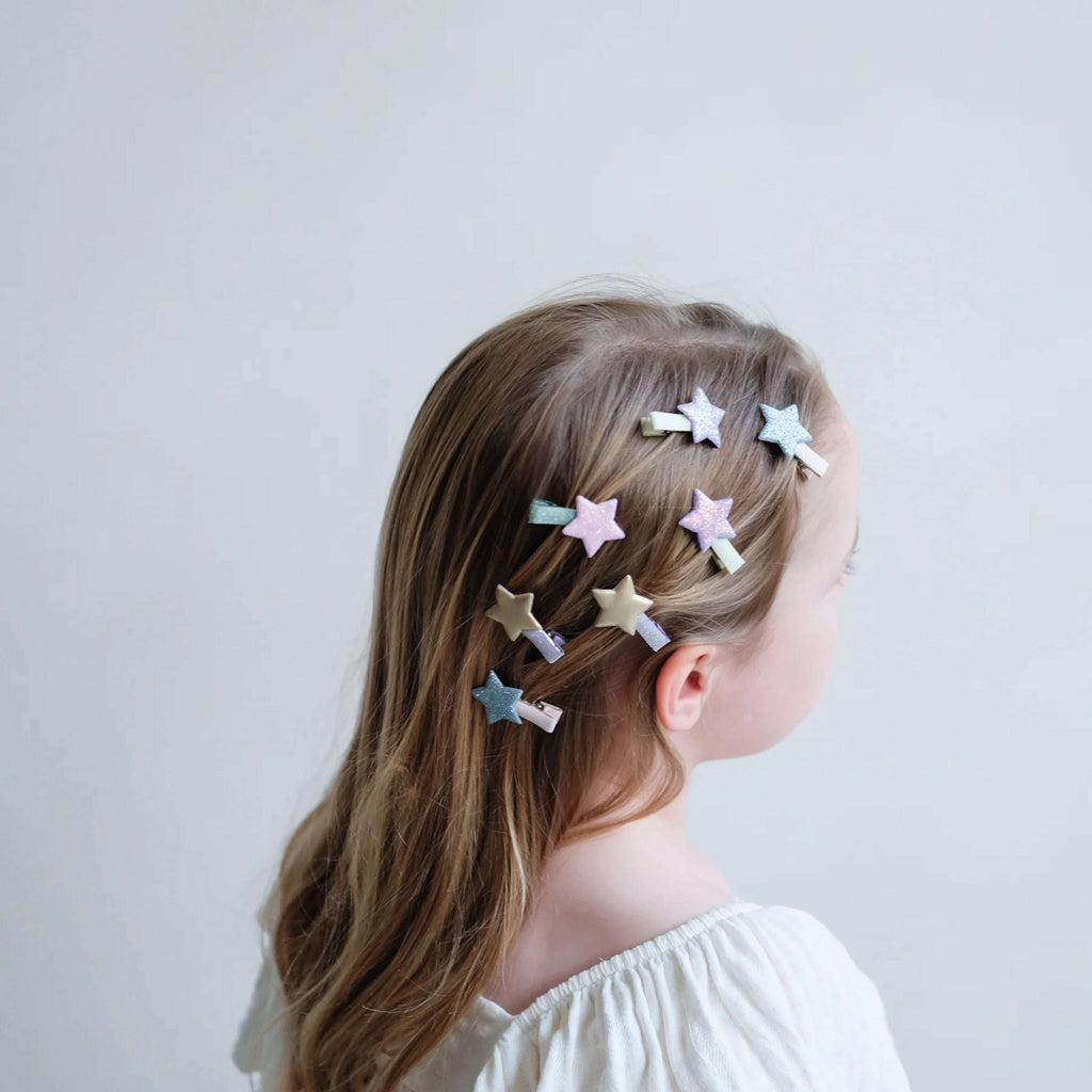 Let them sparkle like the star they are with the shimmering Mimi & Lula Stellar Mini Hair Clips. Perfect for adding a sprinkle of colour to any look, these are great for finer hair too!