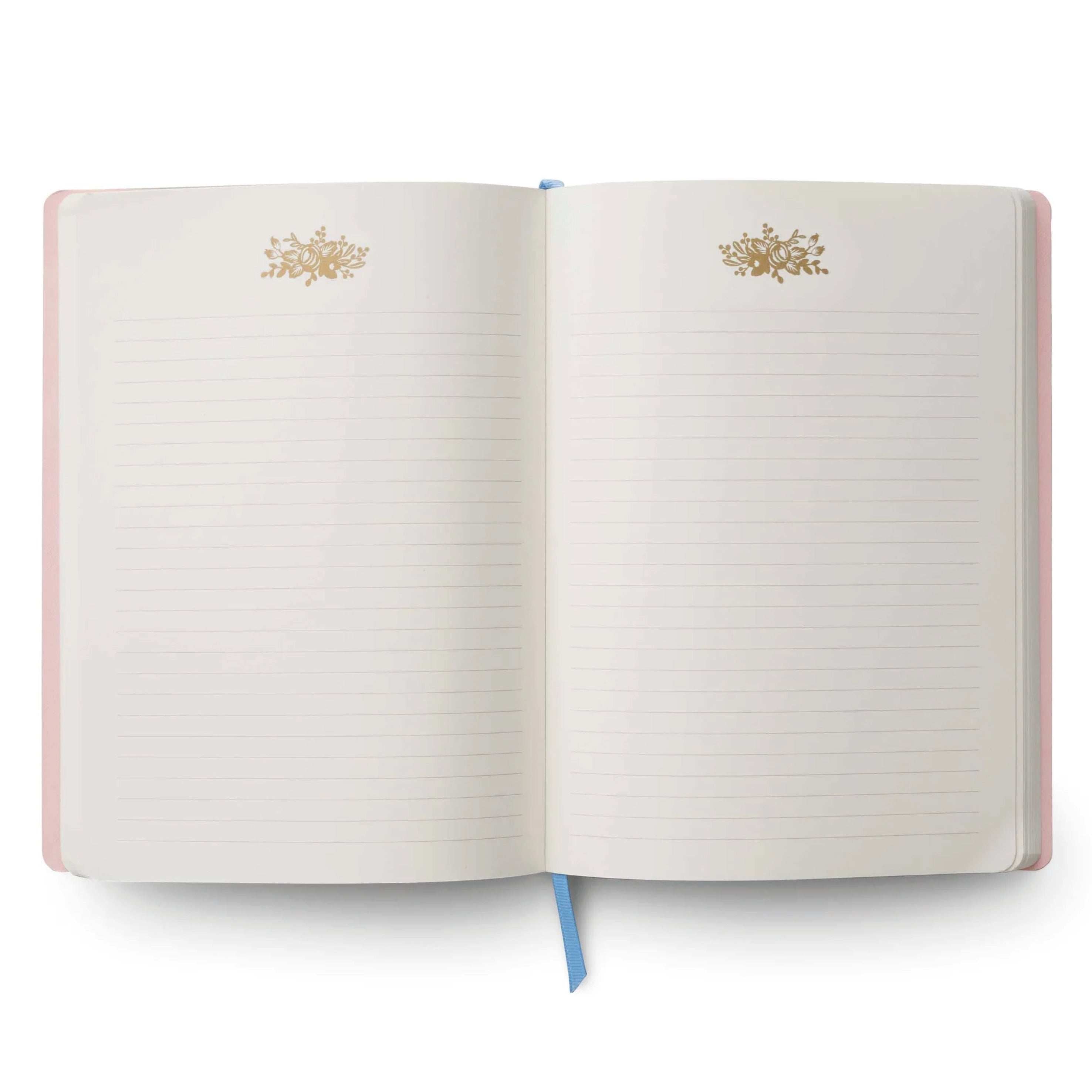 Softcover journal with gold foil details with 150 lined pages. The Rifle Paper Co Rosa Softcover Journal is great for quick reminders, phone numbers, or keeping track of ideas while out and about.