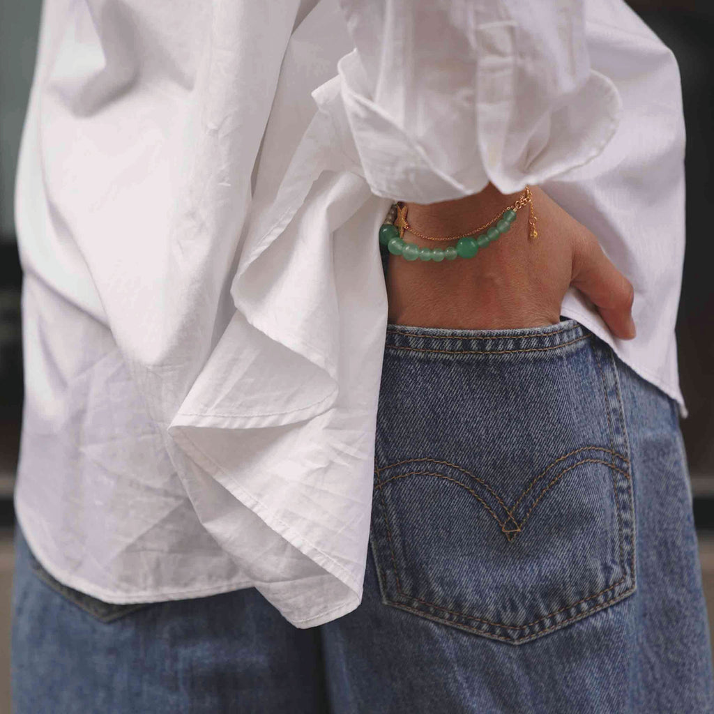 Hultquist Copenhagen Mia Bracelet in gold-plated sterling silver worn stylishly.