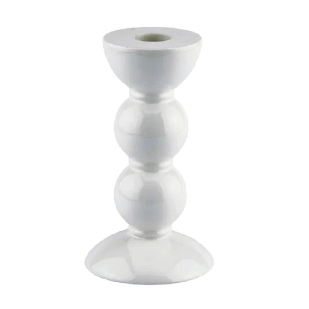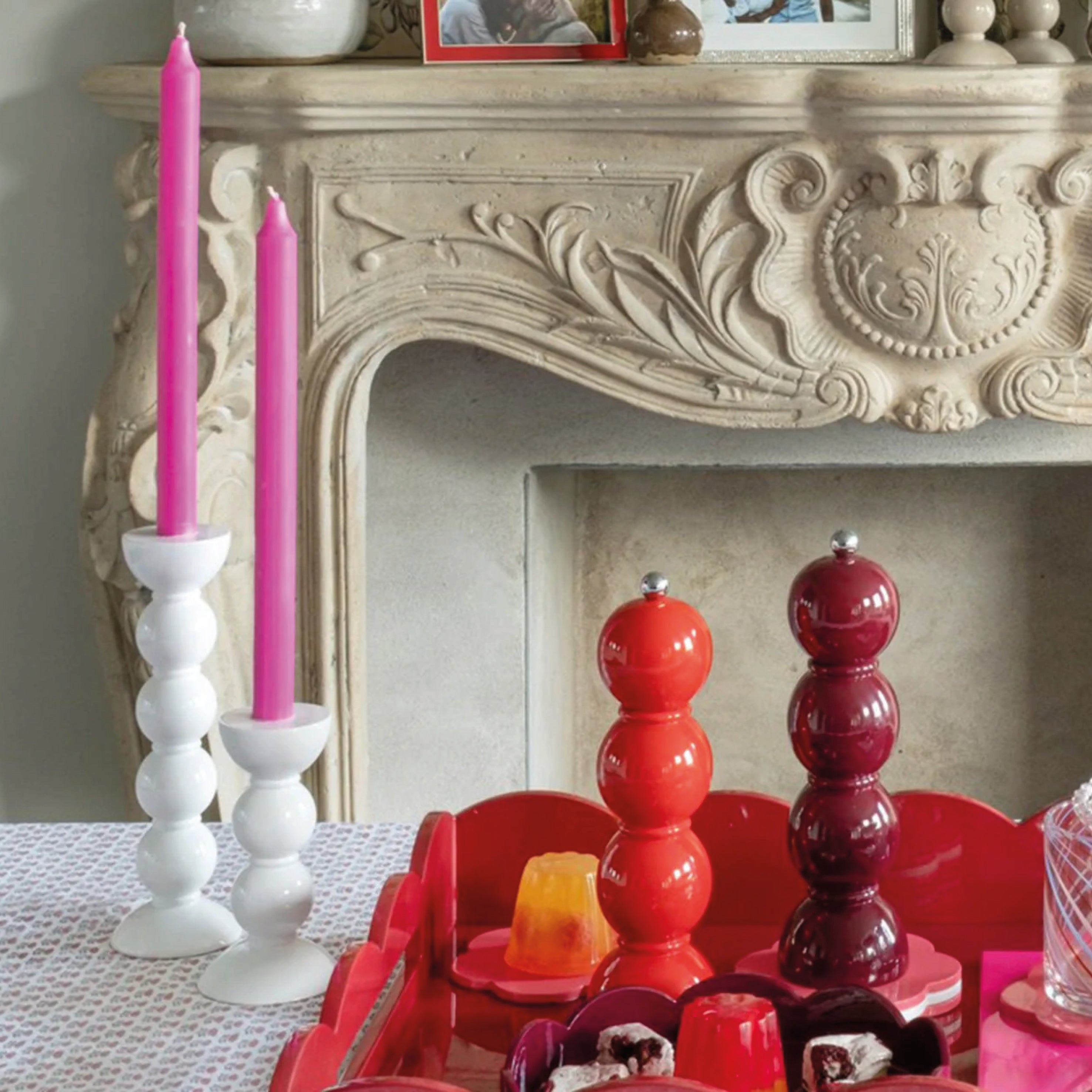 An Addison Ross exclusive design, our medium white lacquered bobbin shaped candlestick is made from solid Rubber wood fully FSC certified, finished with 8 coats of high gloss lacquer hand polished between each coat. Suitable for standard sized dinner candles.