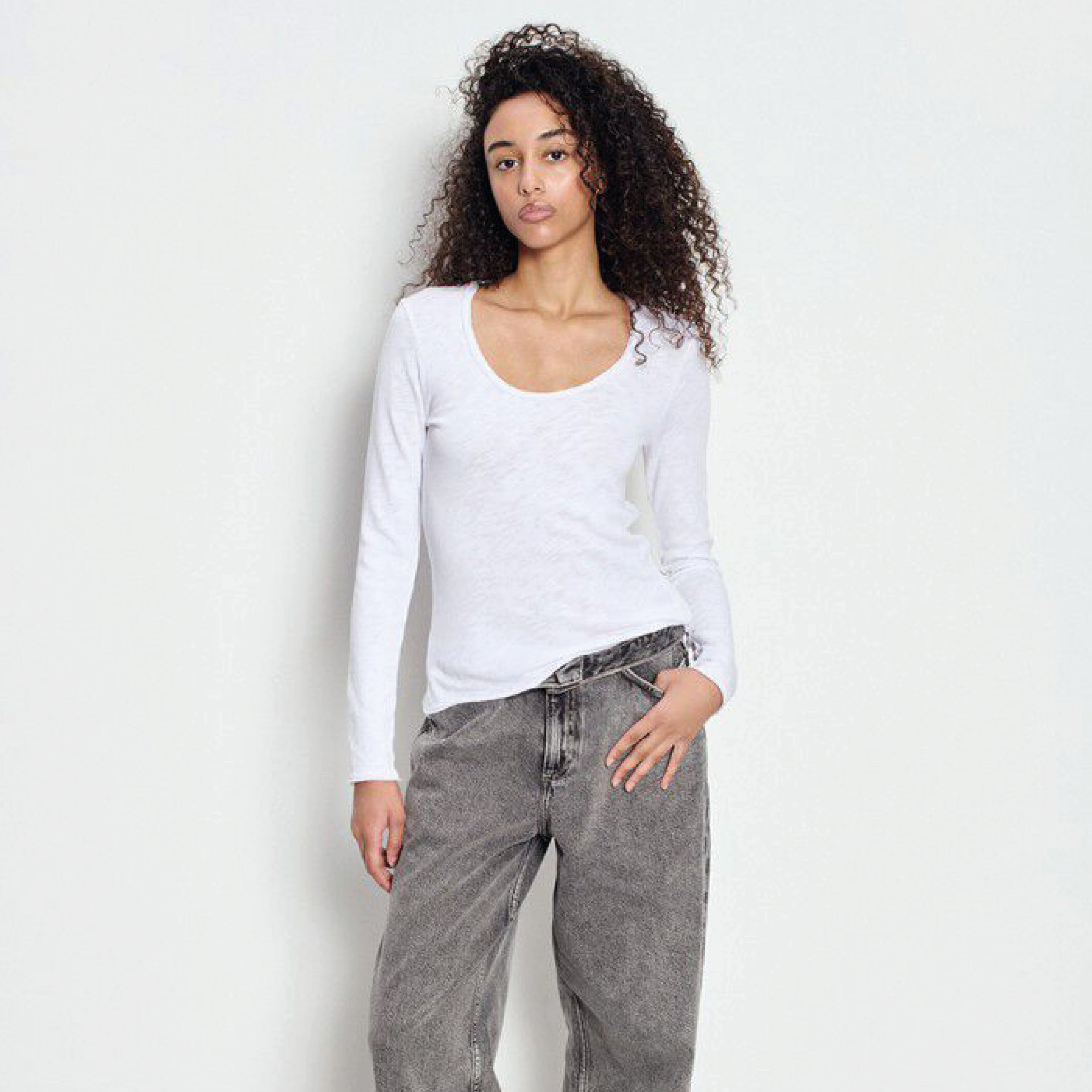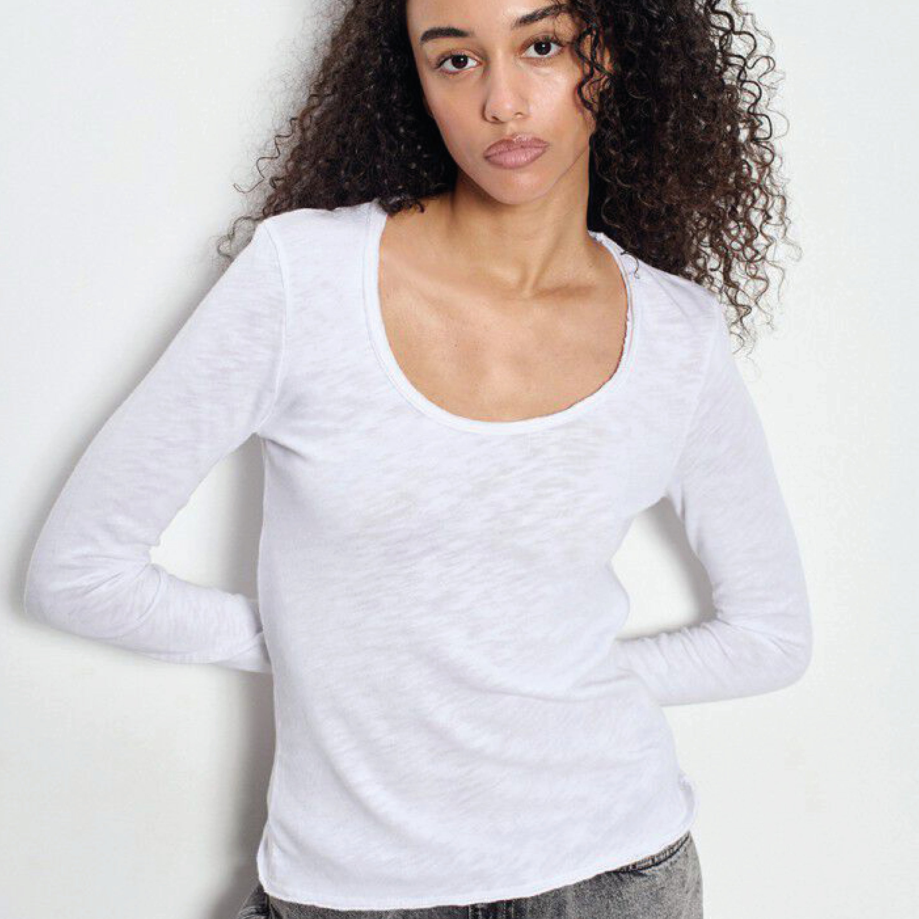 American Vintage U Neck White Sonoma Long Sleeve Top
