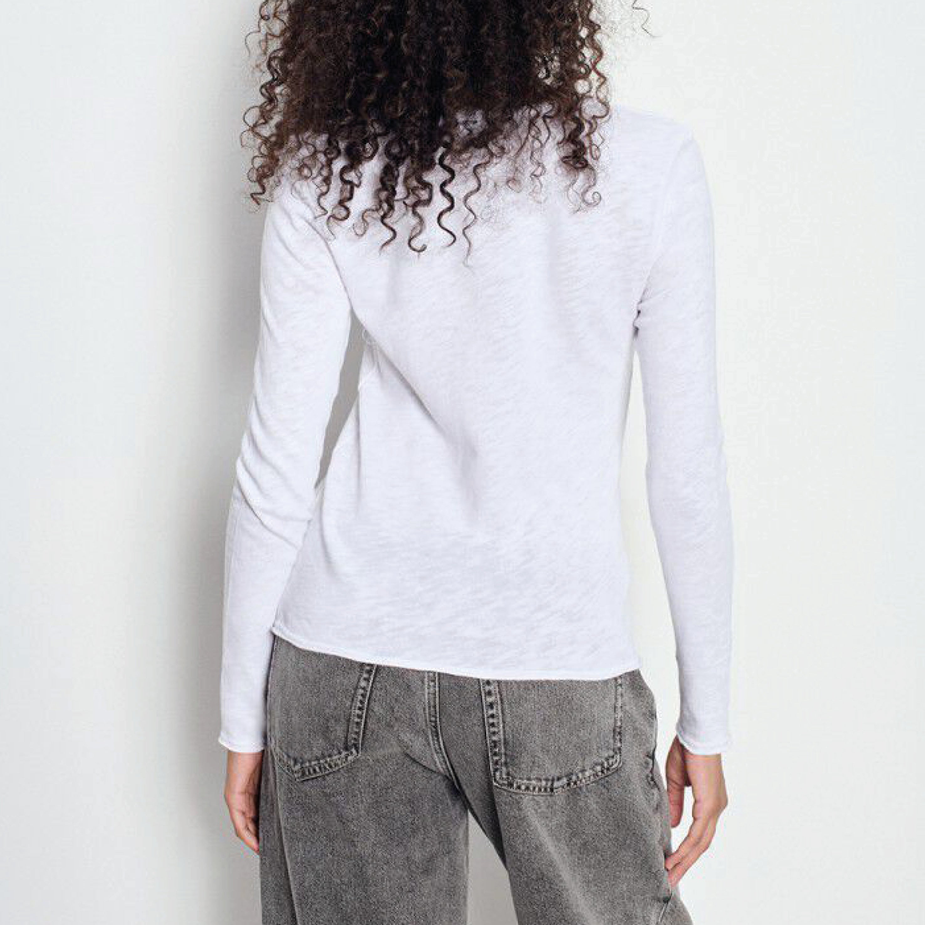The American Vintage U Neck White Sonoma Long Sleeve Top is a wardrobe essential. Made from soft, thick, textured slub cotton, it offers cosy comfort thanks to its brushed interior. Its fitted cut and crew neck make it easy to wear, either under a jumper or sweatshirt or on its own, depending on the season.
