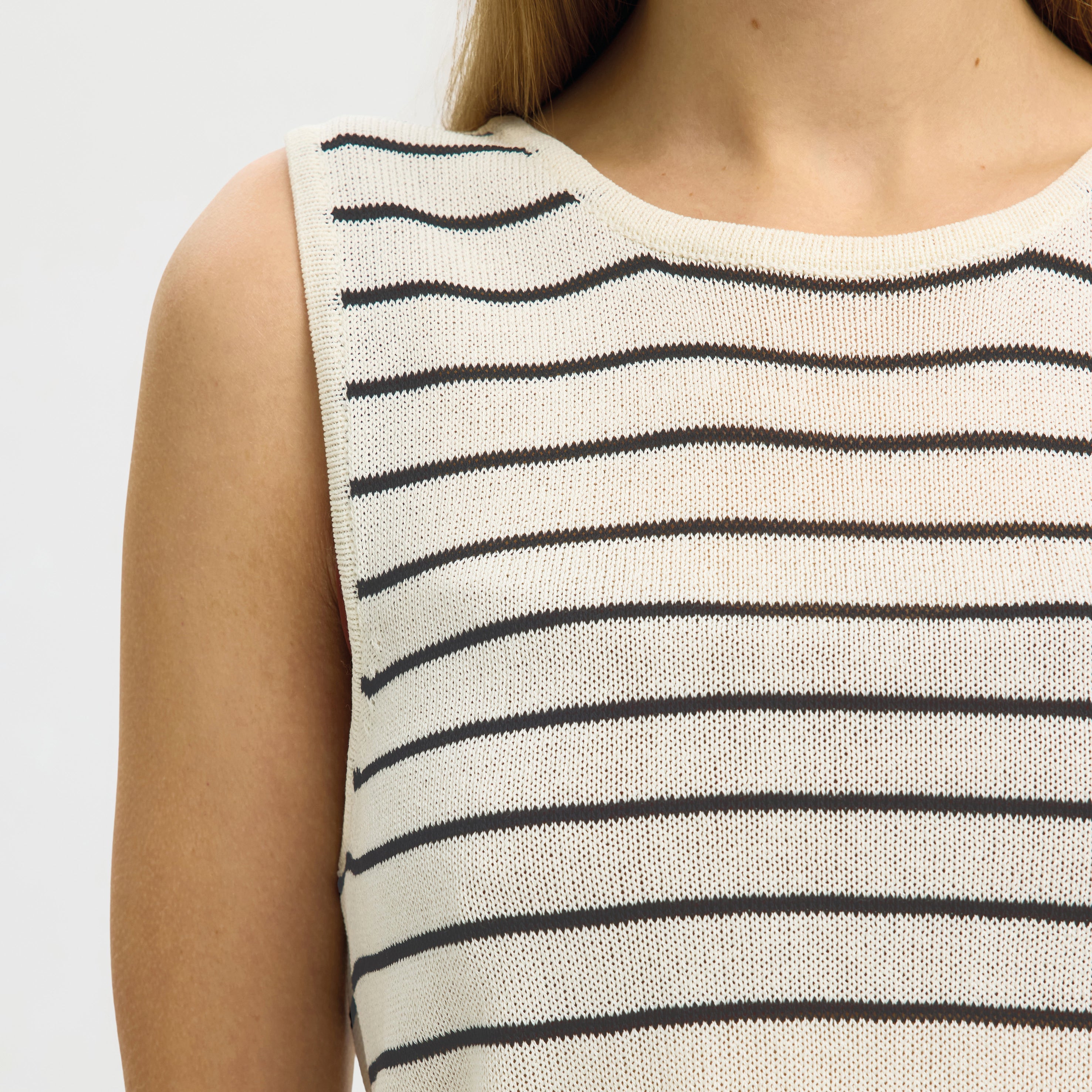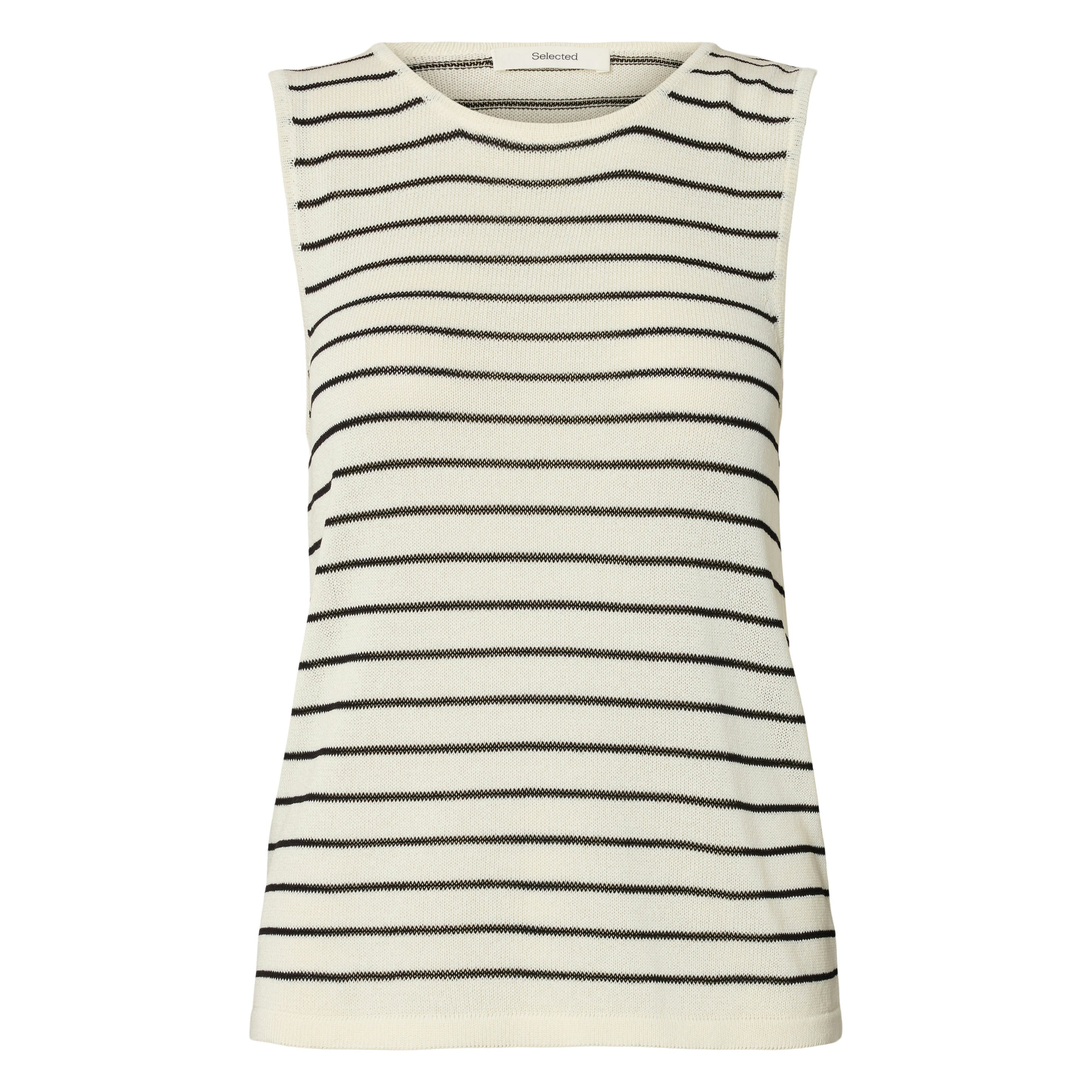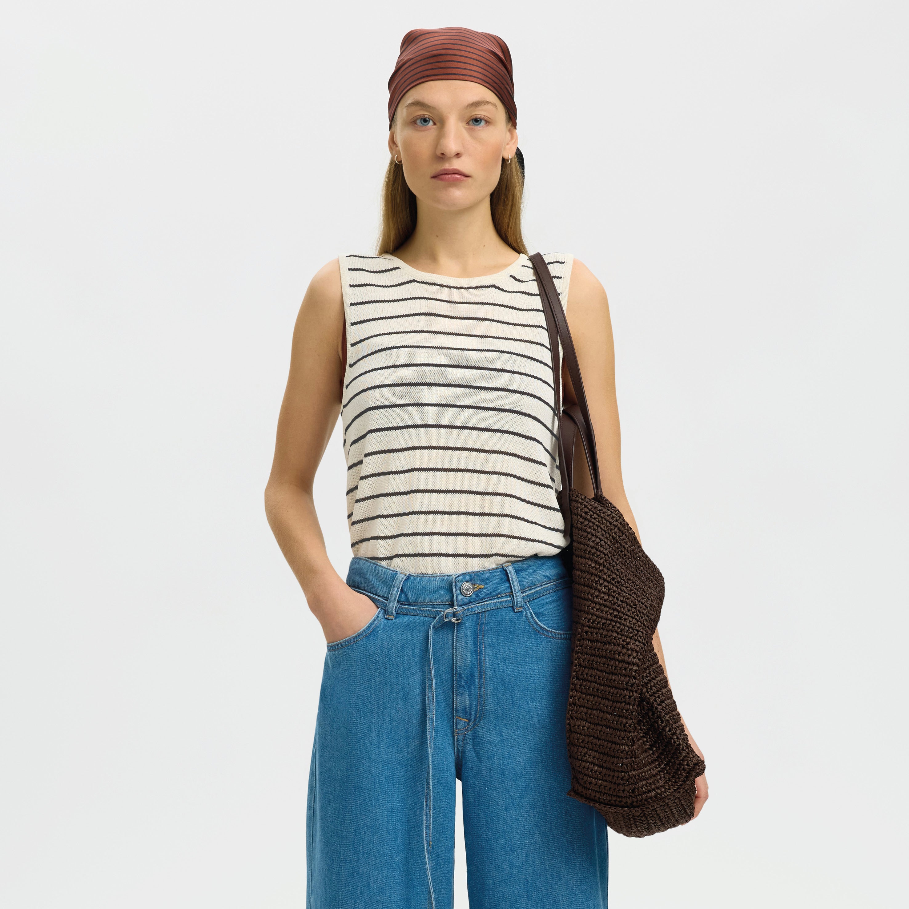 The Selected Femme Birch Stripe Moon Knit Top is a classic knitted tank top that will become a summer staple. With a round neck, sleeveless design in thin knitted fabric, its perfect to layer or to wear on its own.